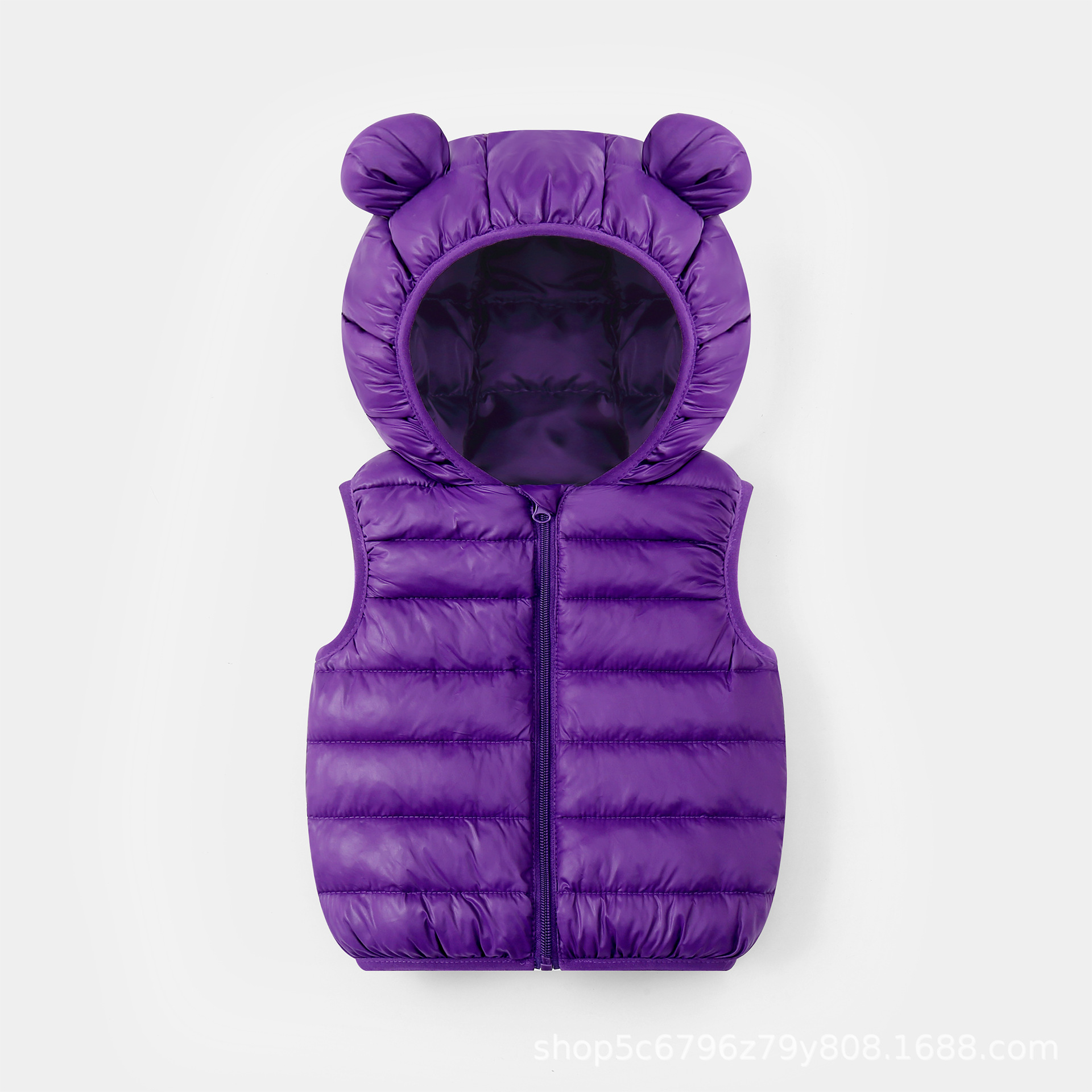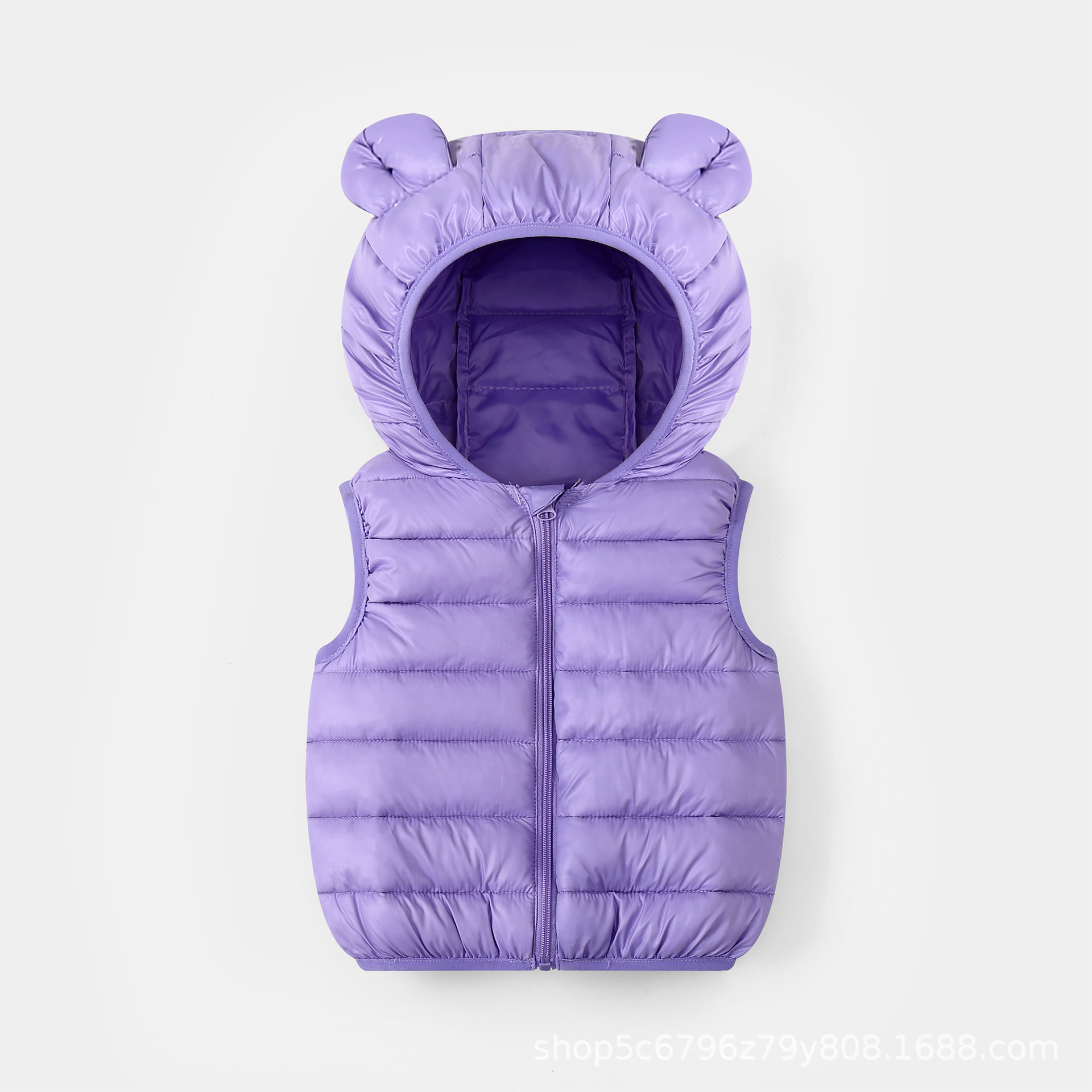소년과 소녀를위한 새로운 어린이 봄 가을 겨울 후드 단색 다운 면 조끼 아기 사탕 귀여운 경량 조끼 따뜻한