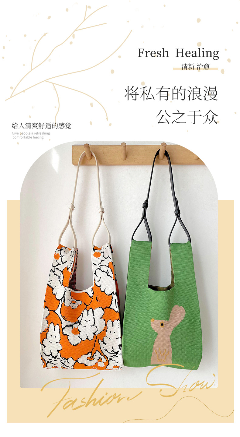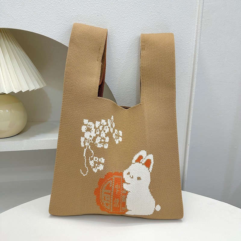 중추절 달 토끼 니트 숄더백 핸드백 월병 포장 핸드백 대용량 선물 상자 가방 토트백 여성스토어 가기