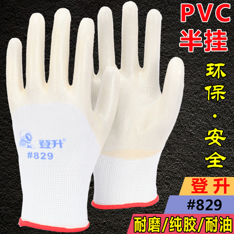 도매 Dengsheng # 829PVC 반걸이 접착제 코팅 내유성 산 및 알칼리 방지 미끄럼 방지 산업 노동 장갑