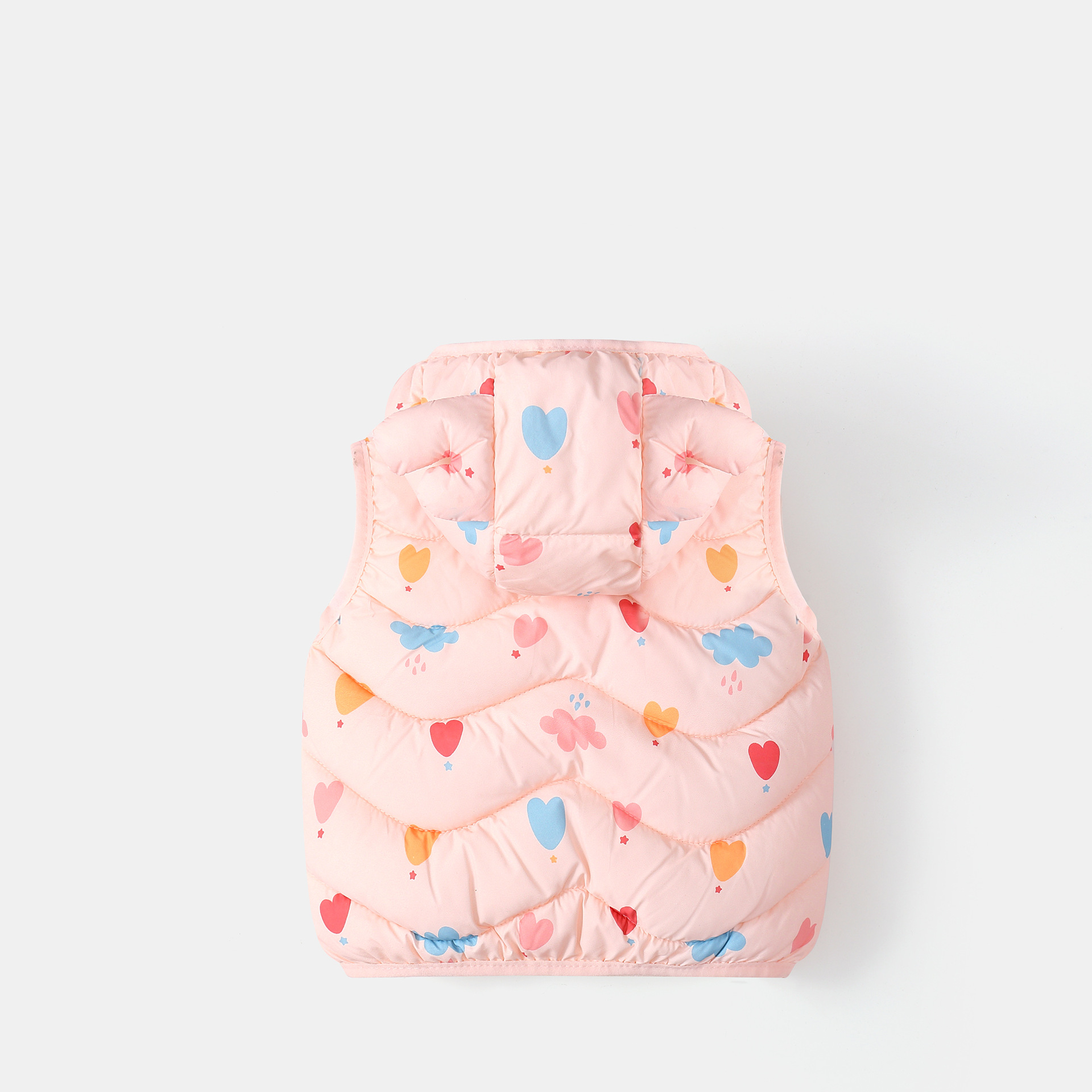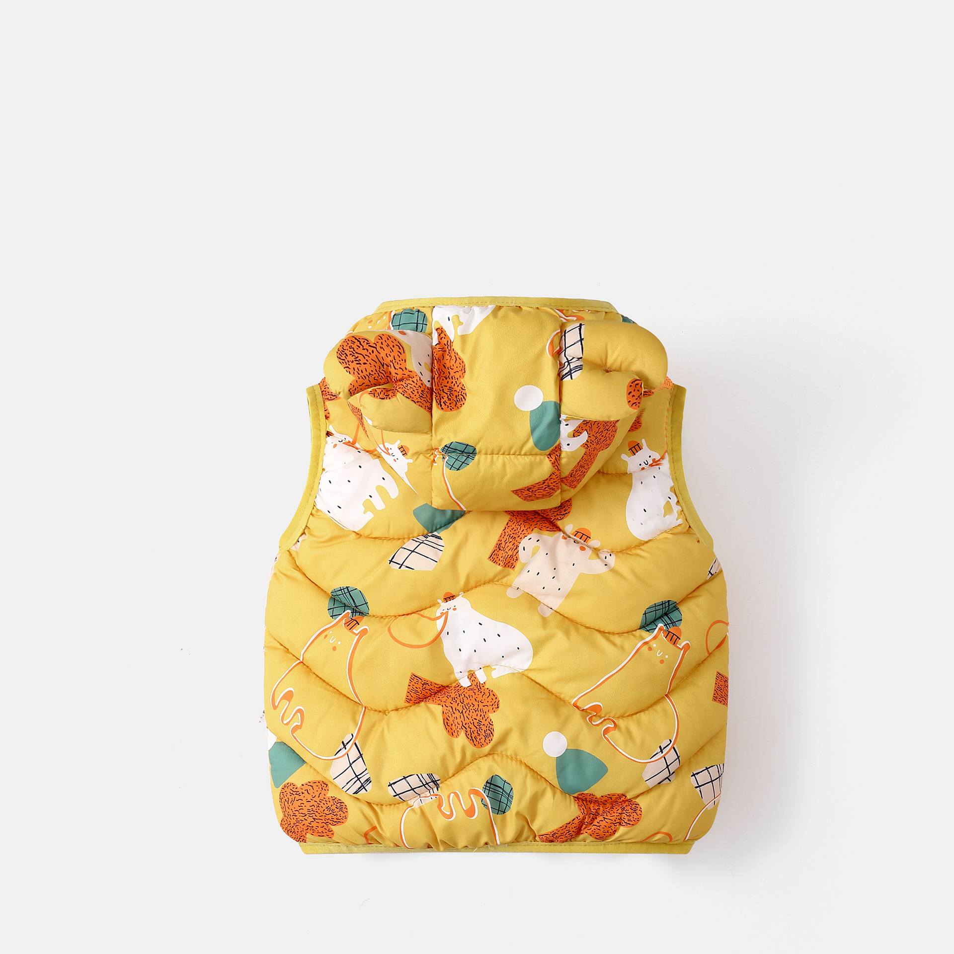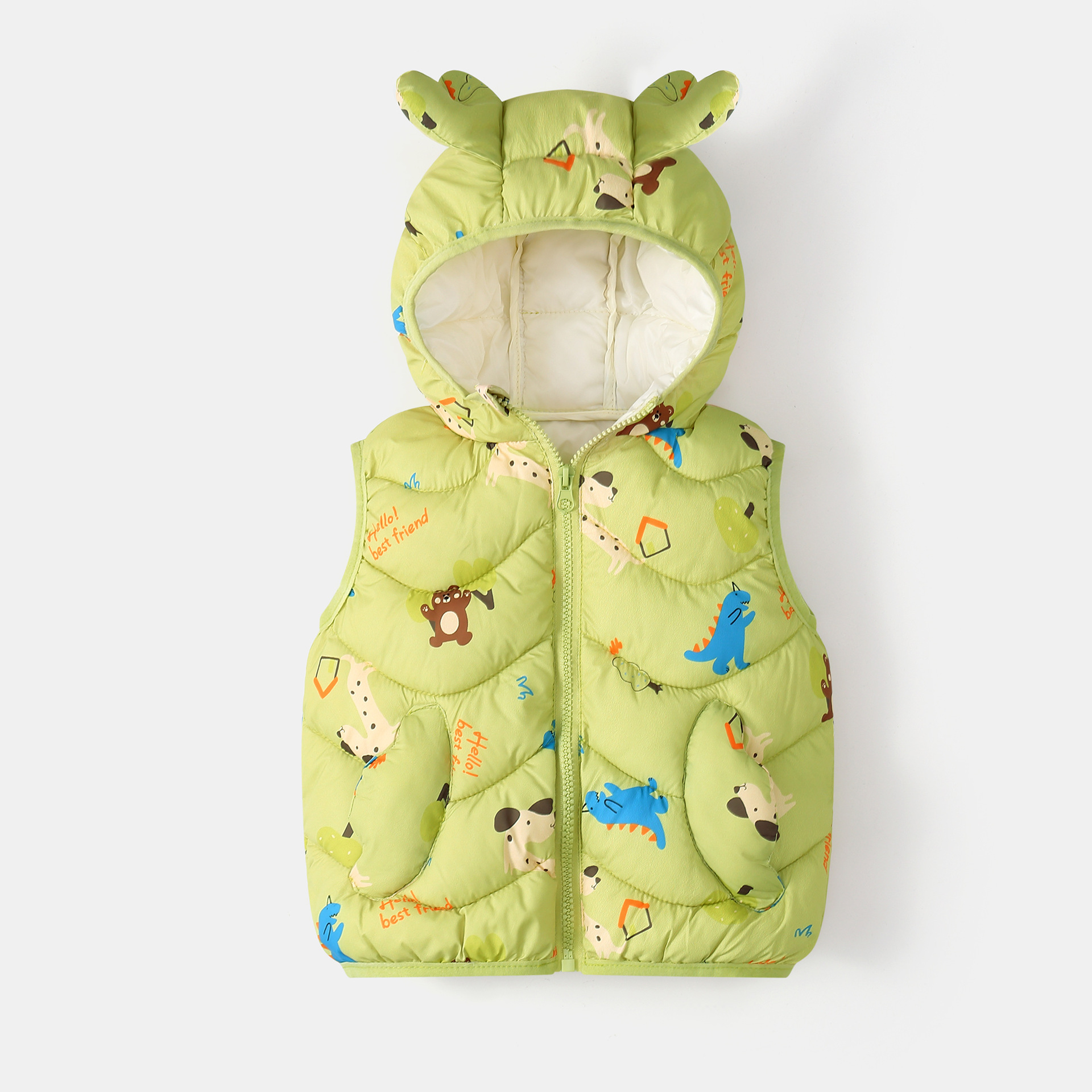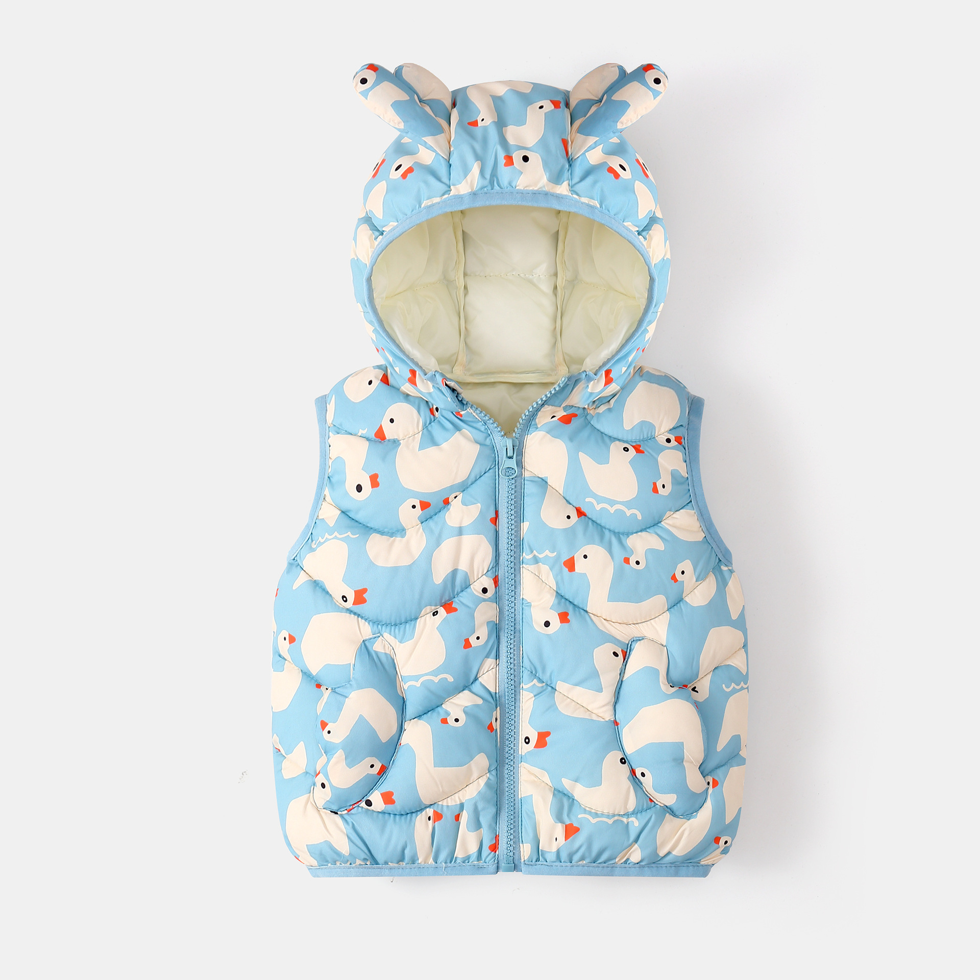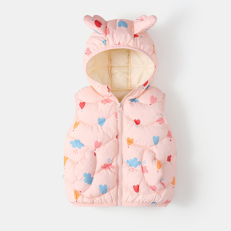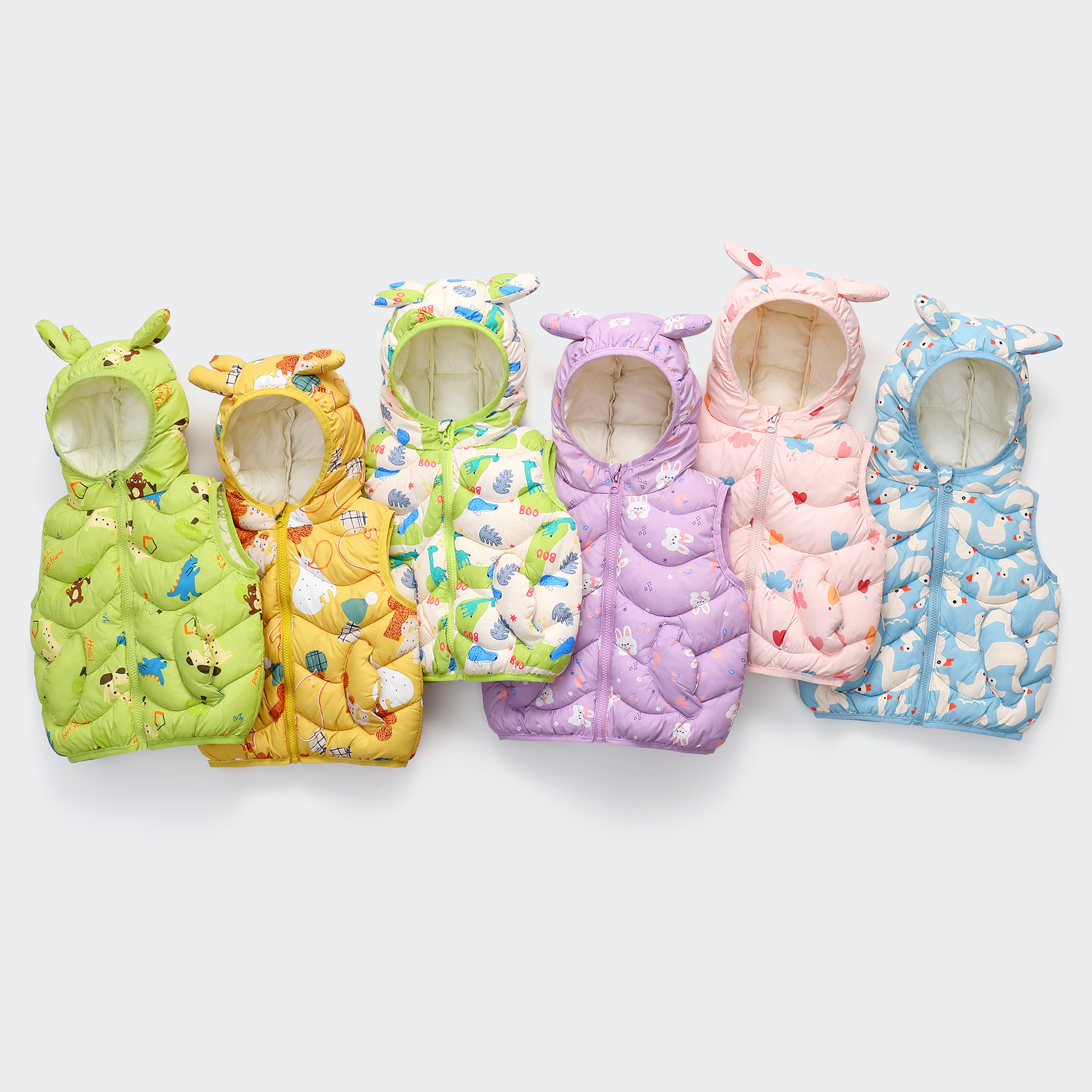 어린이 봄과 가을 만화 다운 면 후드 조끼 꽃 천 외부 착용 따뜻한 조끼 남성과 여성의 짧은 재킷 조끼