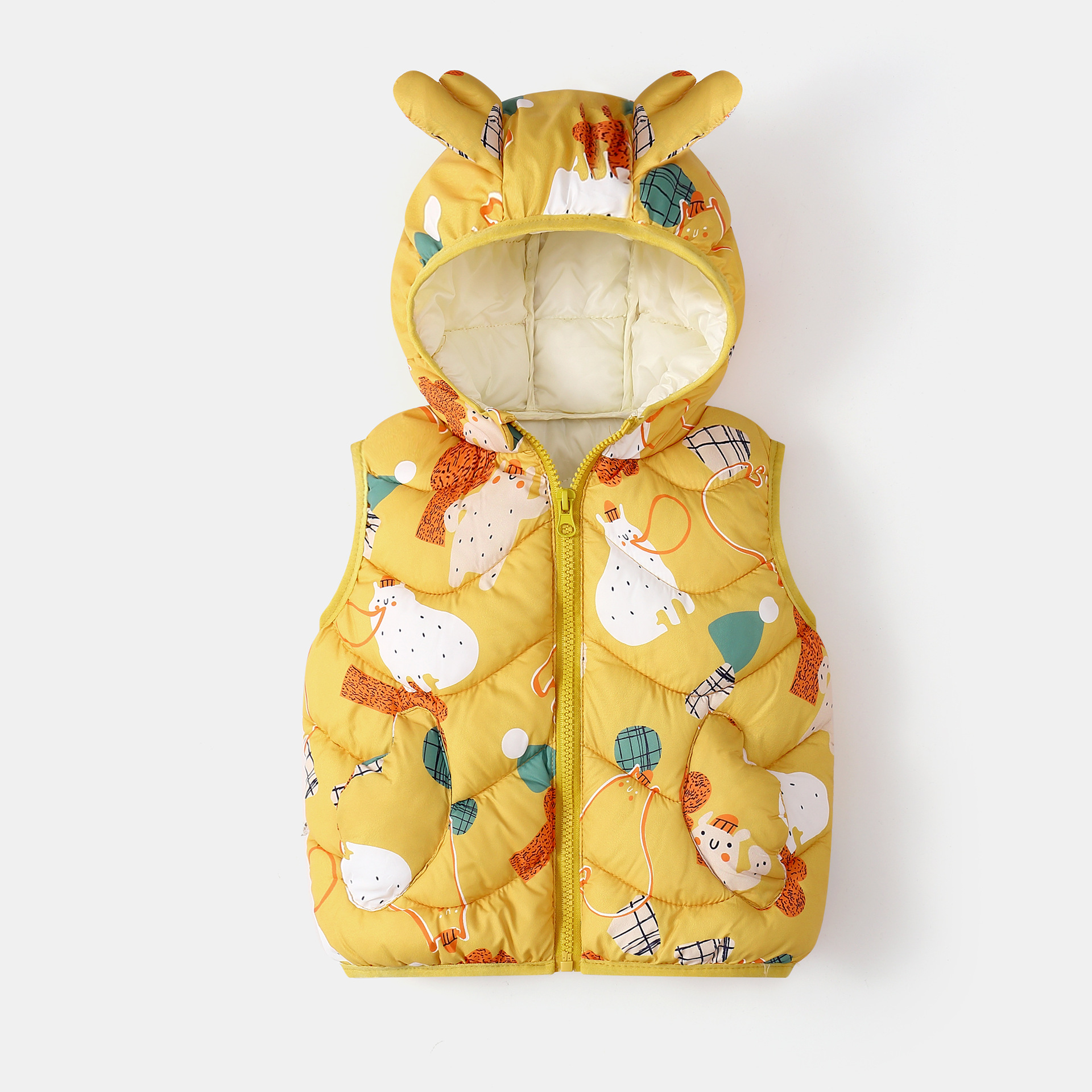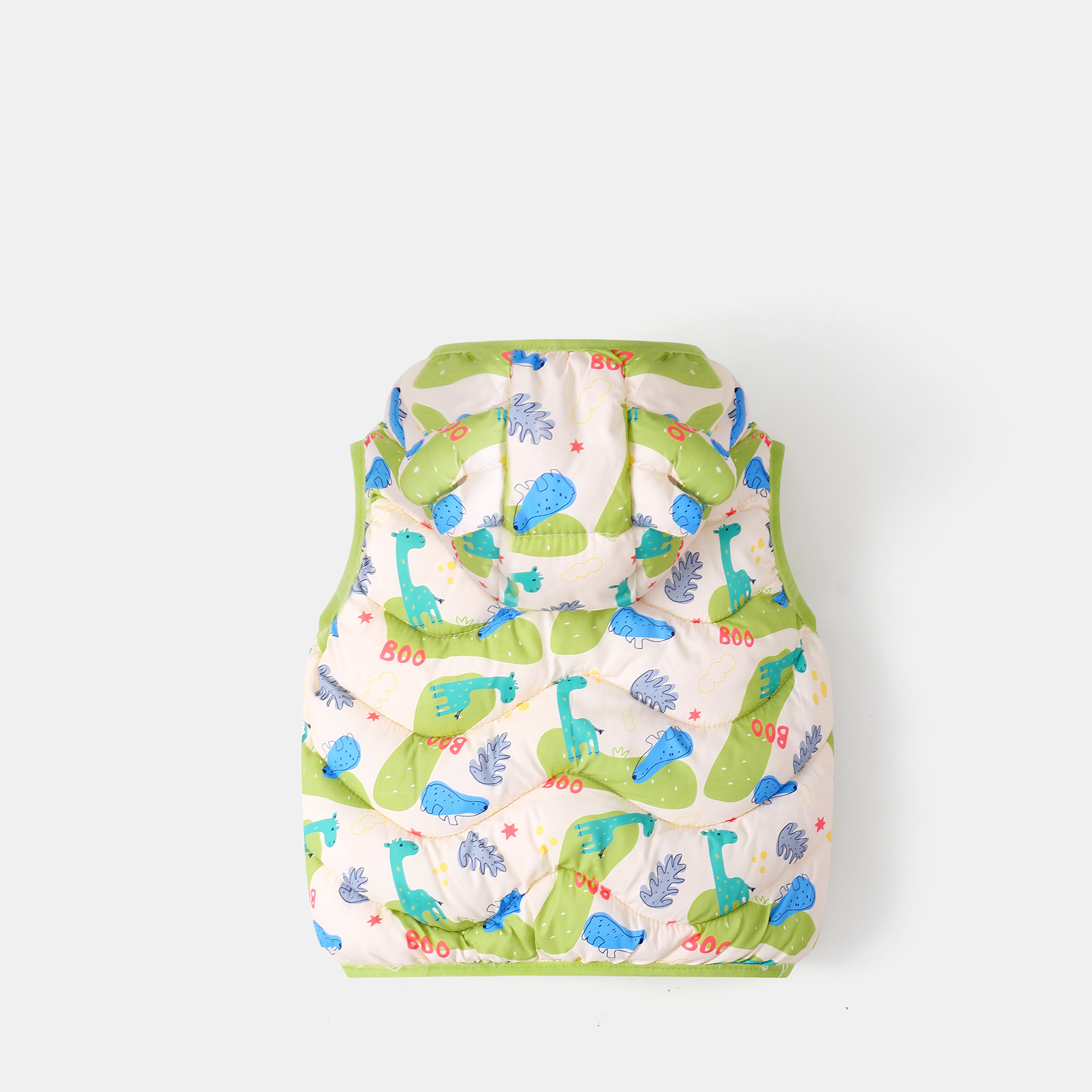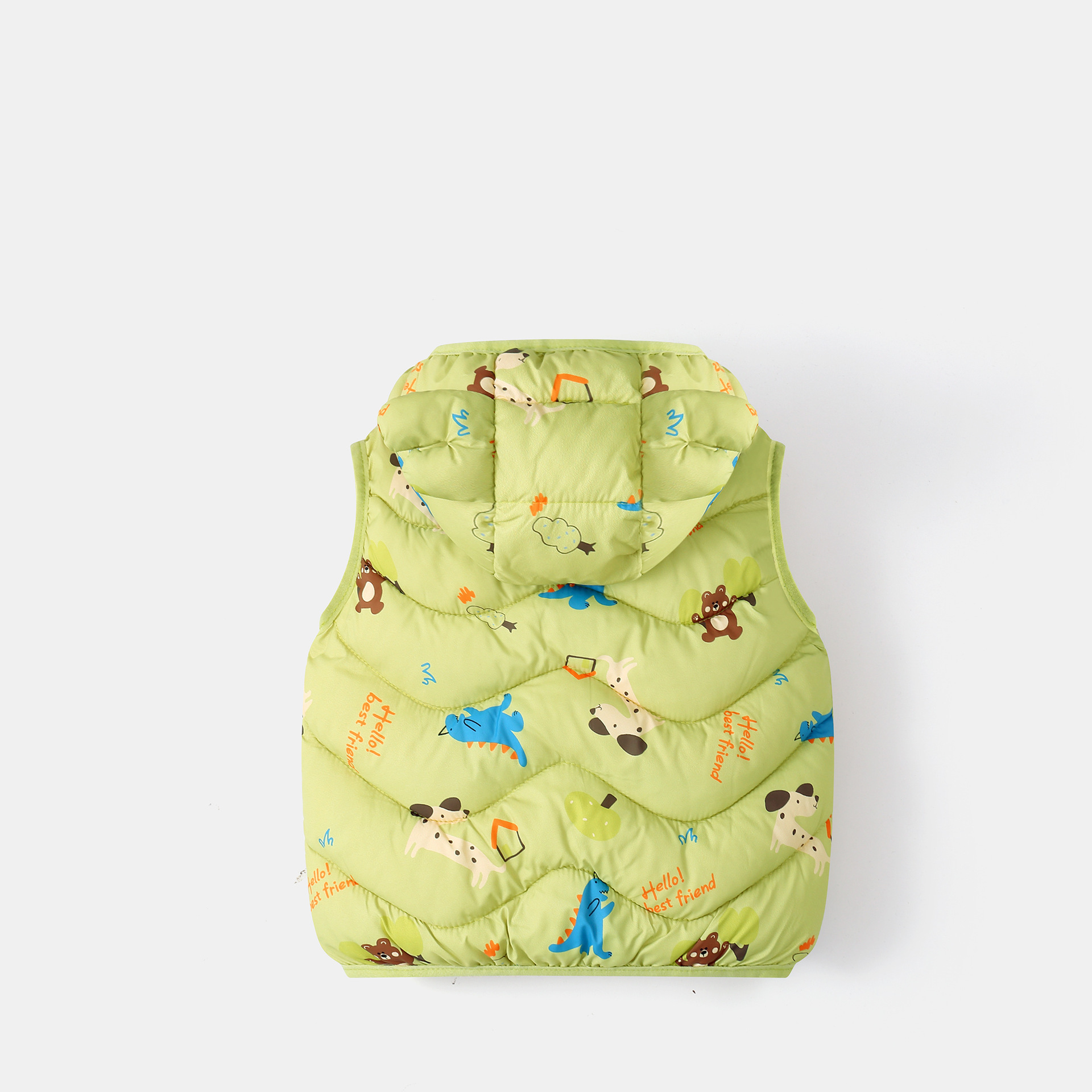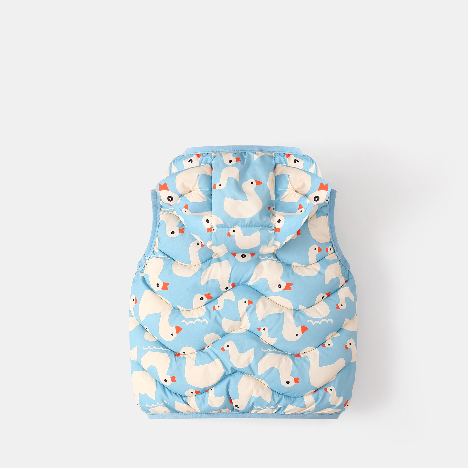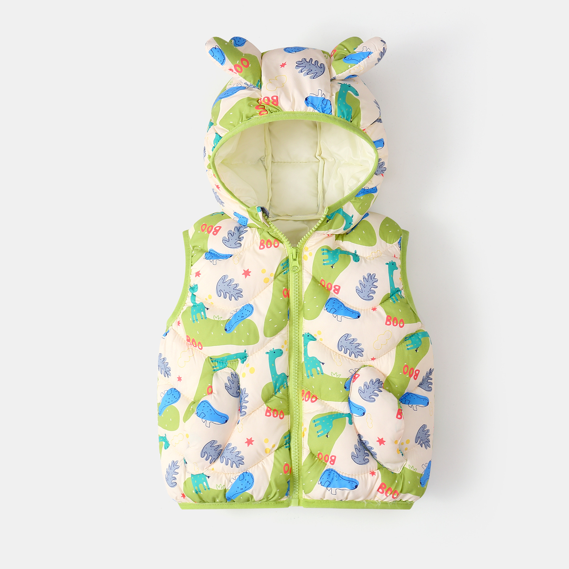 어린이 봄과 가을 만화 다운 면 후드 조끼 꽃 천 외부 착용 따뜻한 조끼 남성과 여성의 짧은 재킷 조끼
