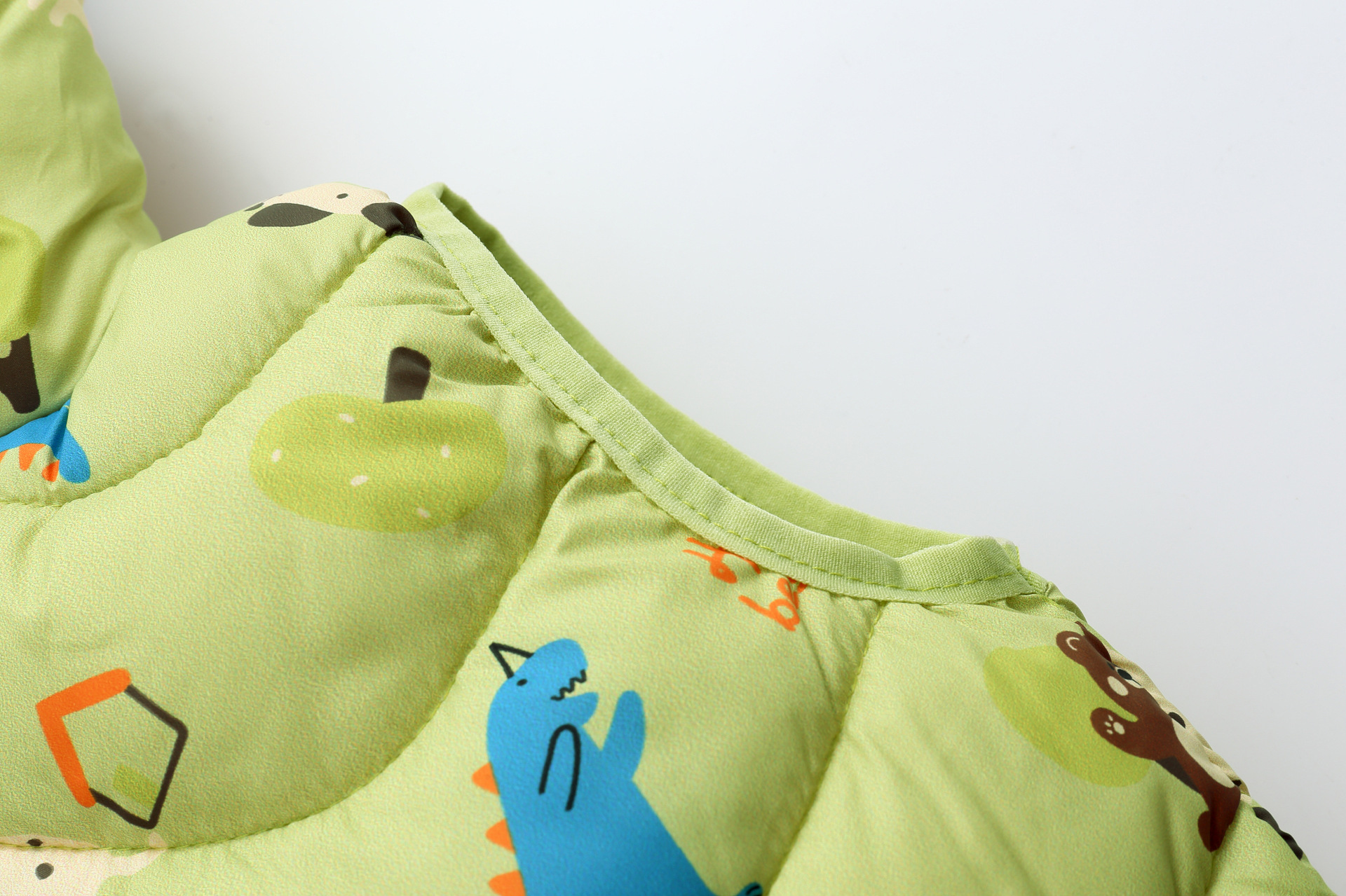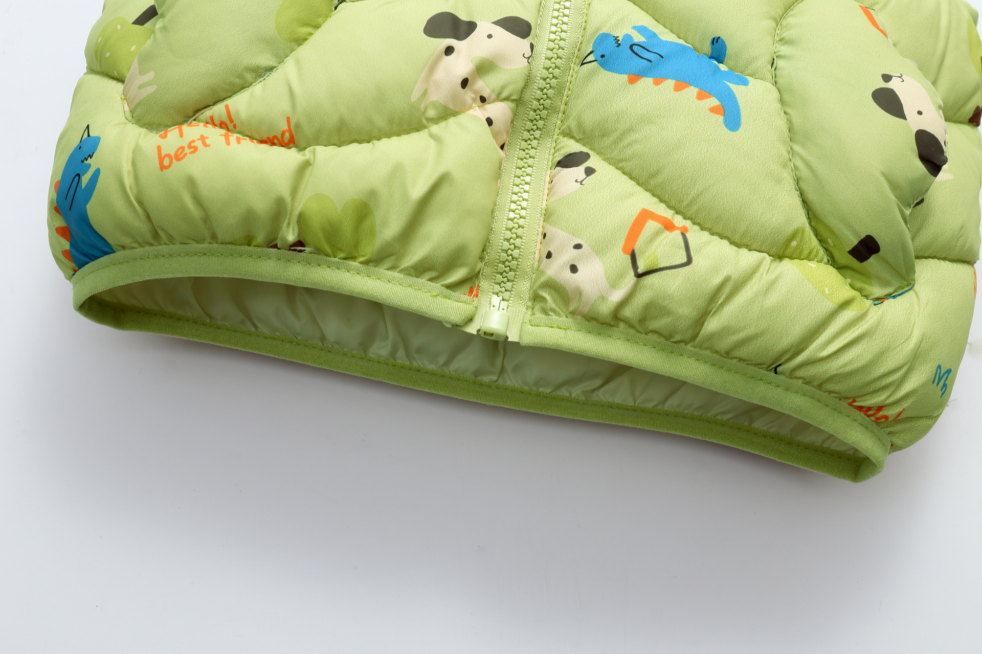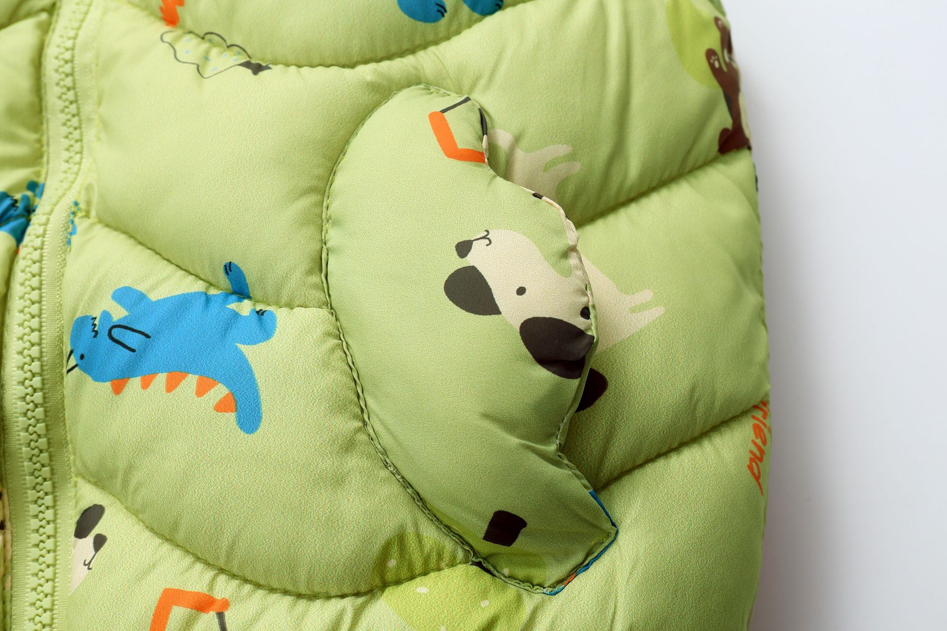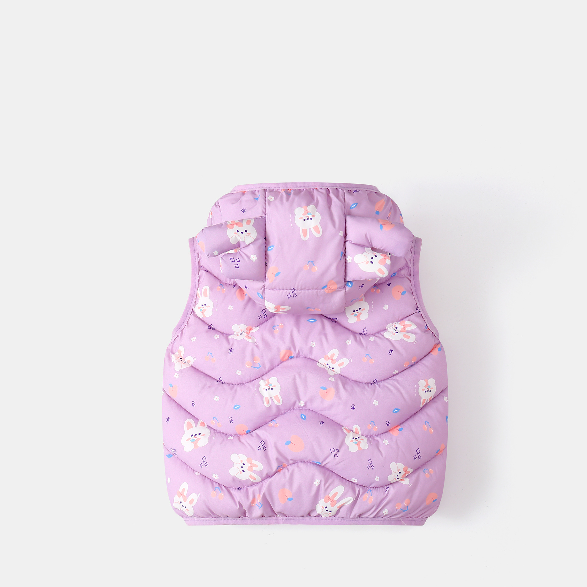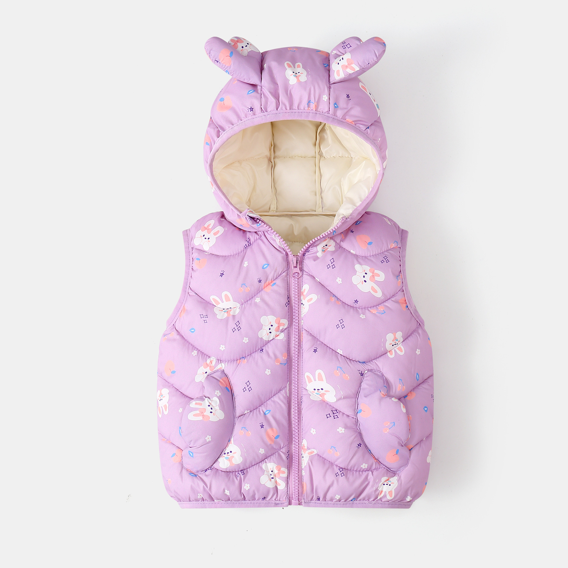 어린이 봄과 가을 만화 다운 면 후드 조끼 꽃 천 외부 착용 따뜻한 조끼 남성과 여성의 짧은 재킷 조끼