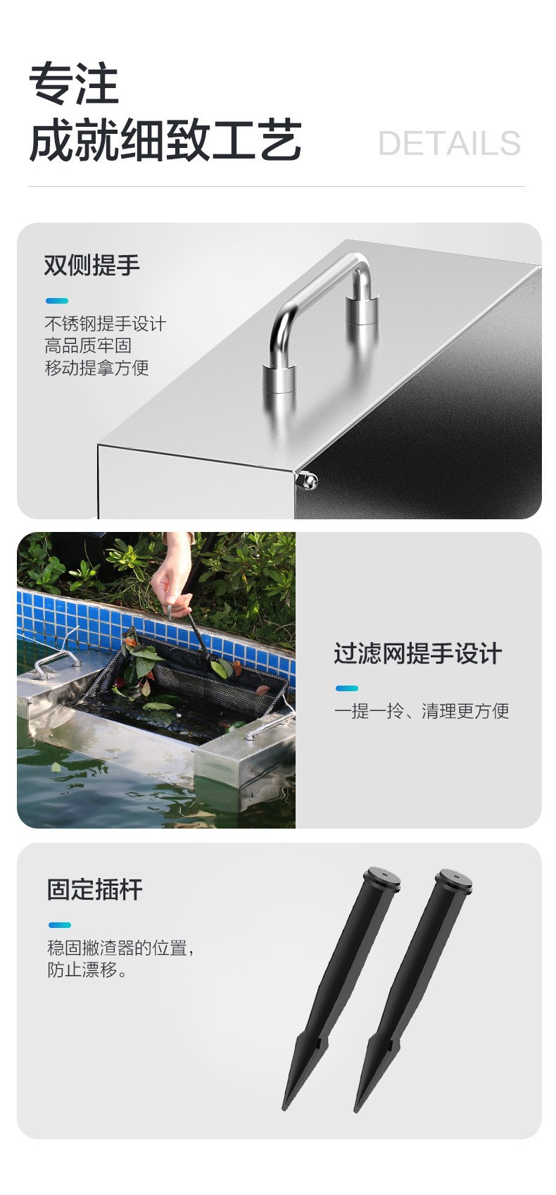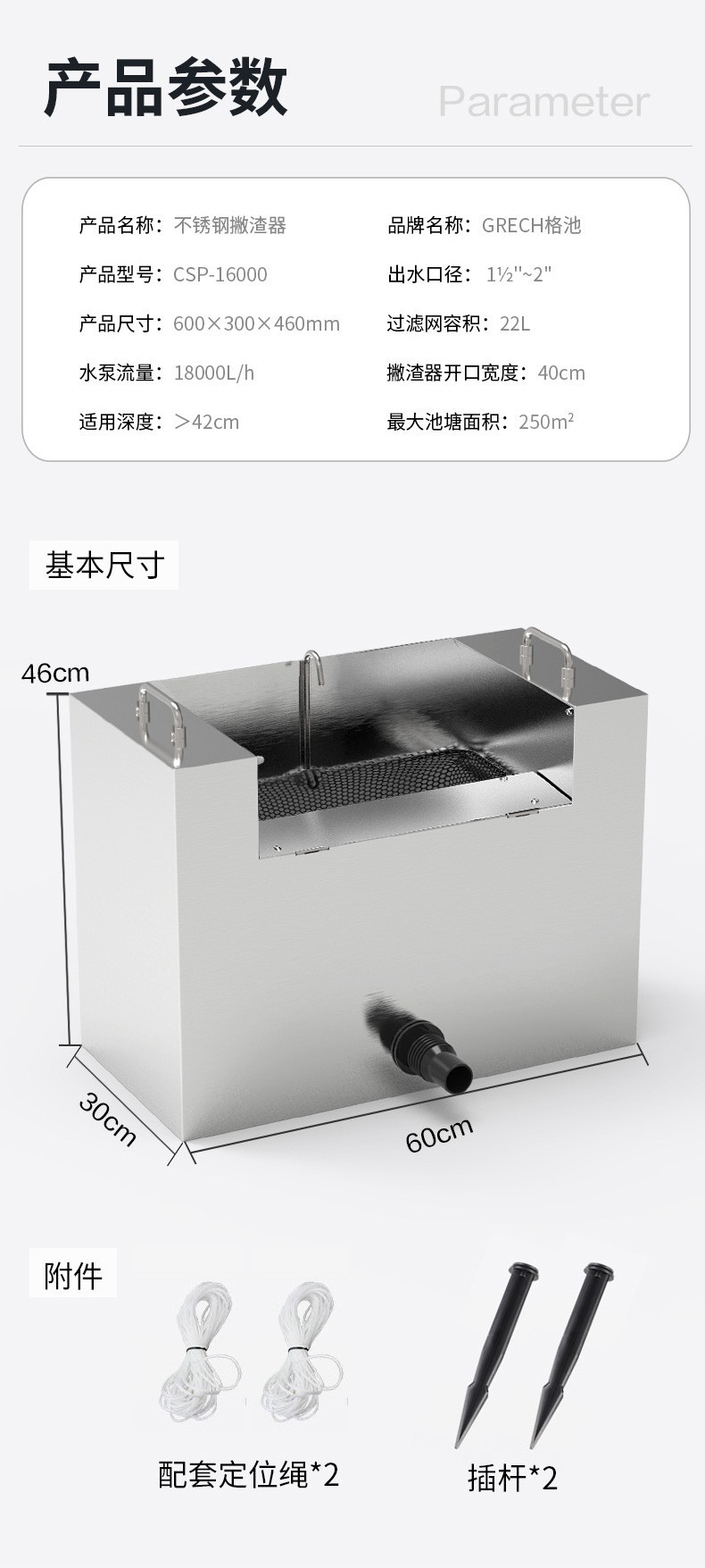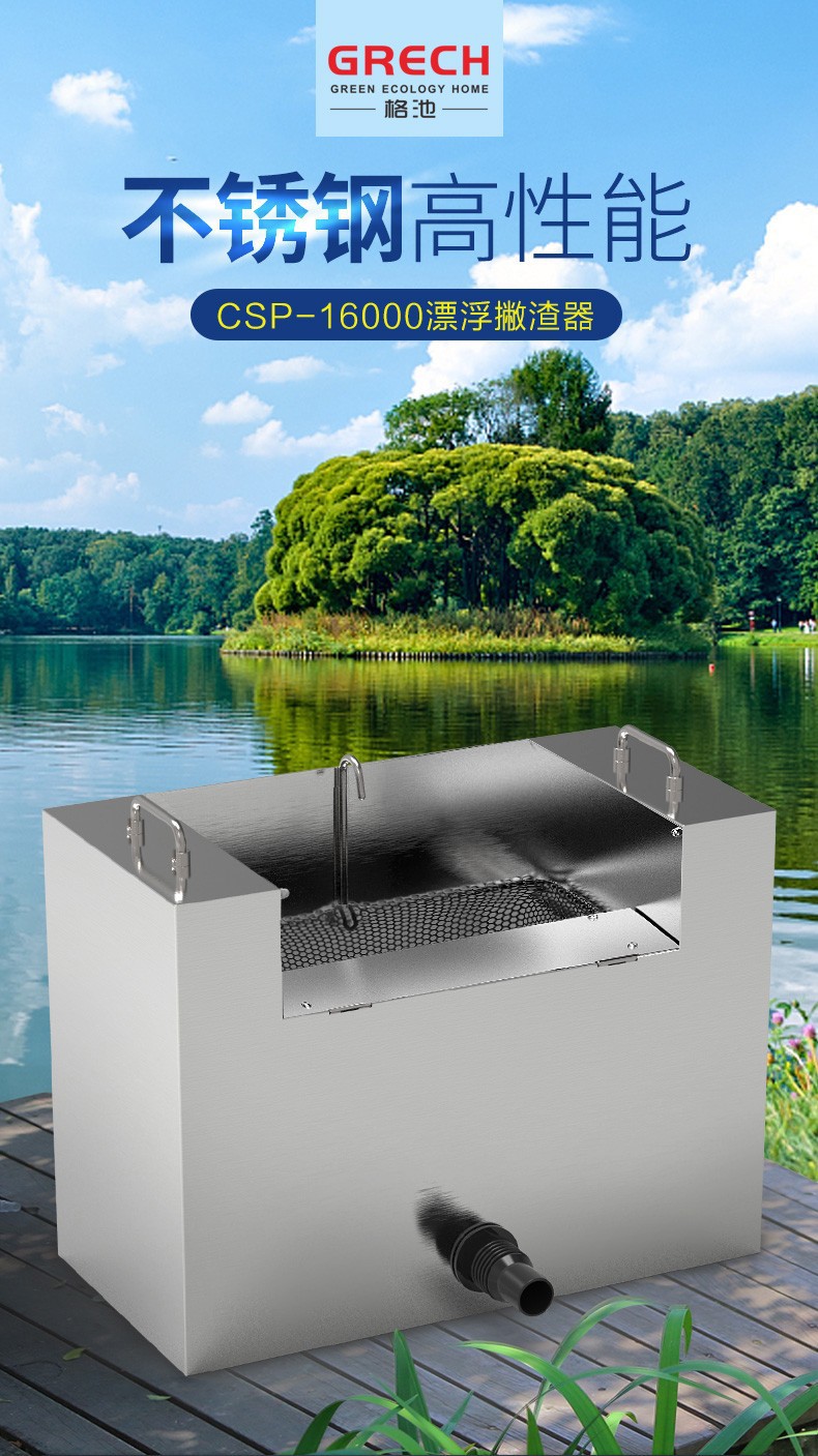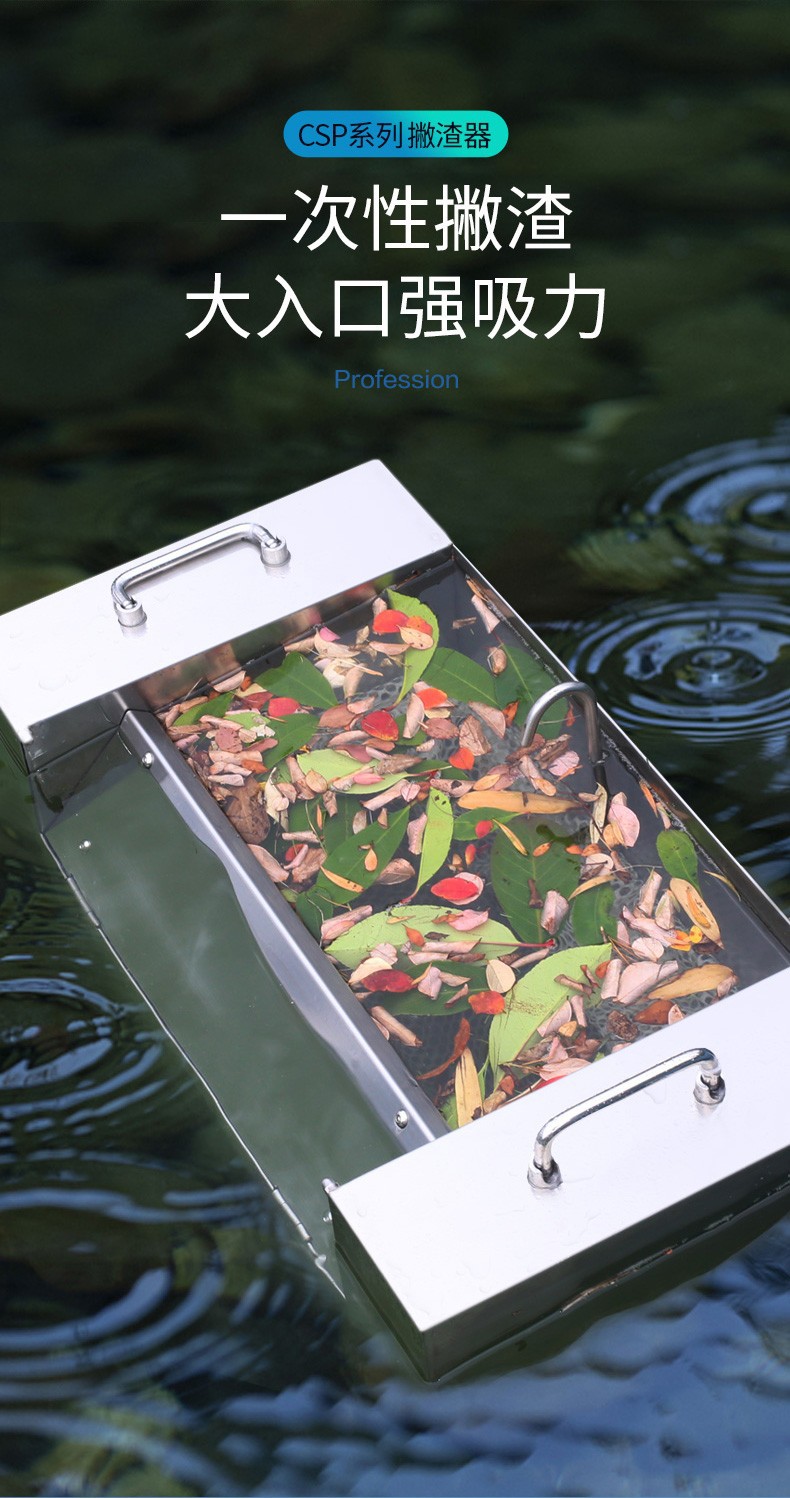 감각 풀 스테인레스 스틸 풀 스키머 떠 다니는 물고기 연못 잎 수집 장치 CSP-16000