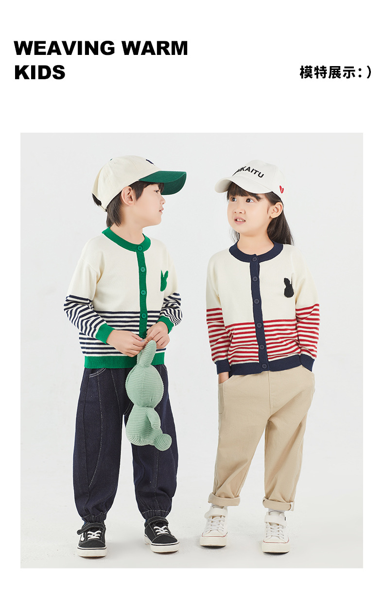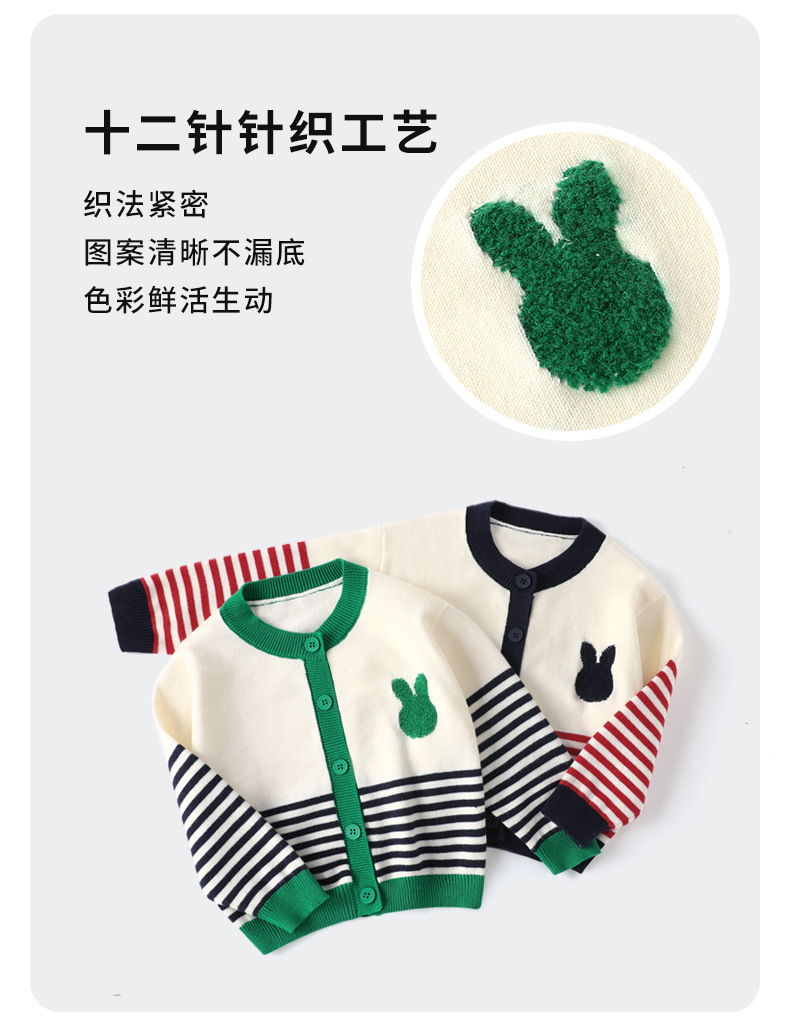 어린이 줄무늬 카디건 봄 어린이 한국식 만화 토끼 스웨터 둥근 목 면화 스웨터 얇은 니트 자켓