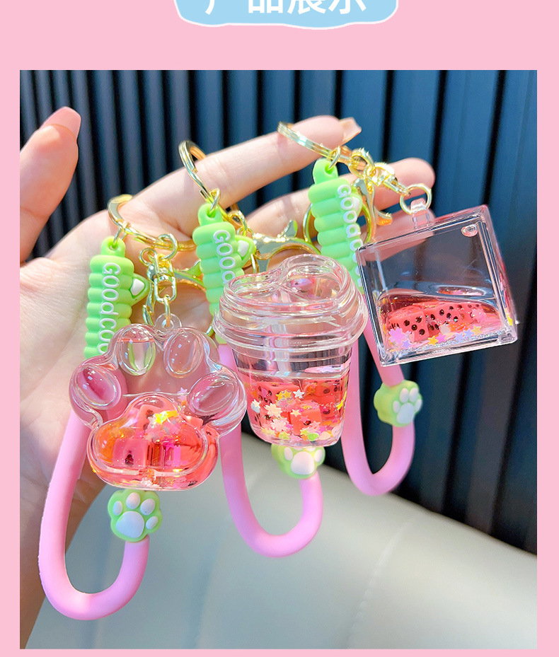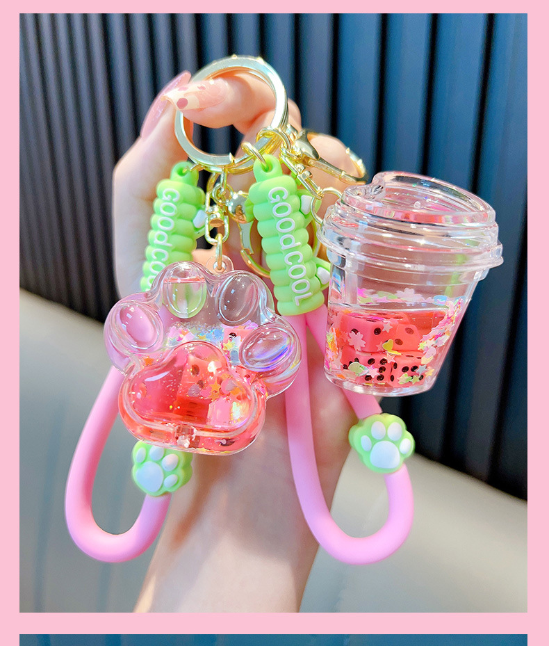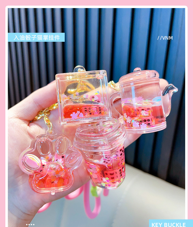 Woan 사쿠라 파우더 시리즈 체 오일 키 체인 플로팅 병 여성용 키 체인 가방 펜던트 작은 선물 도매스토어 가기