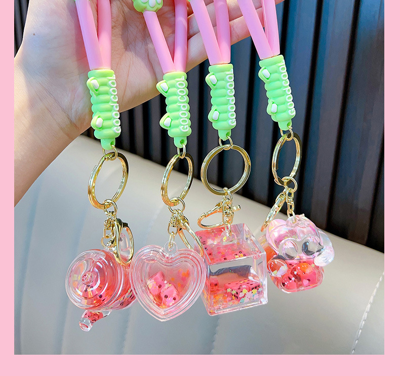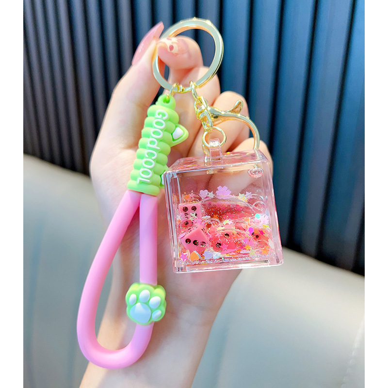 Woan 사쿠라 파우더 시리즈 체 오일 키 체인 플로팅 병 여성용 키 체인 가방 펜던트 작은 선물 도매