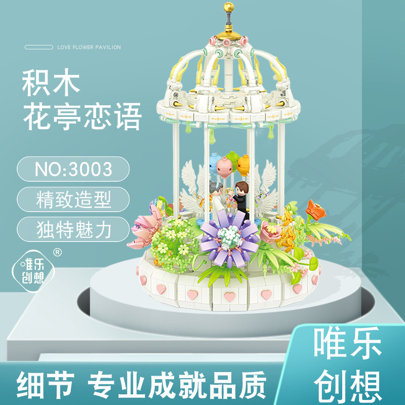 Wei Le Creative 3003 꽃 파빌리온 사랑 언어 회전 음악 상자 창조적 인 장식품 어린이 교육 조립 빌딩 블록 장난감스토어 가기