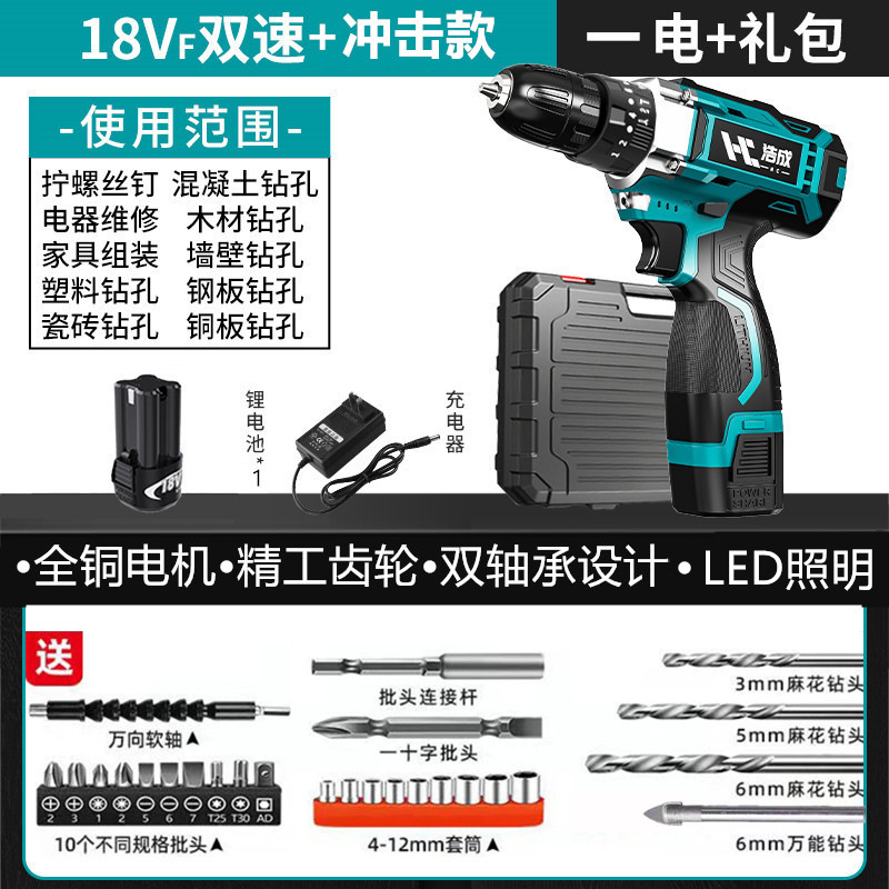 하오청 리튬 전동 드릴 충격 드릴 다기능 충전식 핸드 드릴 가정용 전동 드라이버 전동 드릴 도구