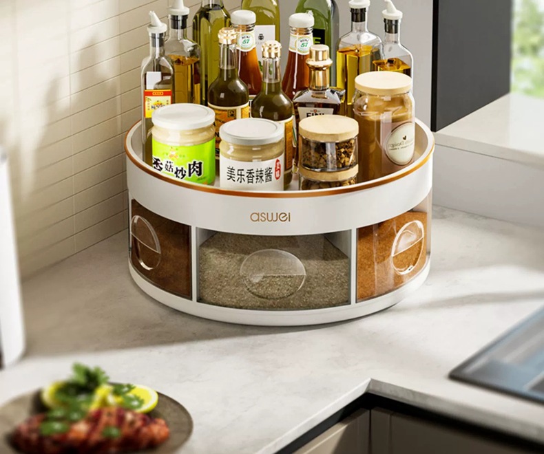 회전 조미료 상자 주방 조미료 보관 랙 조리대 코너 병 항아리 보관 랙 다기능 조미료 상자