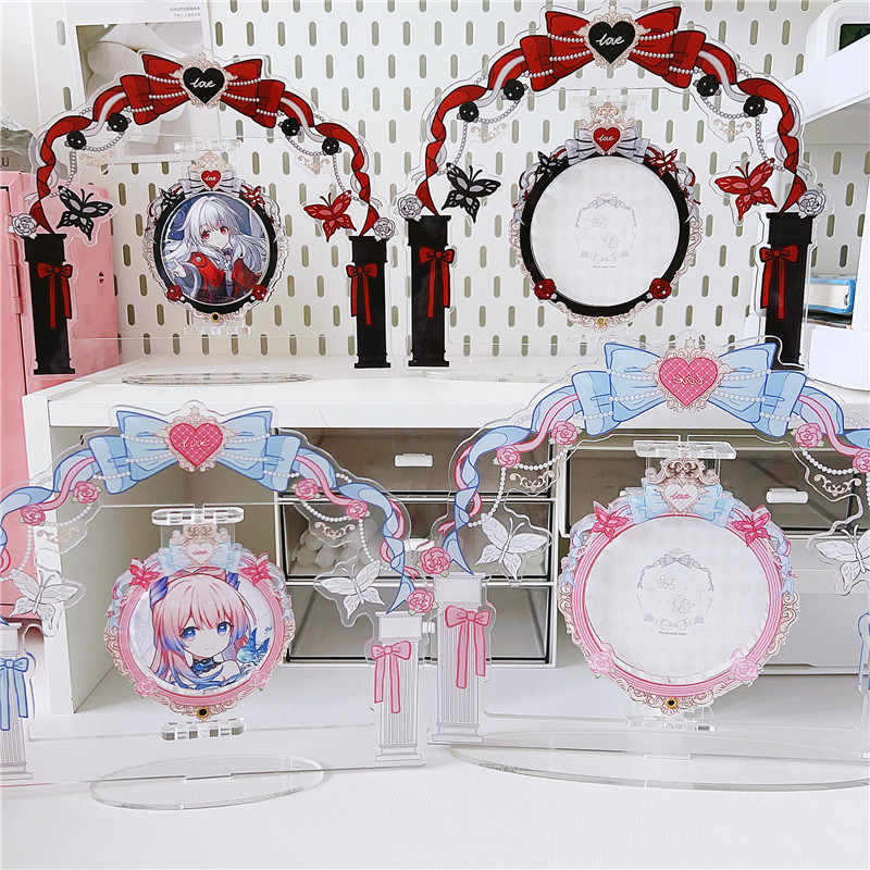 Gu Mei Yum 플레이트 회전 배지 보관 디스플레이 스탠드 아크릴 브랜드 만화 장식 만화 사진 프레임 카드 벽돌