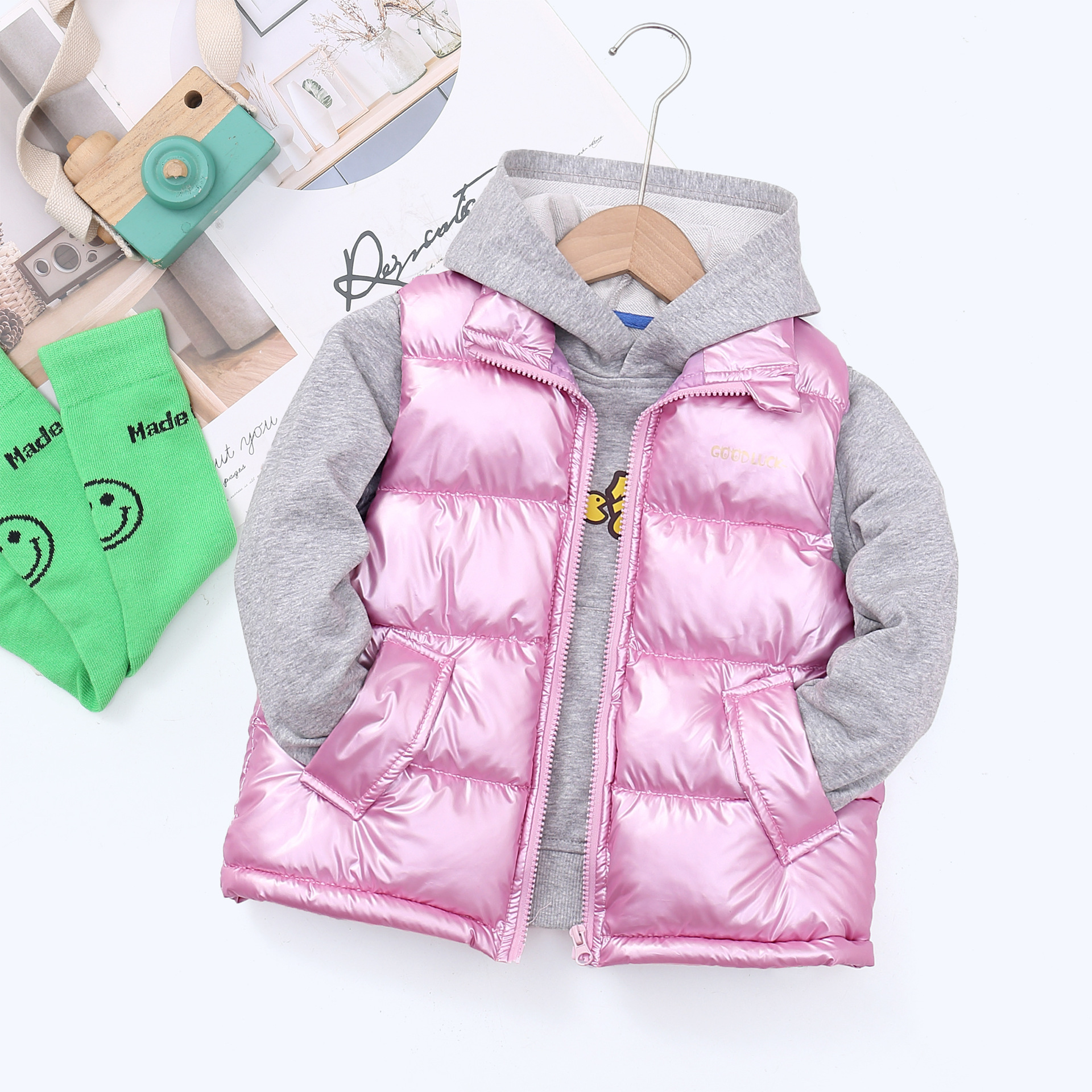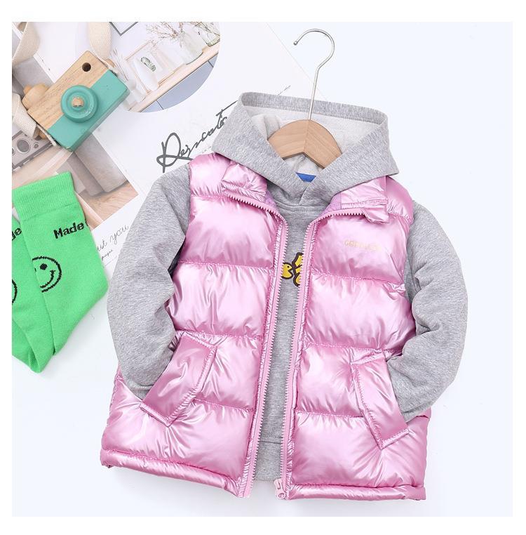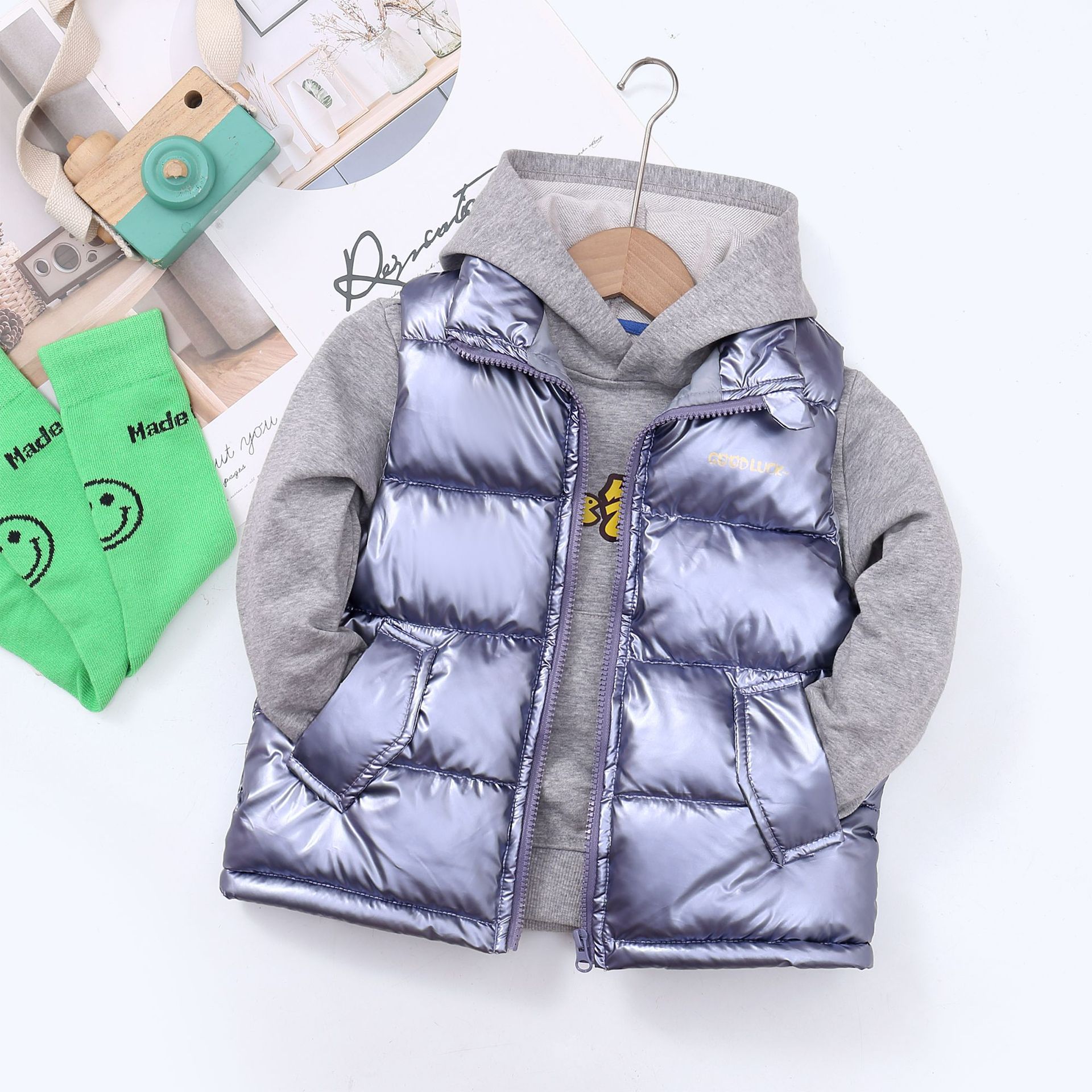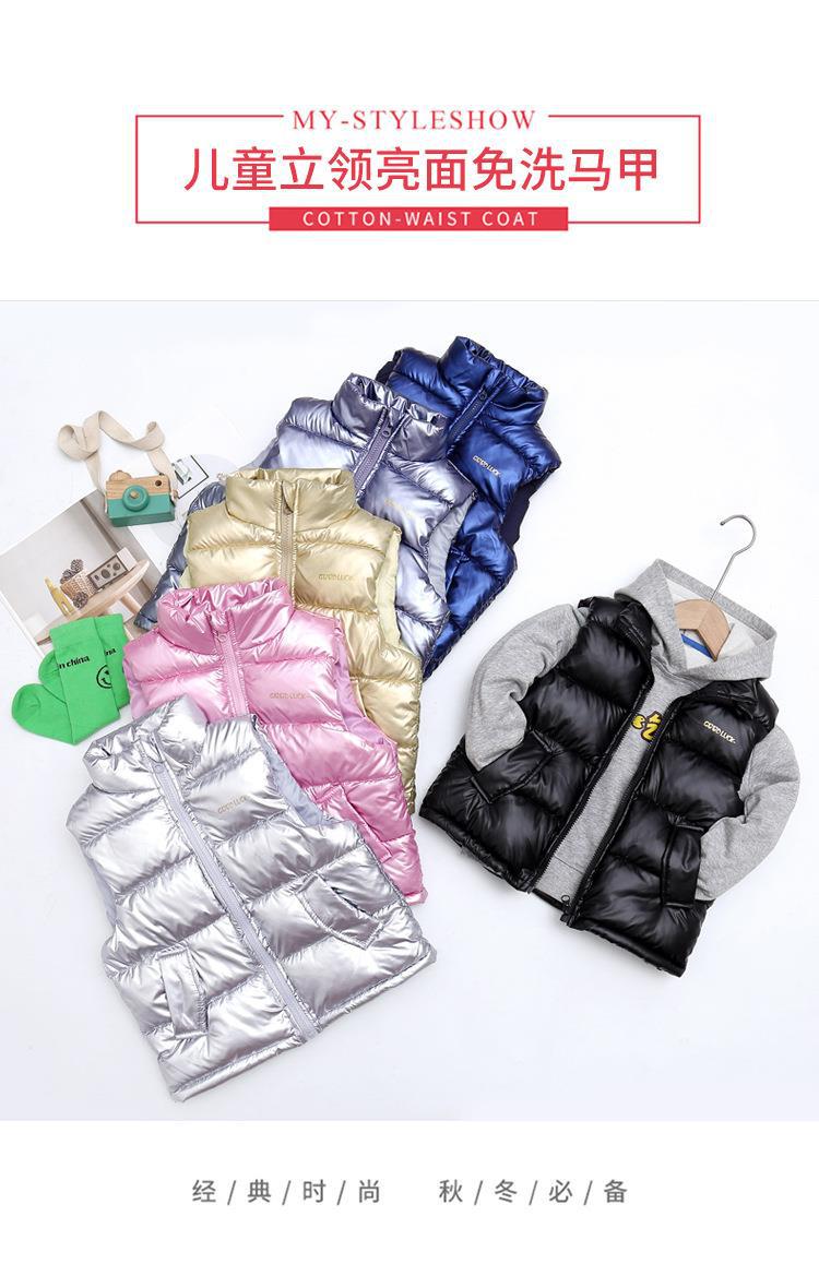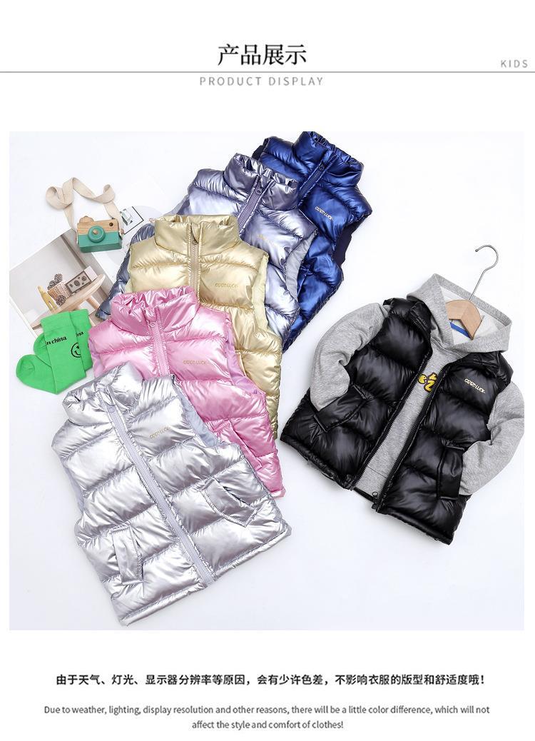 가을과 겨울 새로운 밝은 어린이 다운 면 조끼 소년 착용 조끼 여성용 소형, 중형 및 대형 어린이 조끼 라이브 공급스토어 가기