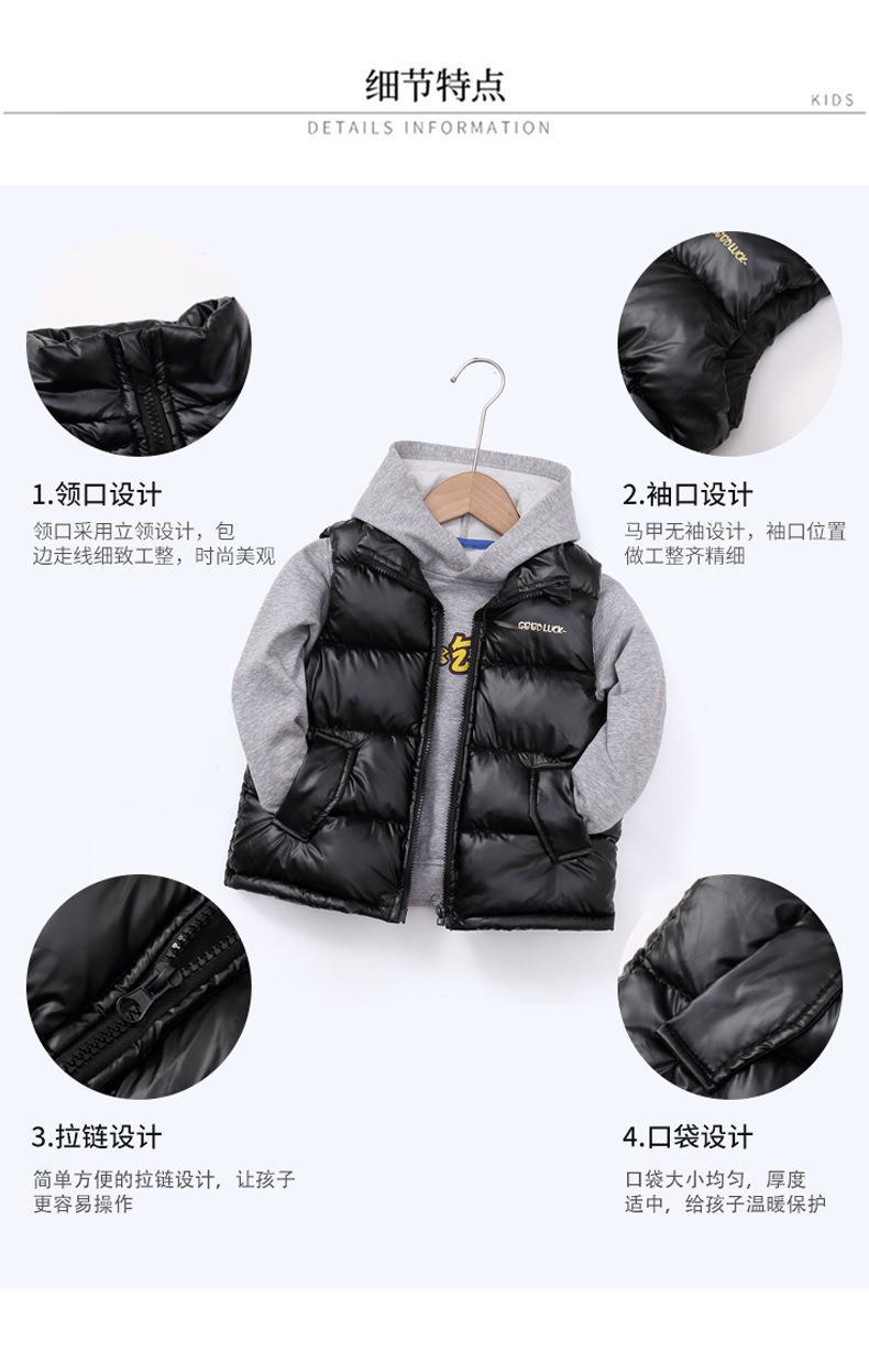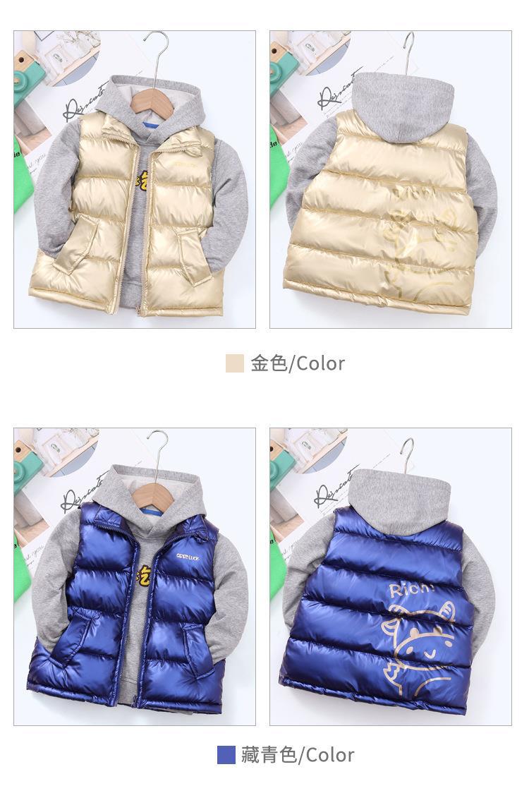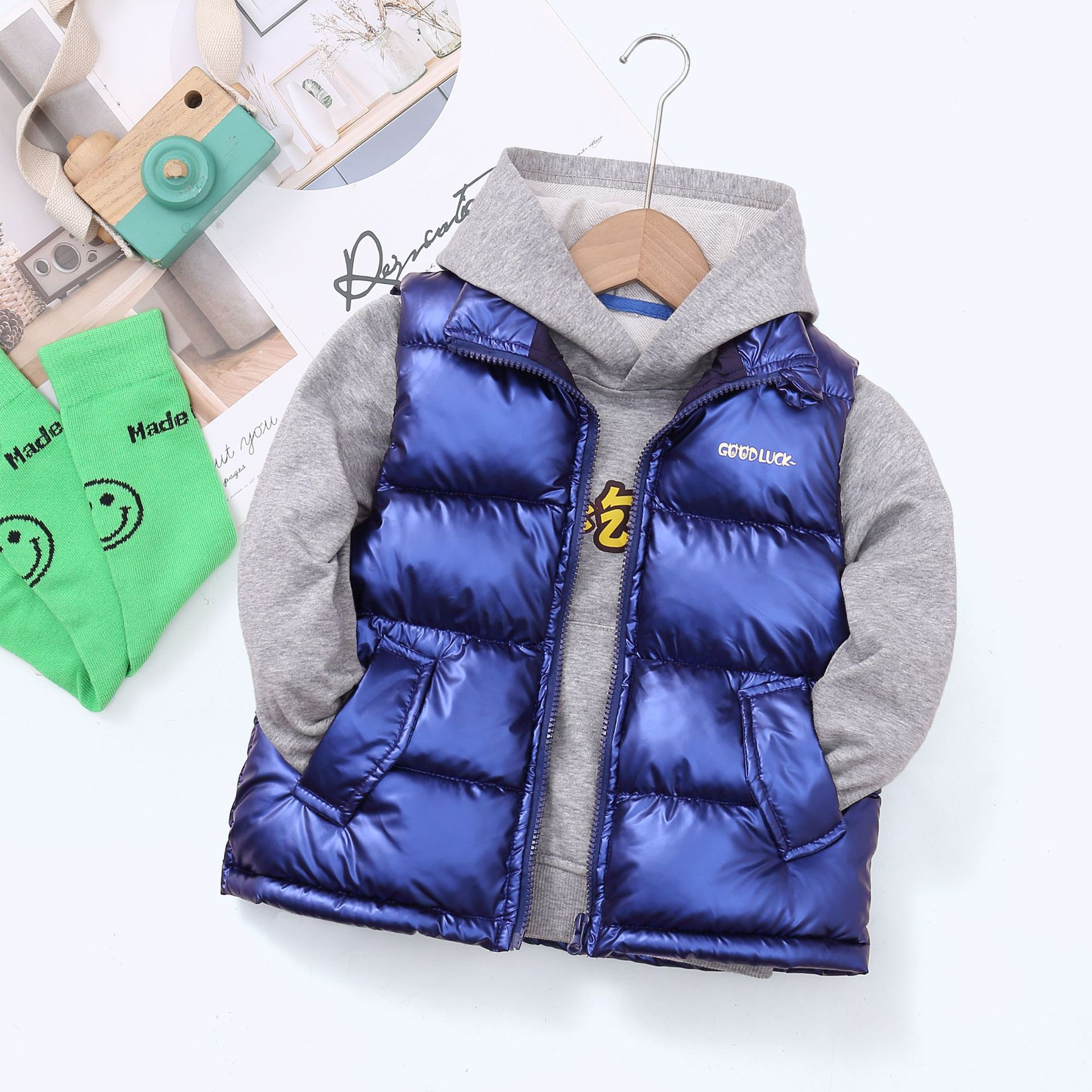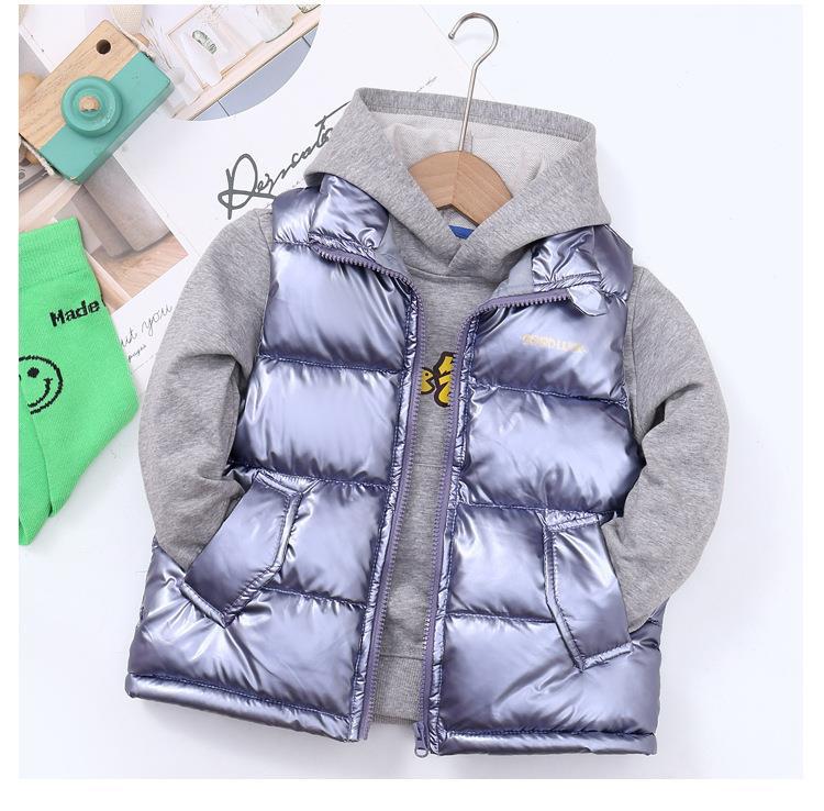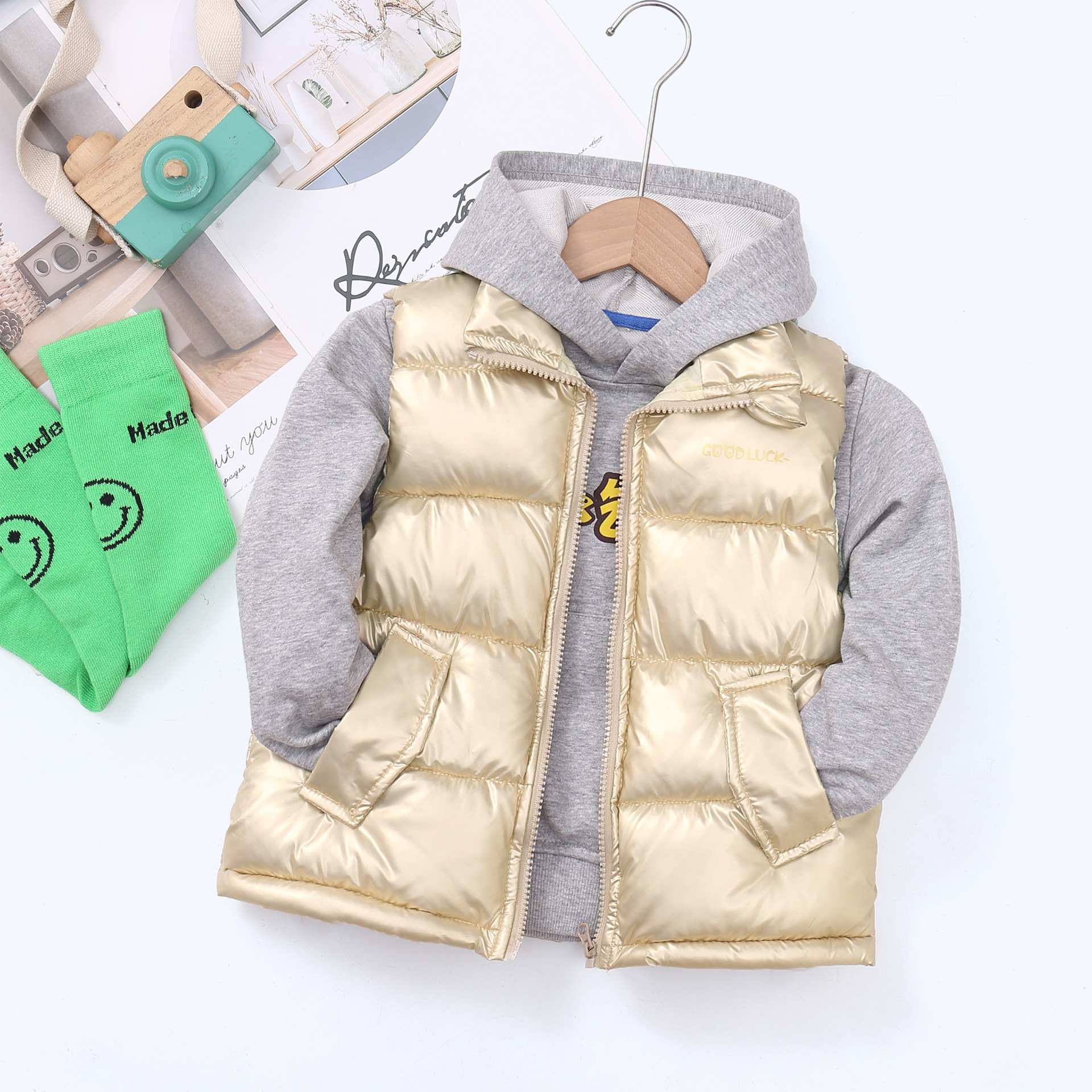 가을과 겨울 새로운 밝은 어린이 다운 면 조끼 소년 착용 조끼 여성용 소형, 중형 및 대형 어린이 조끼 라이브 공급스토어 가기