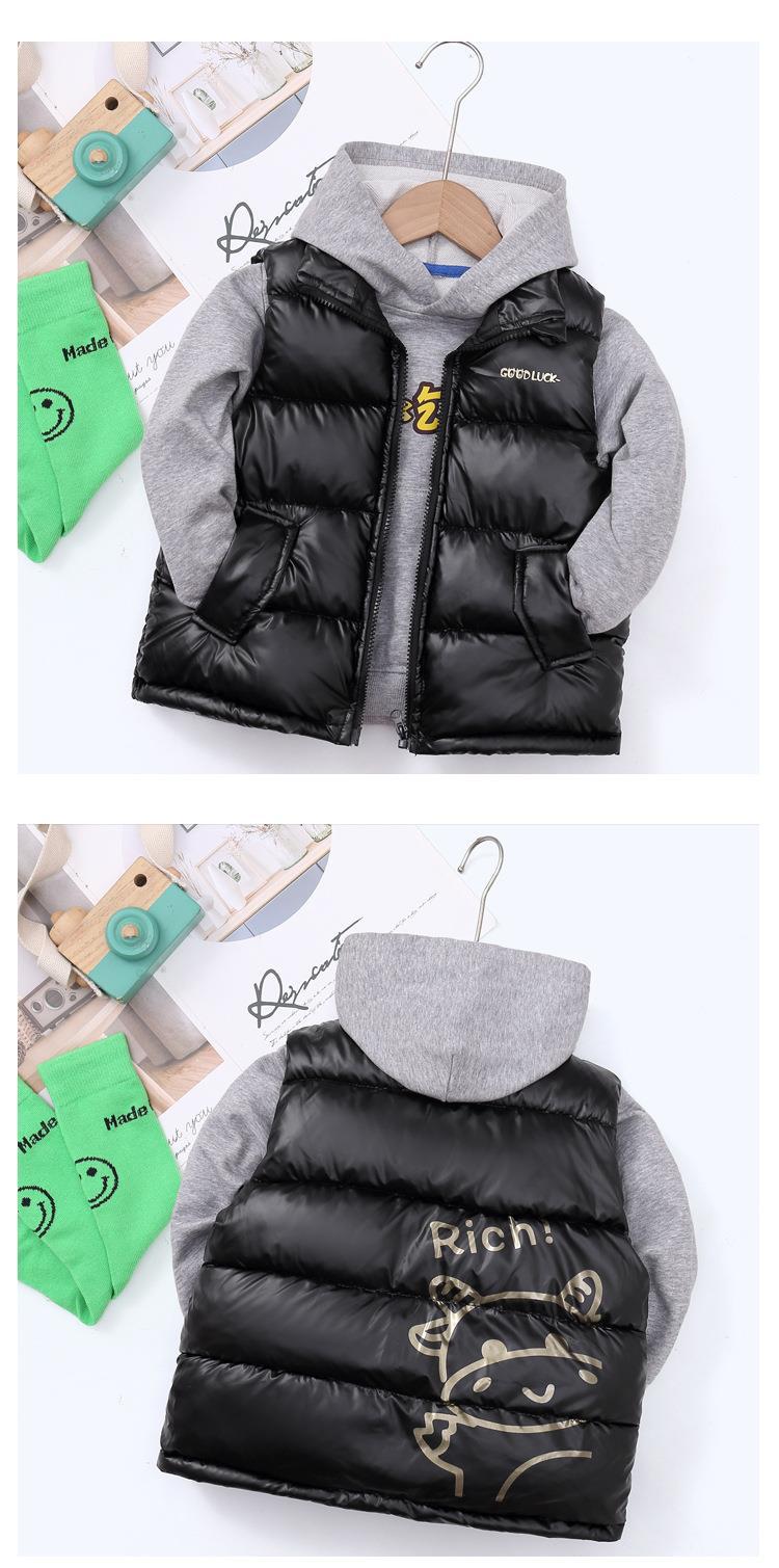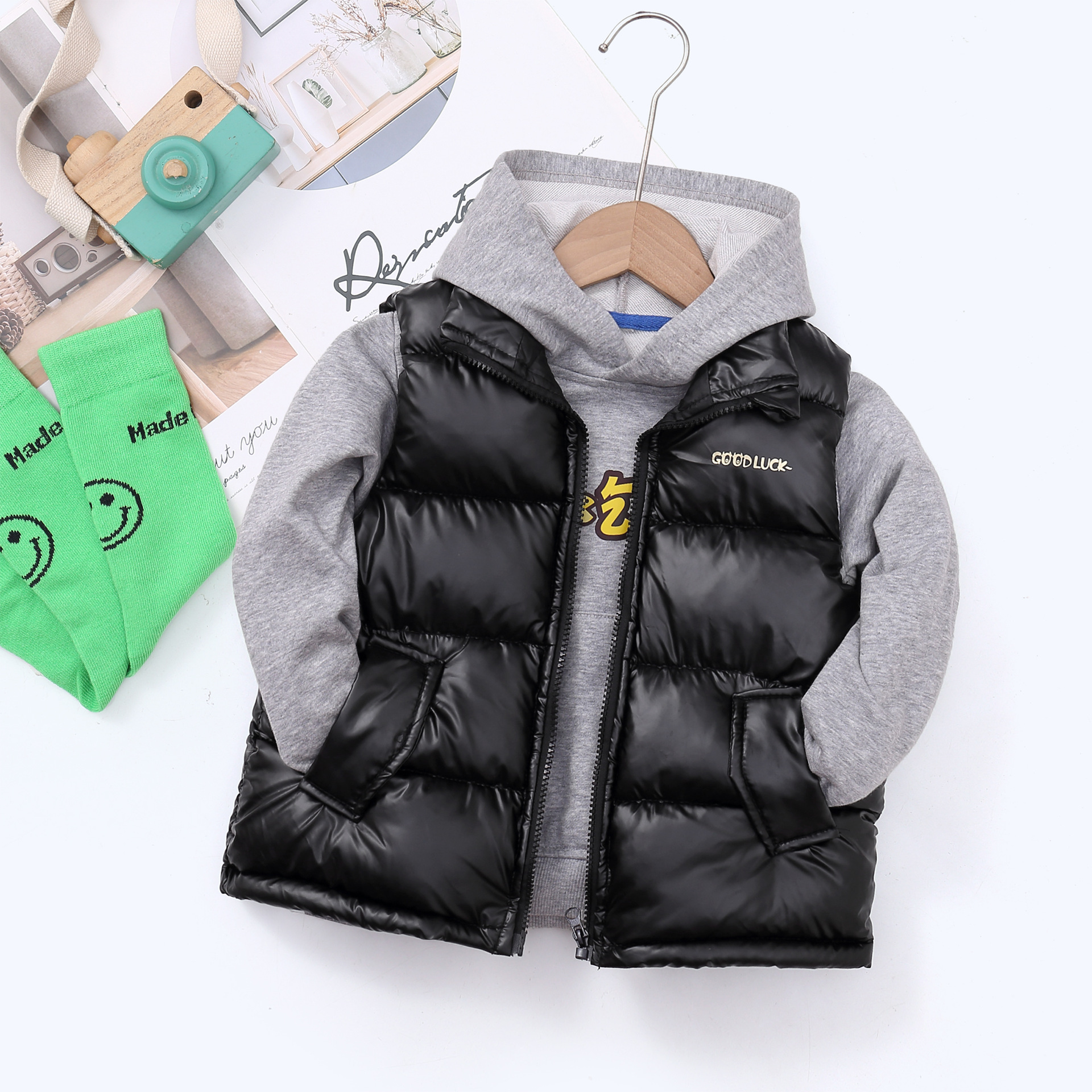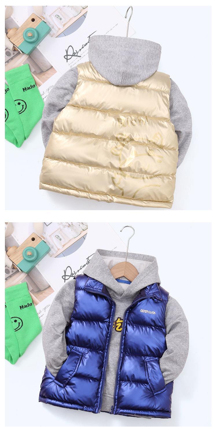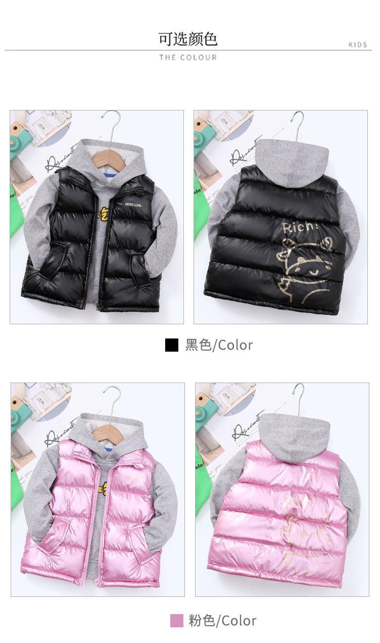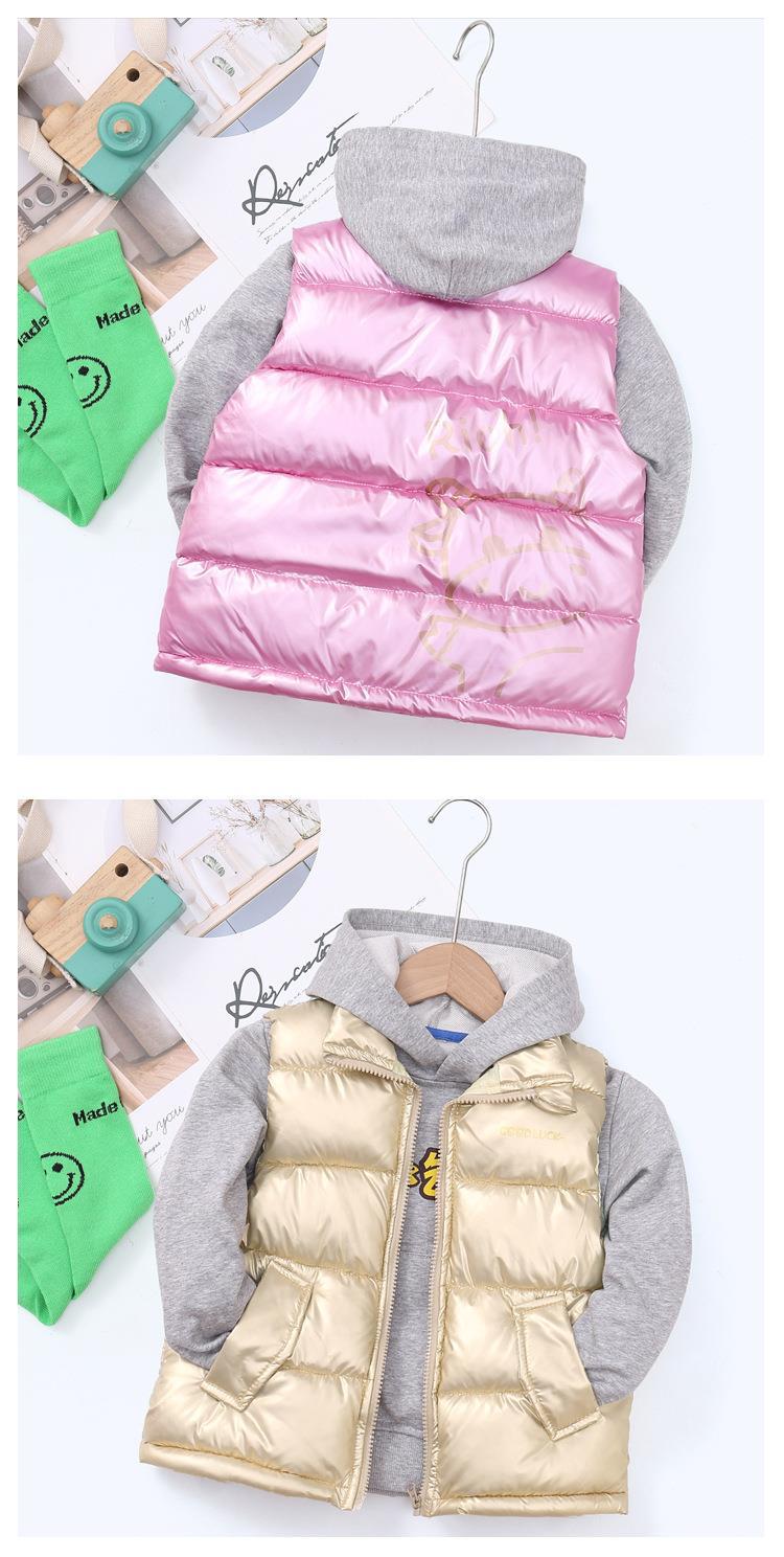 가을과 겨울 새로운 밝은 어린이 다운 면 조끼 소년 착용 조끼 여성용 소형, 중형 및 대형 어린이 조끼 라이브 공급스토어 가기