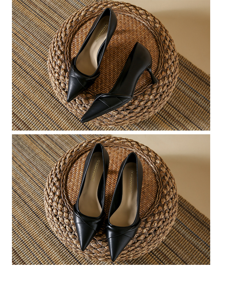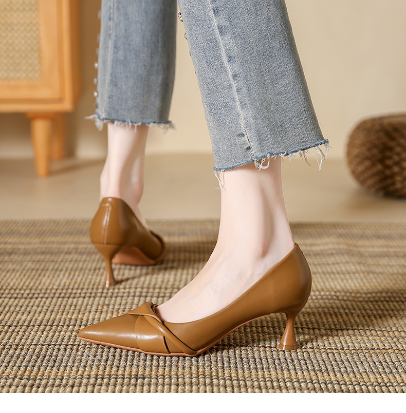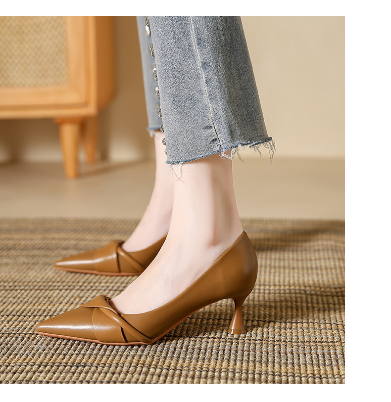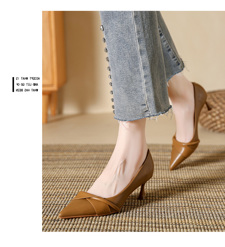 여성용 프렌치 하이힐 2025 신형 부드러운 가죽 뾰족한 신발 스틸레토 힐 메리 제인 여성용 신발 정품 가죽 포도 엄마 같은 스타일스토어 가기