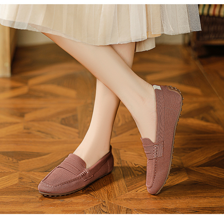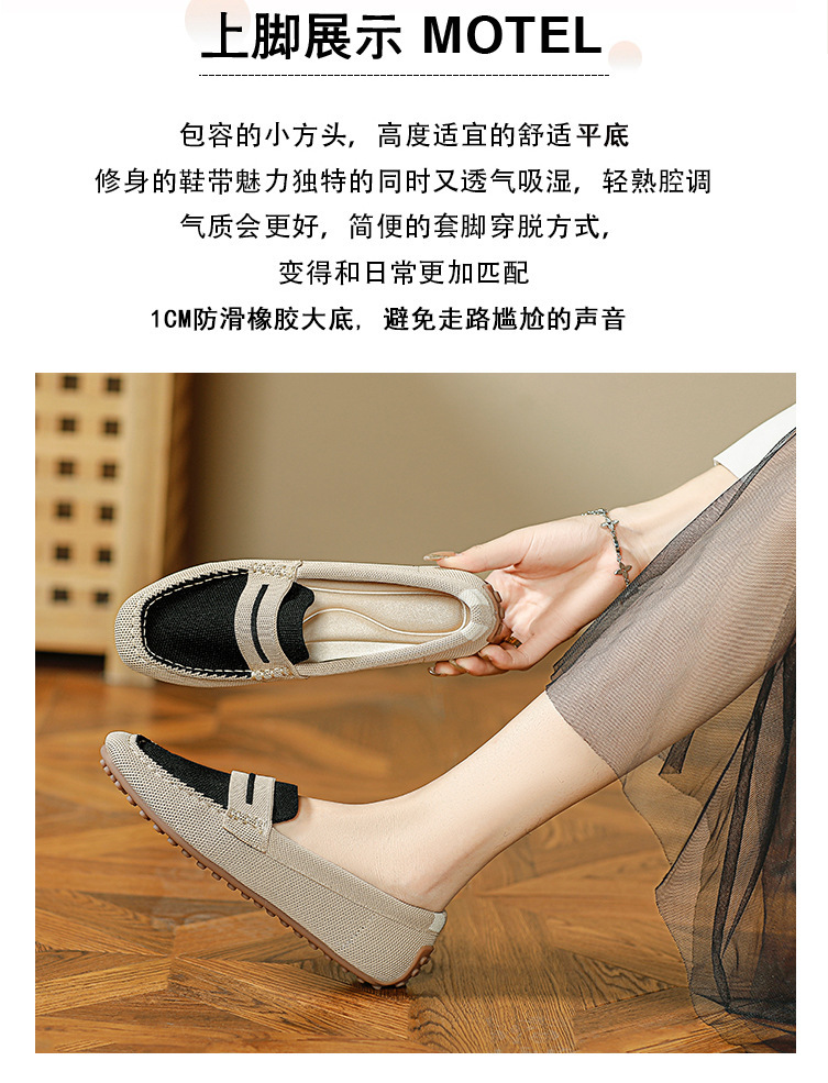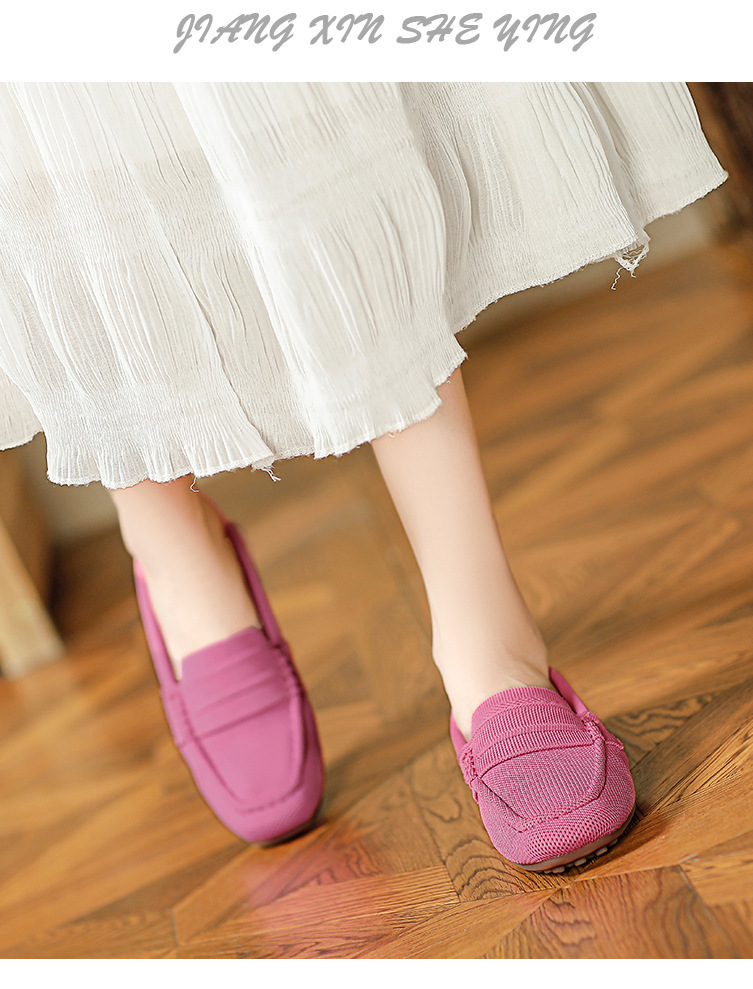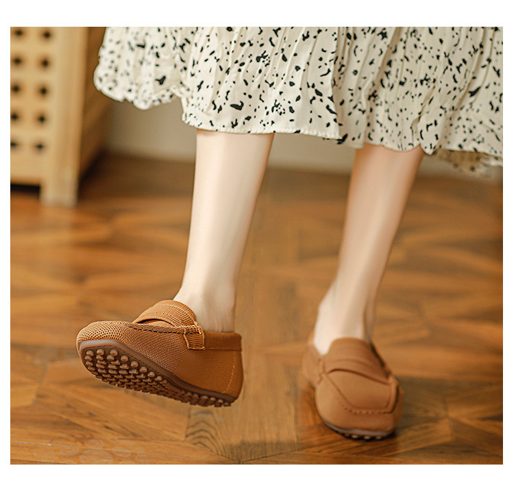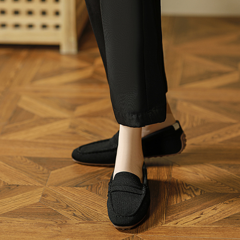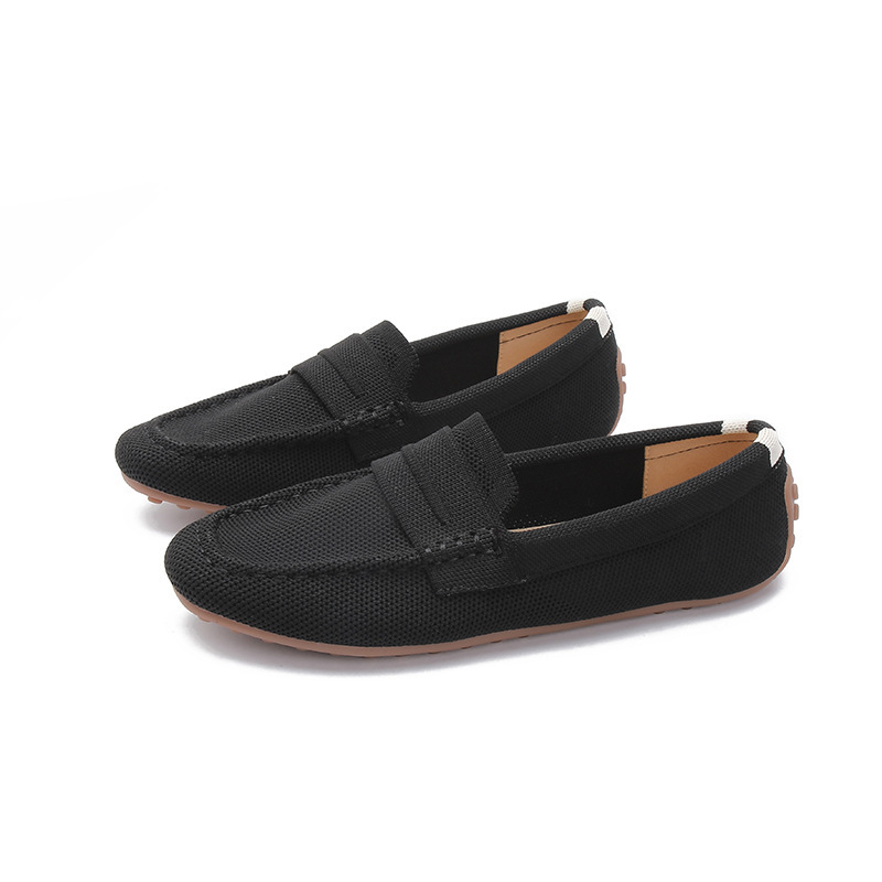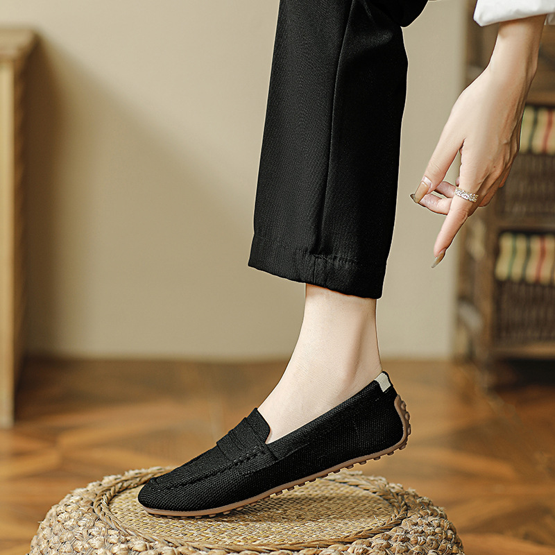 Doudou 신발 여성 2023 여름 신작 로퍼 라운드 투 플라이 니트 게으른 슬립 온 소프트 솔 플랫 슈즈