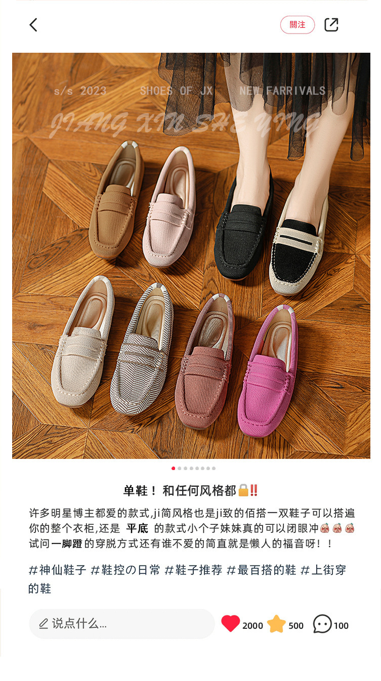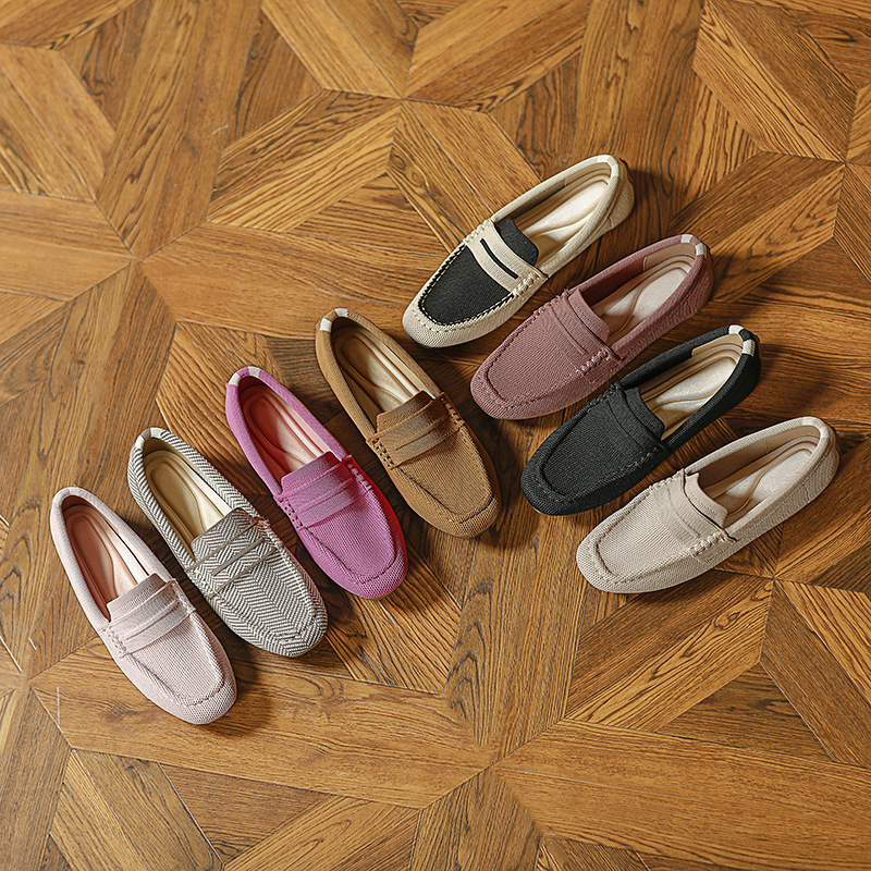 Doudou 신발 여성 2023 여름 신작 로퍼 라운드 투 플라이 니트 게으른 슬립 온 소프트 솔 플랫 슈즈스토어 가기