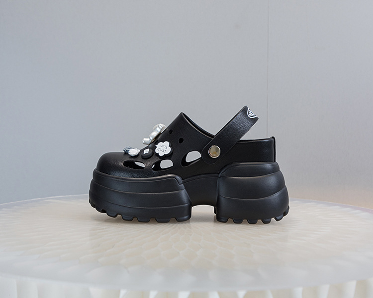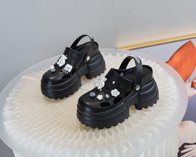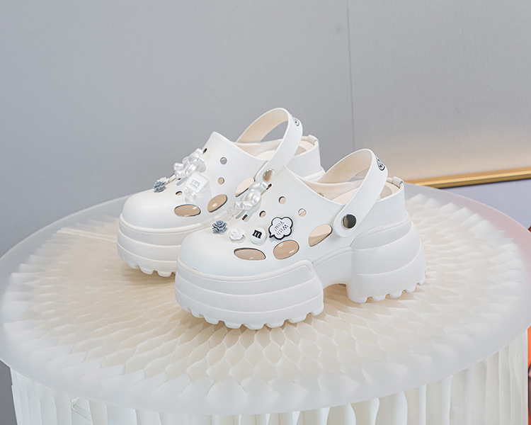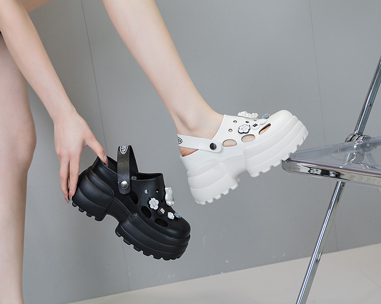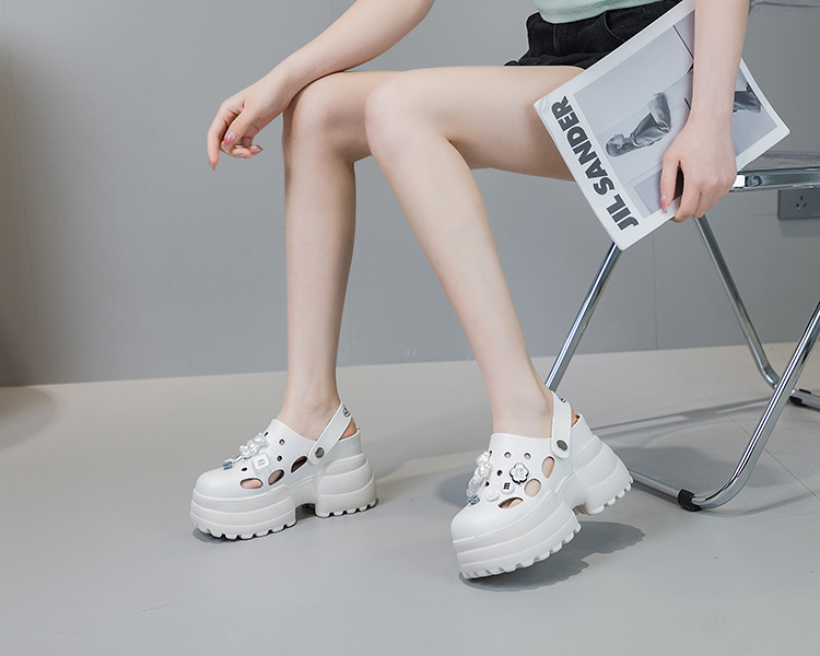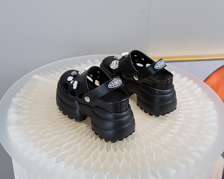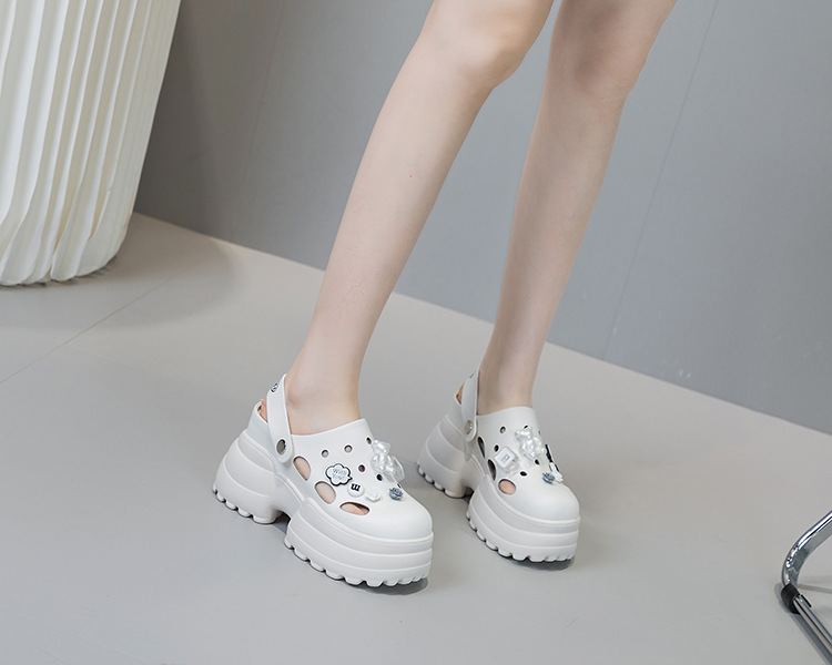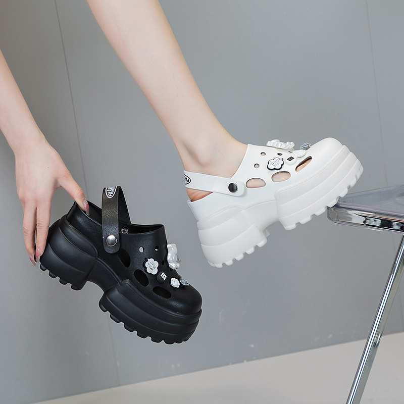 여성용 하이힐 8cm를 위한 천연 가죽 발가락 구멍이 있는 하프 슬리퍼 새로운 2025 여름 두꺼운 밑창 플랫폼 비치 샌들 및 슬리퍼 다용도스토어 가기