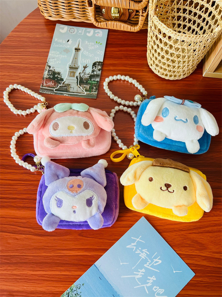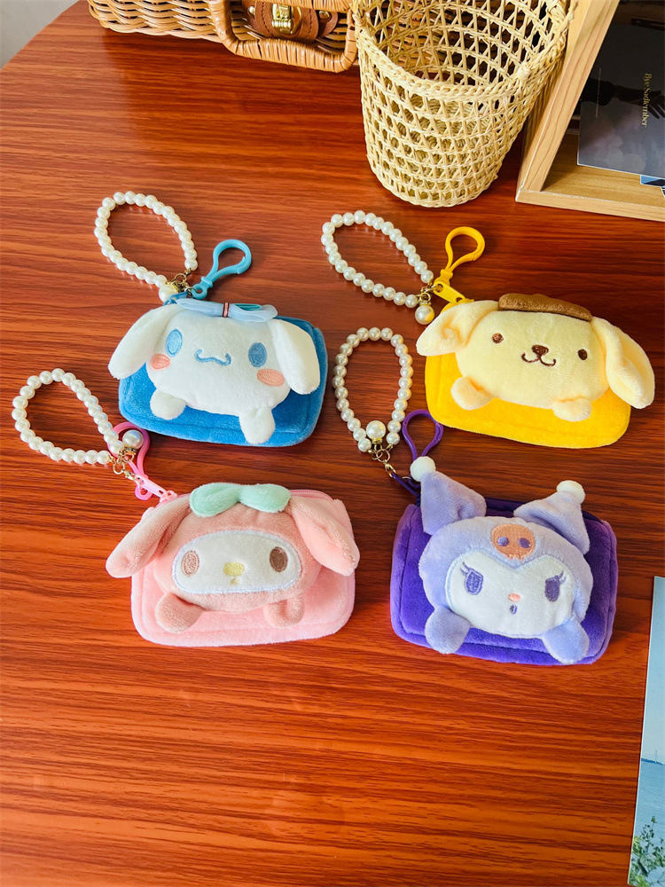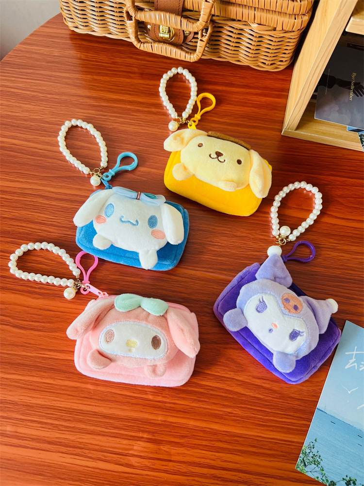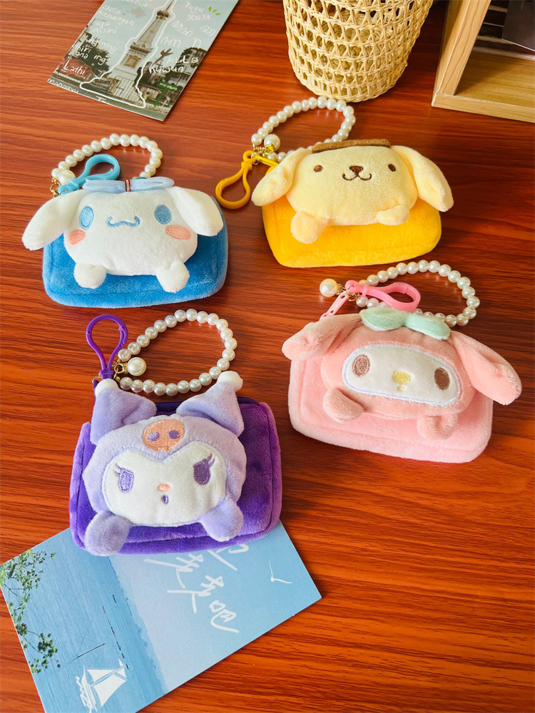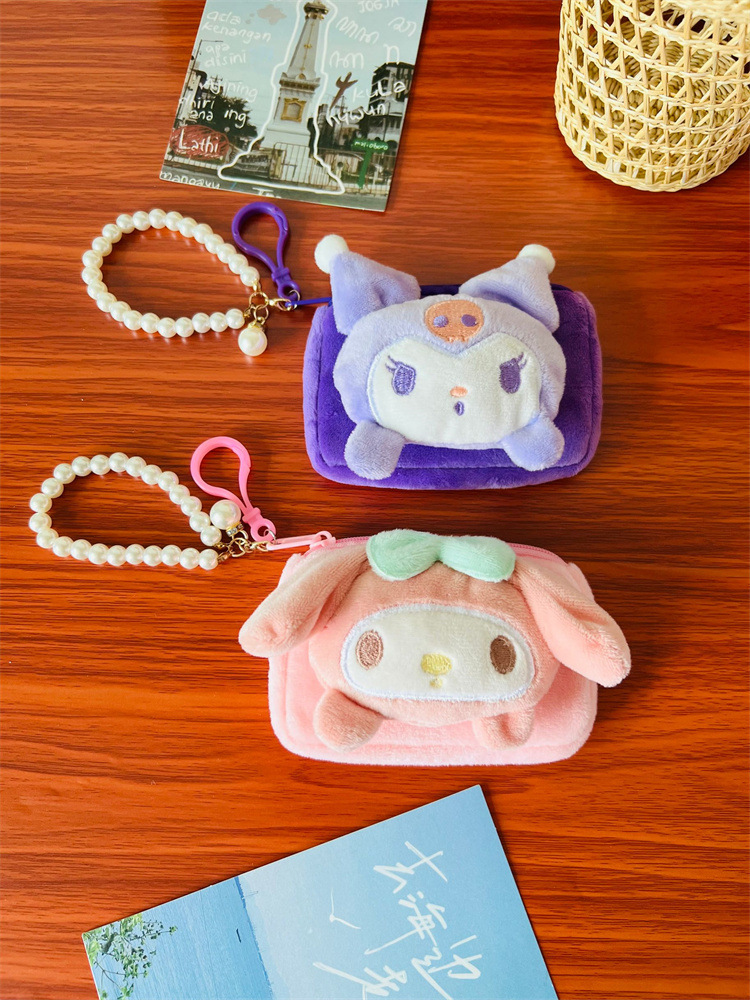 만화 산리오 멜로디 쿠로미 플러시 동전 지갑 휴대용 카드 홀더 미니 가방 귀여운 디자인스토어 가기