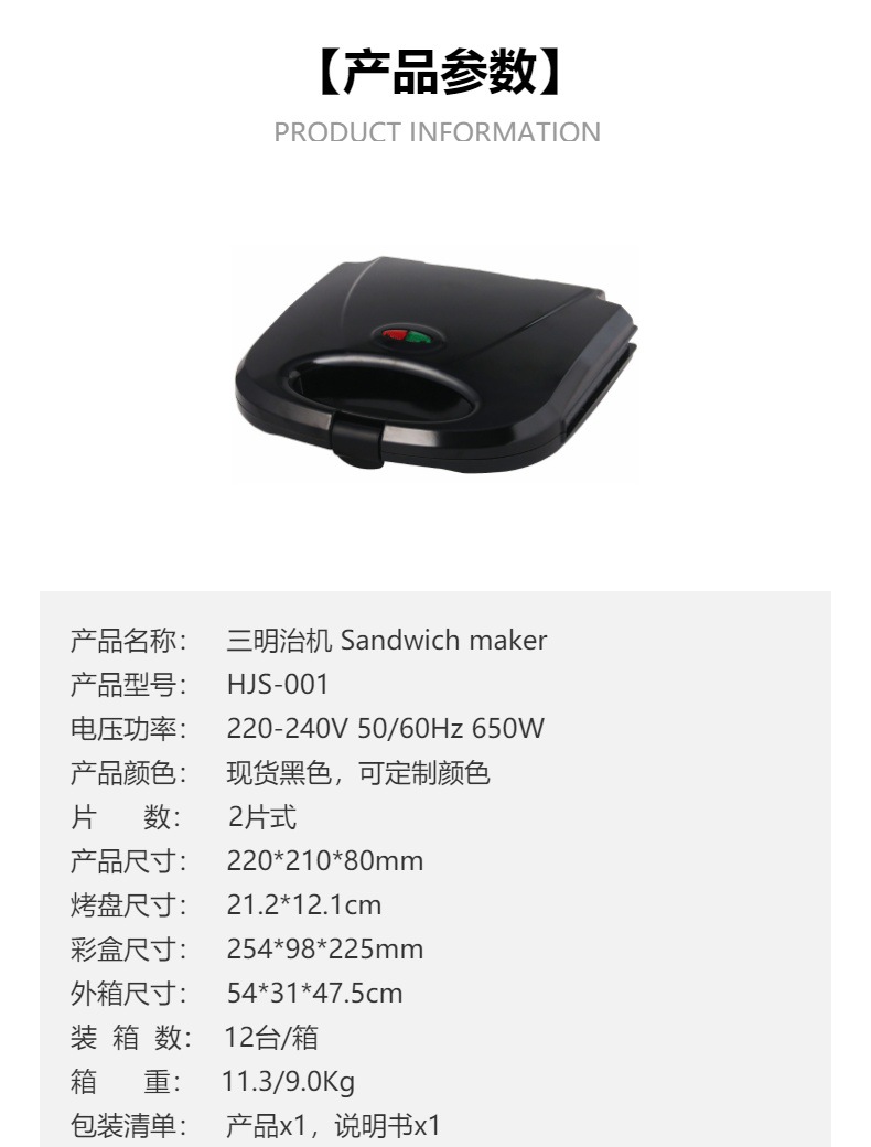 크로스 보더 샌드위치 토스터 110V/220V 재고 홈 미니 아침 식사 토스터