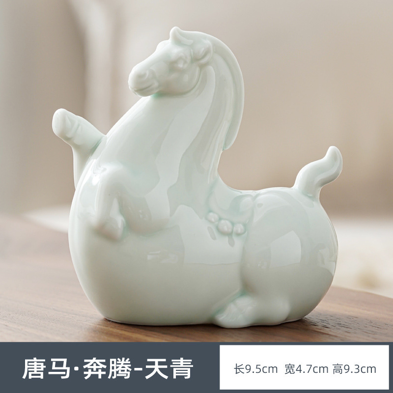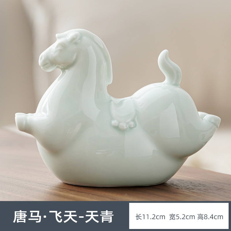 세라믹 작은 당나라 말 장식품 차 애완 동물 차 놀이 작은 장식품 거실 장식 플라잉 조랑말 성격 선물을주는 공예품스토어 가기