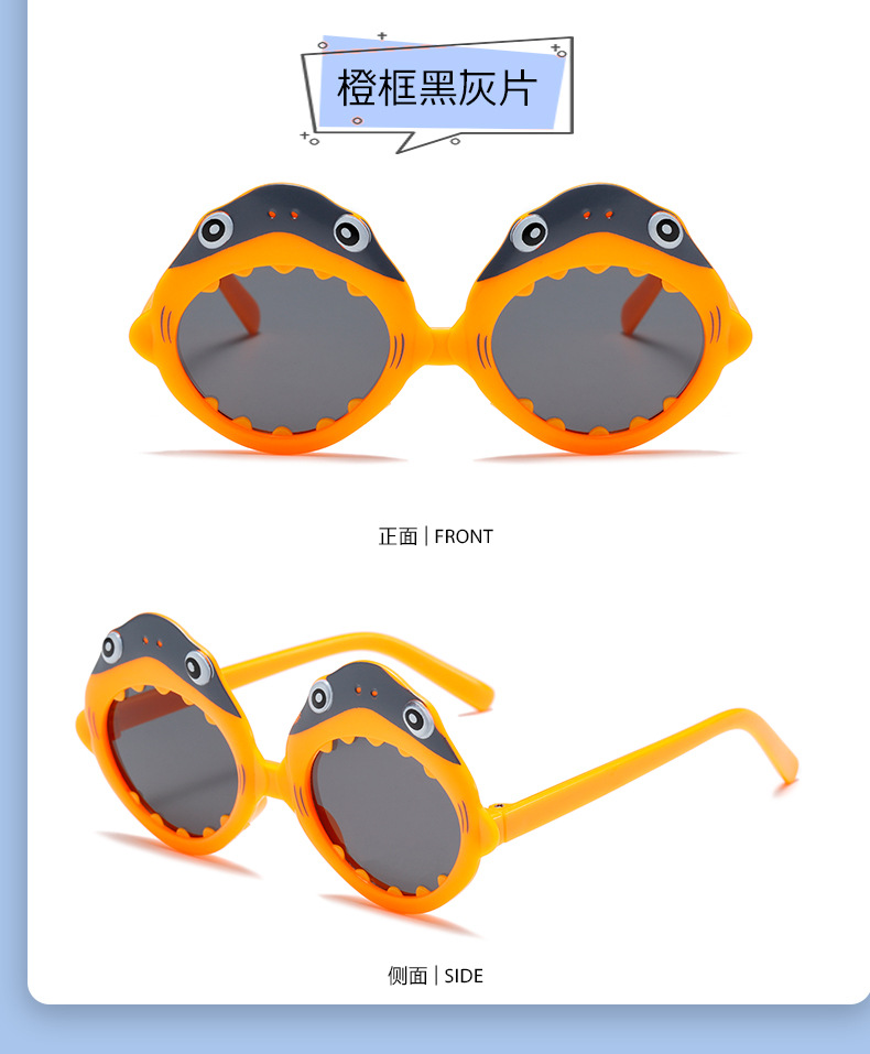 어린이 선글라스, 다채로운 동물 시리즈, 상어, 자외선 차단 선글라스, 남아 및 여아용, 개성 있고 멋진 자외선 차단 도구