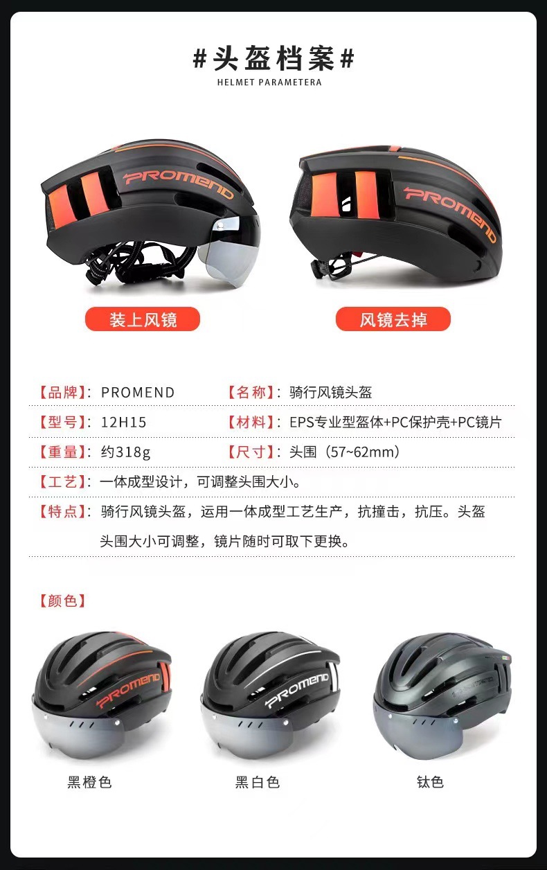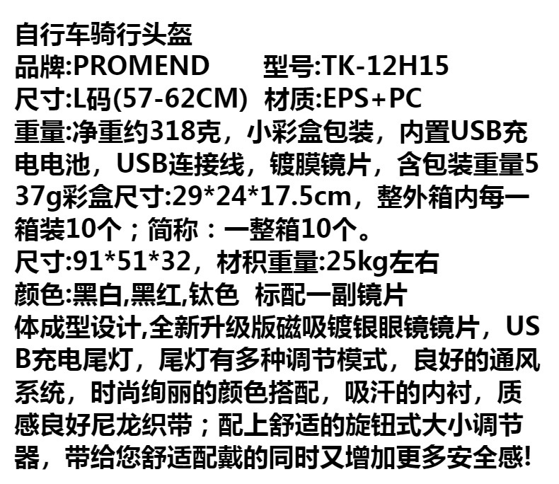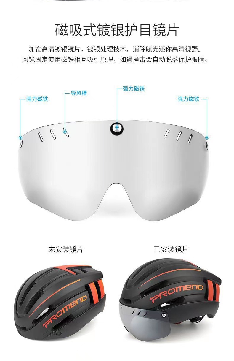 경고등이있는 크리에이티브 PROMEND 마그네틱 고글 헬멧 12H15USB 충전식 산악 자전거 타기 복장