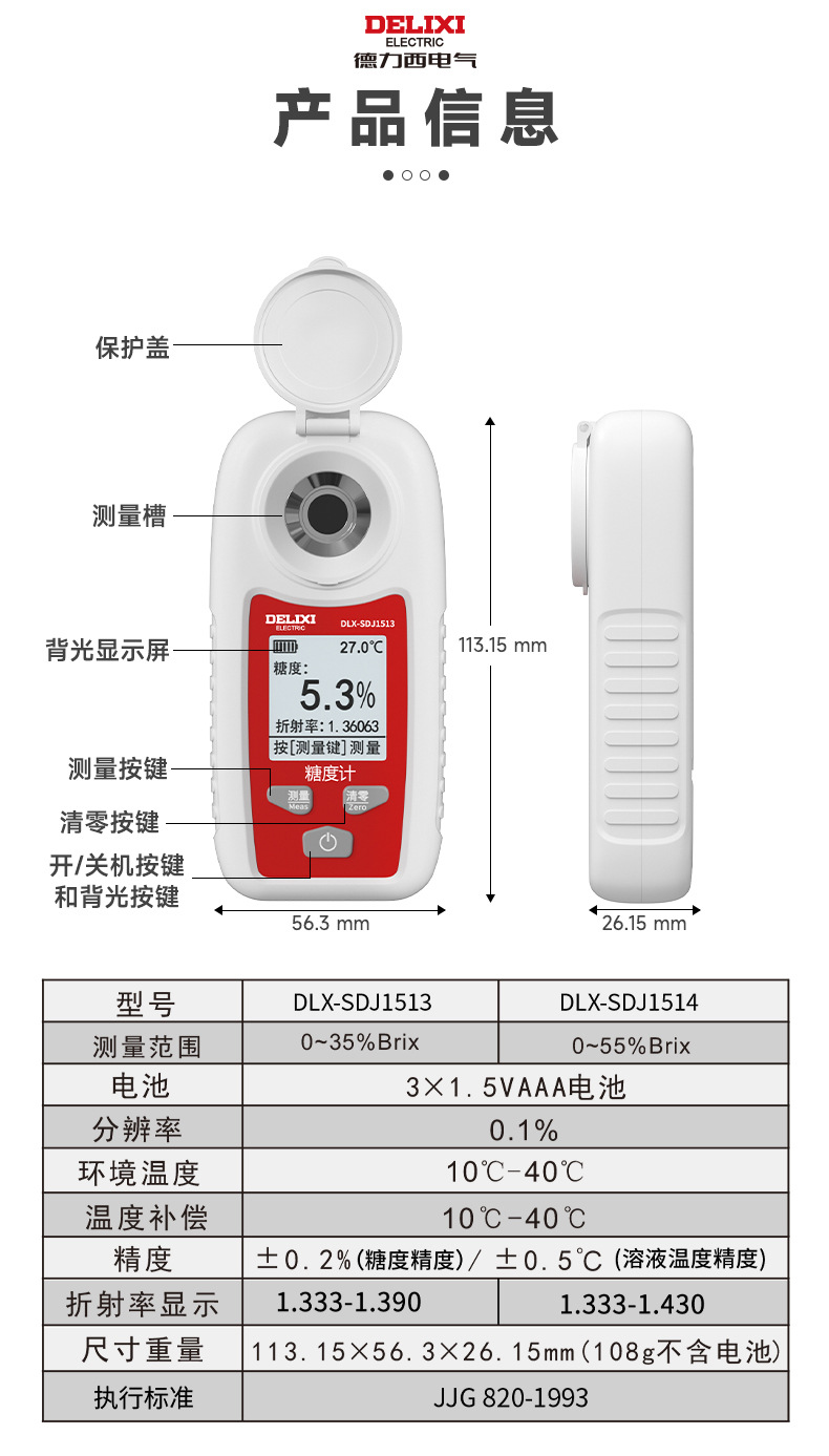 Delixi 설탕 측정기 과일 특수 단맛 탐지기 휴대용 설탕 농도 측정기 높은 정밀도 설탕 측정기