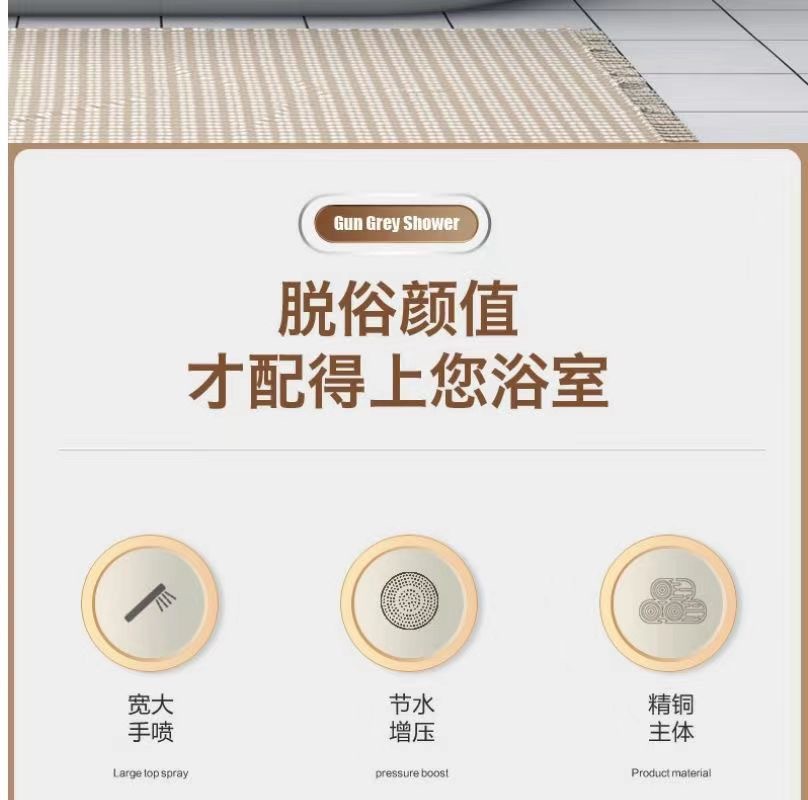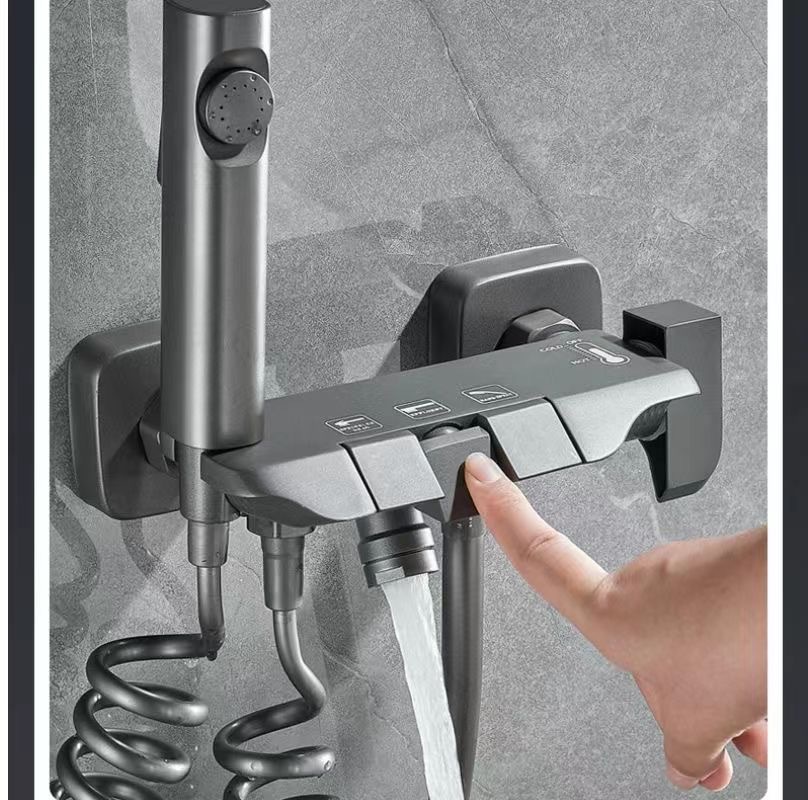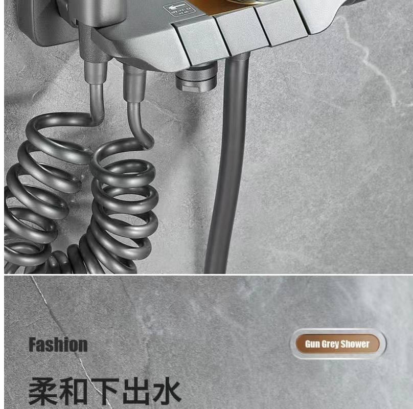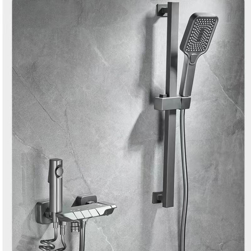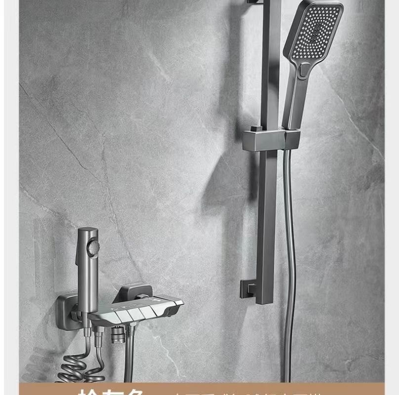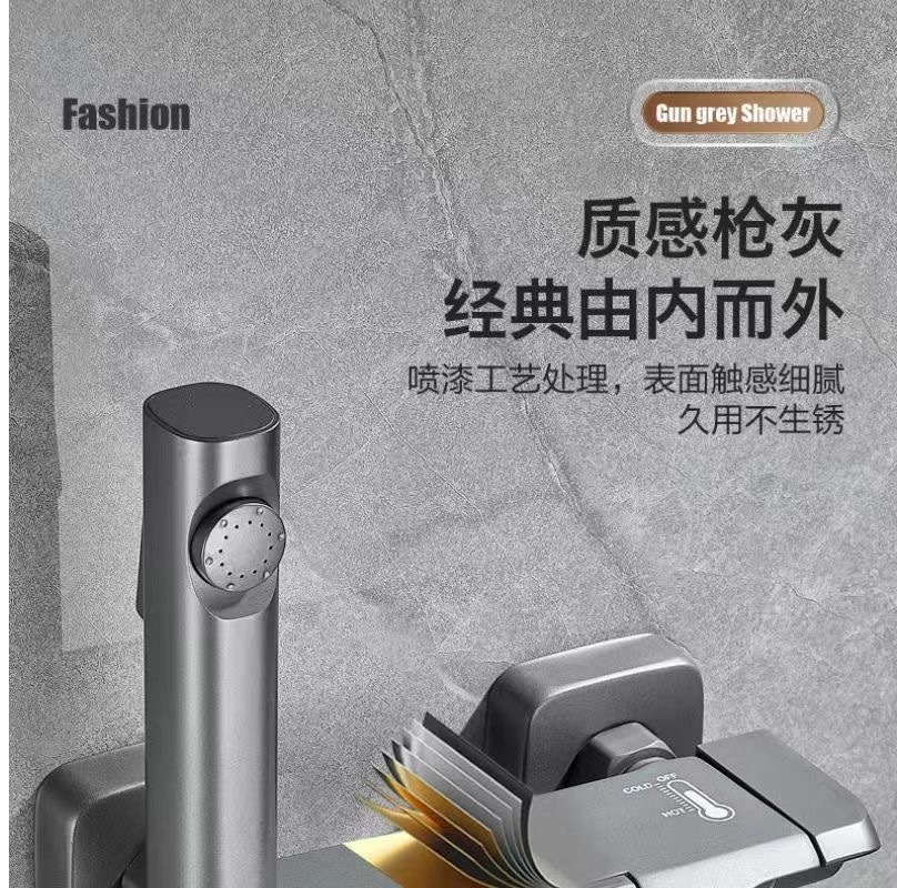 건 그레이 샤워 세트 미니멀리스트 모든 구리 디지털 디스플레이 간단한 욕실 샤워 모든 구리 가정용 샤워스토어 가기