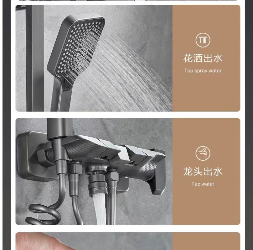 건 그레이 샤워 세트 미니멀리스트 모든 구리 디지털 디스플레이 간단한 욕실 샤워 모든 구리 가정용 샤워