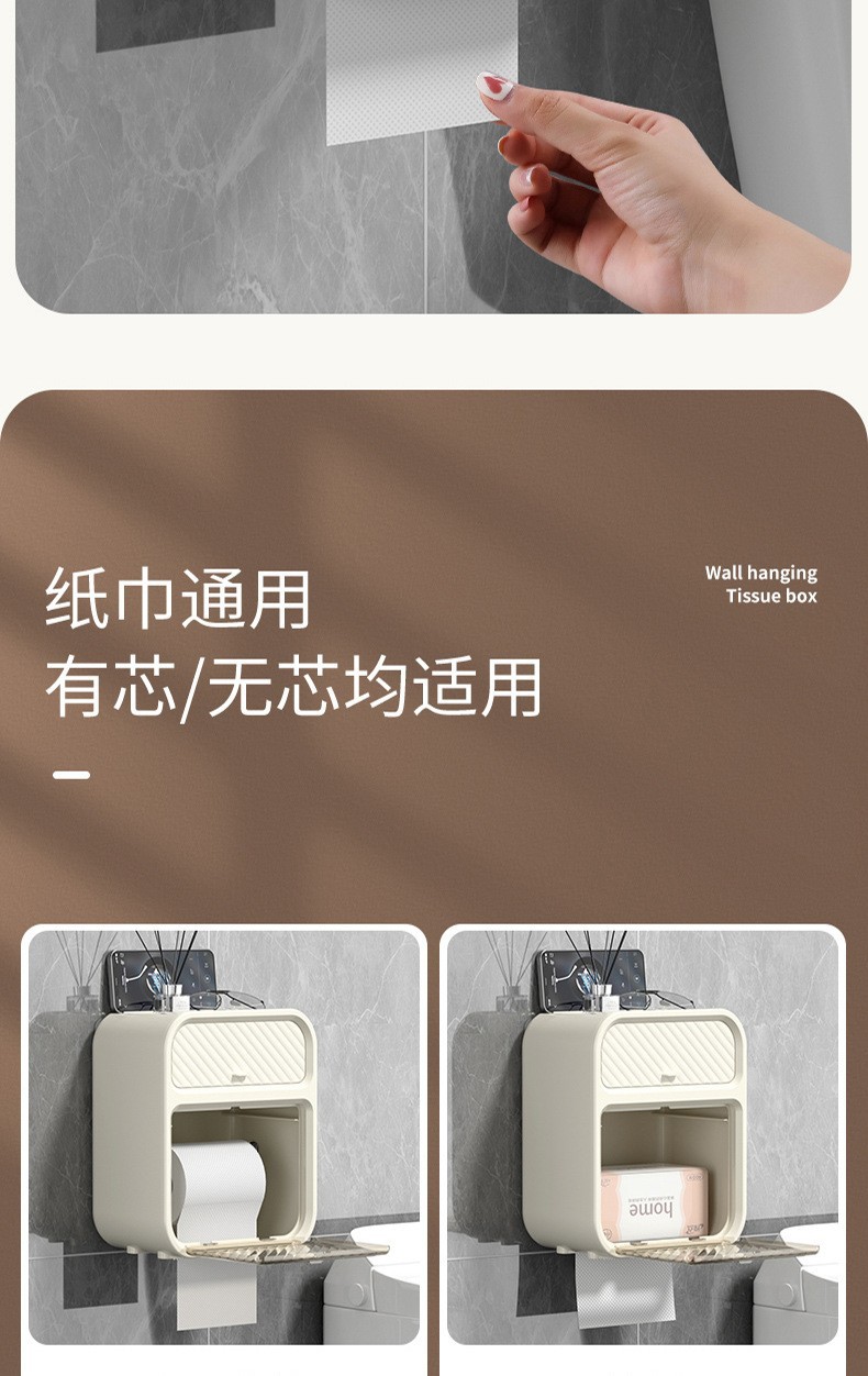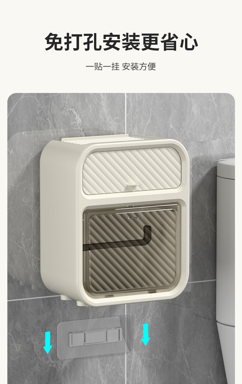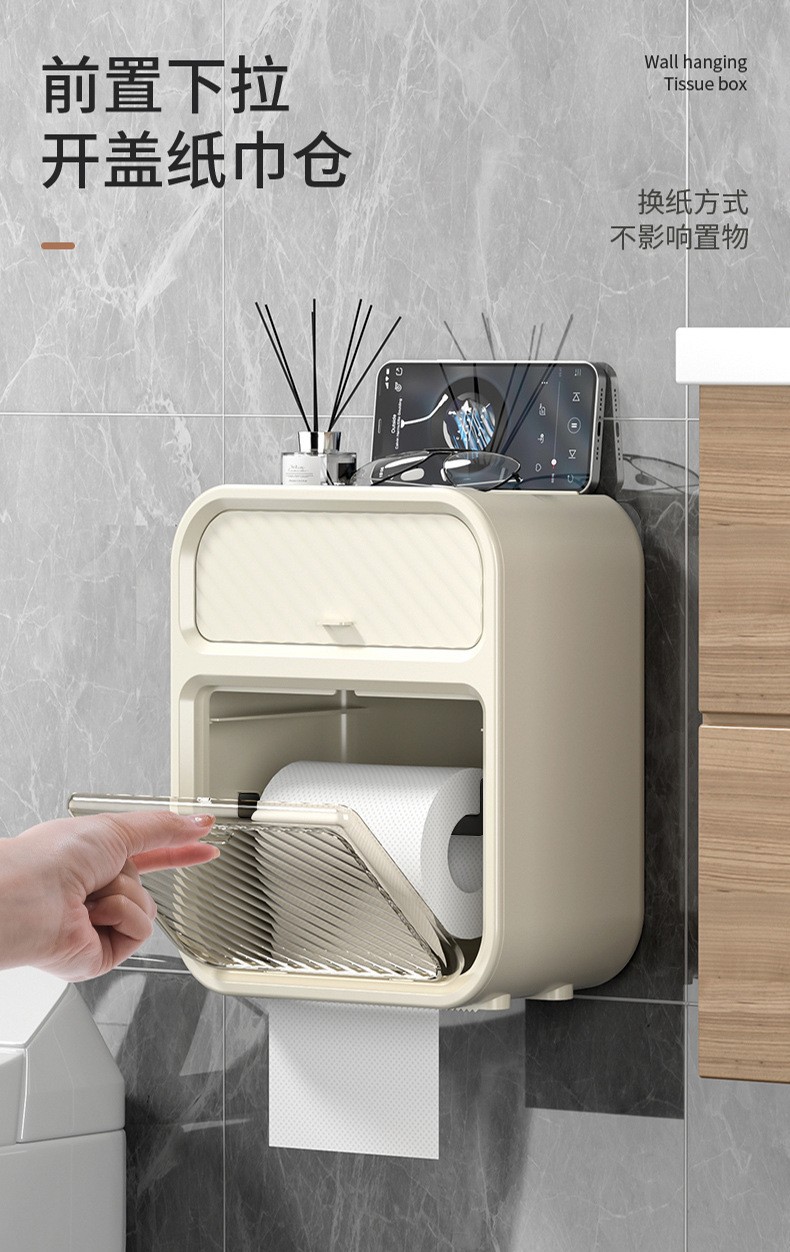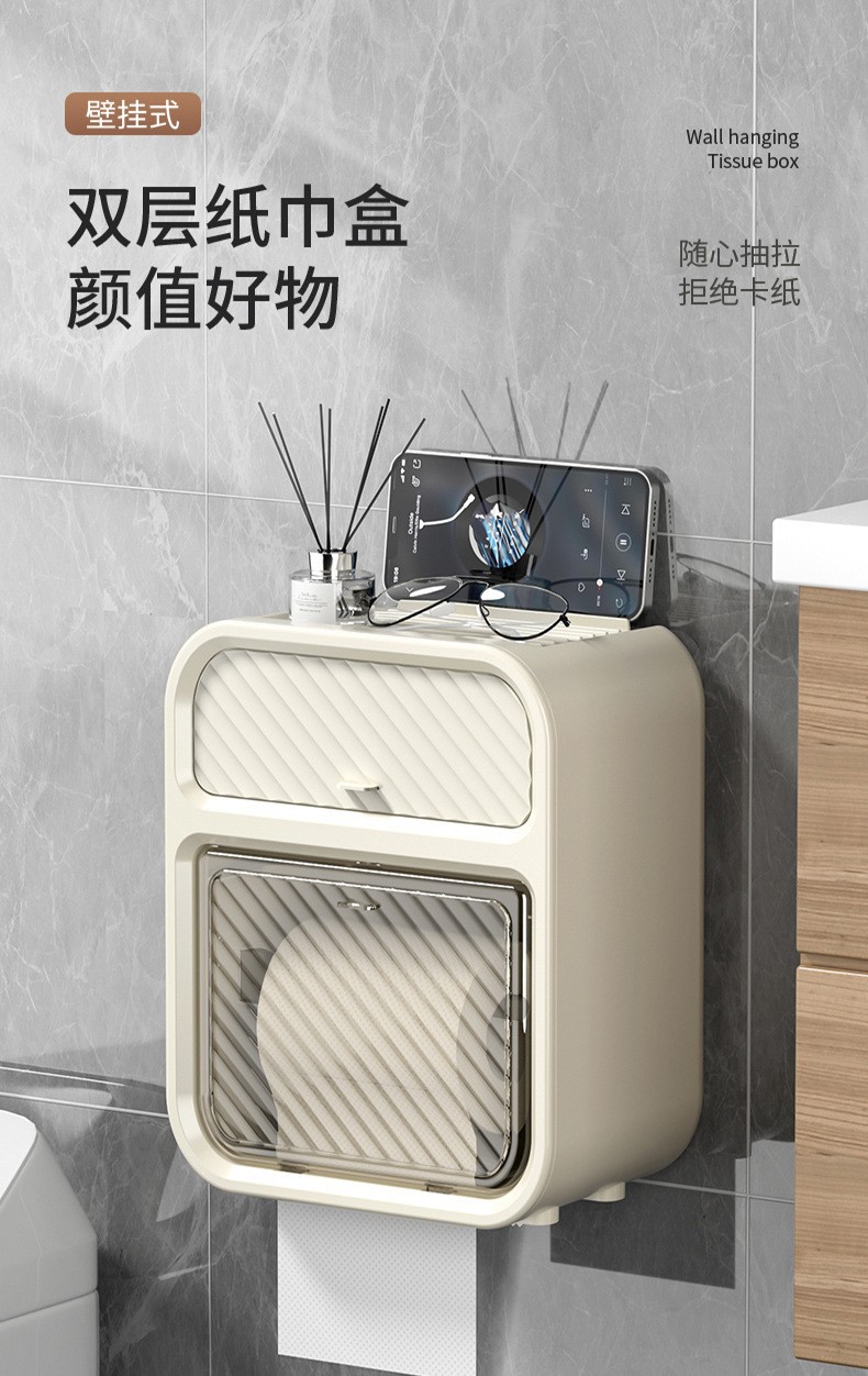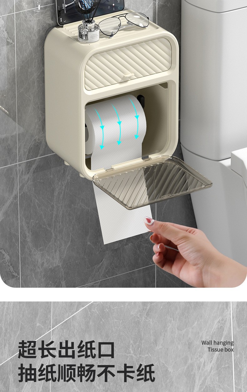 크림 스타일 화장실 티슈 박스 라이트 럭셔리 욕실 펀치 프리 더블 레이어 스토리지 랙 벽걸이 형 롤 페이퍼 박스스토어 가기