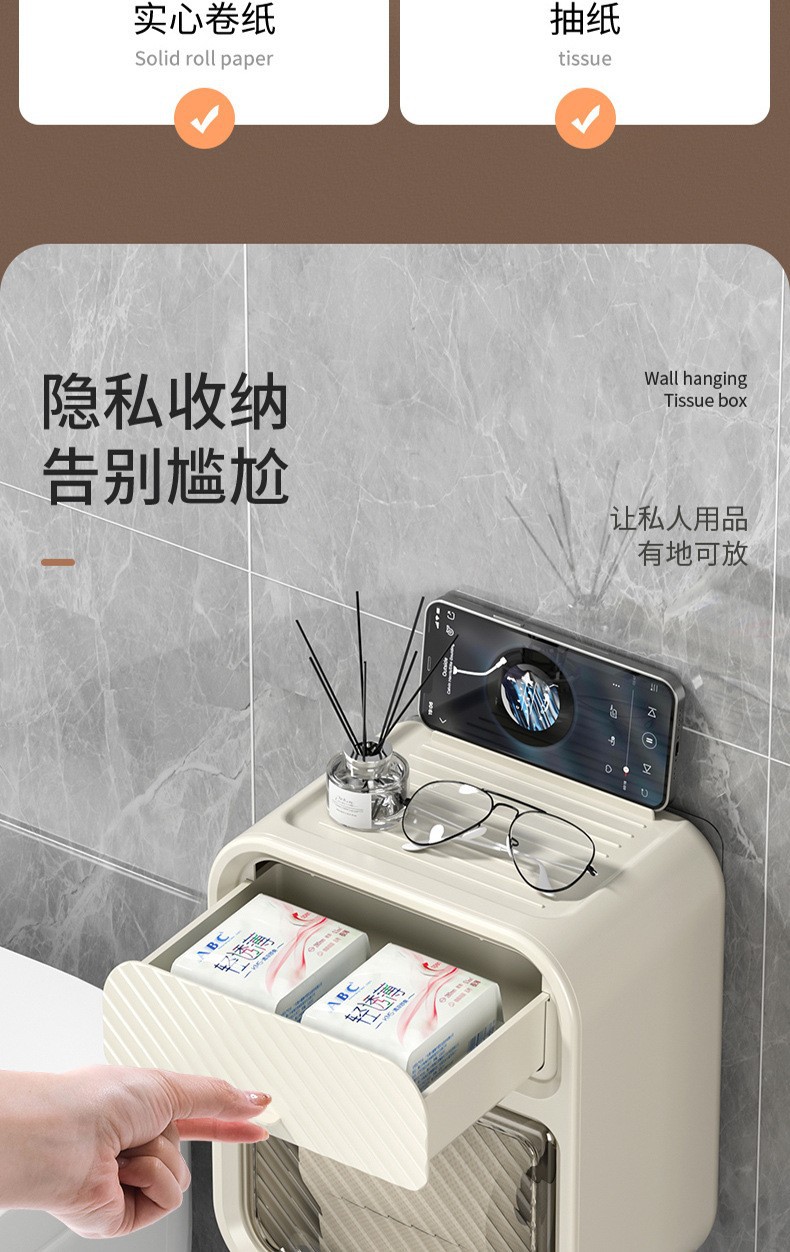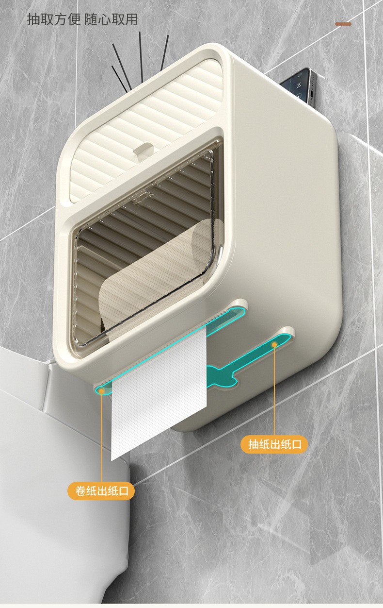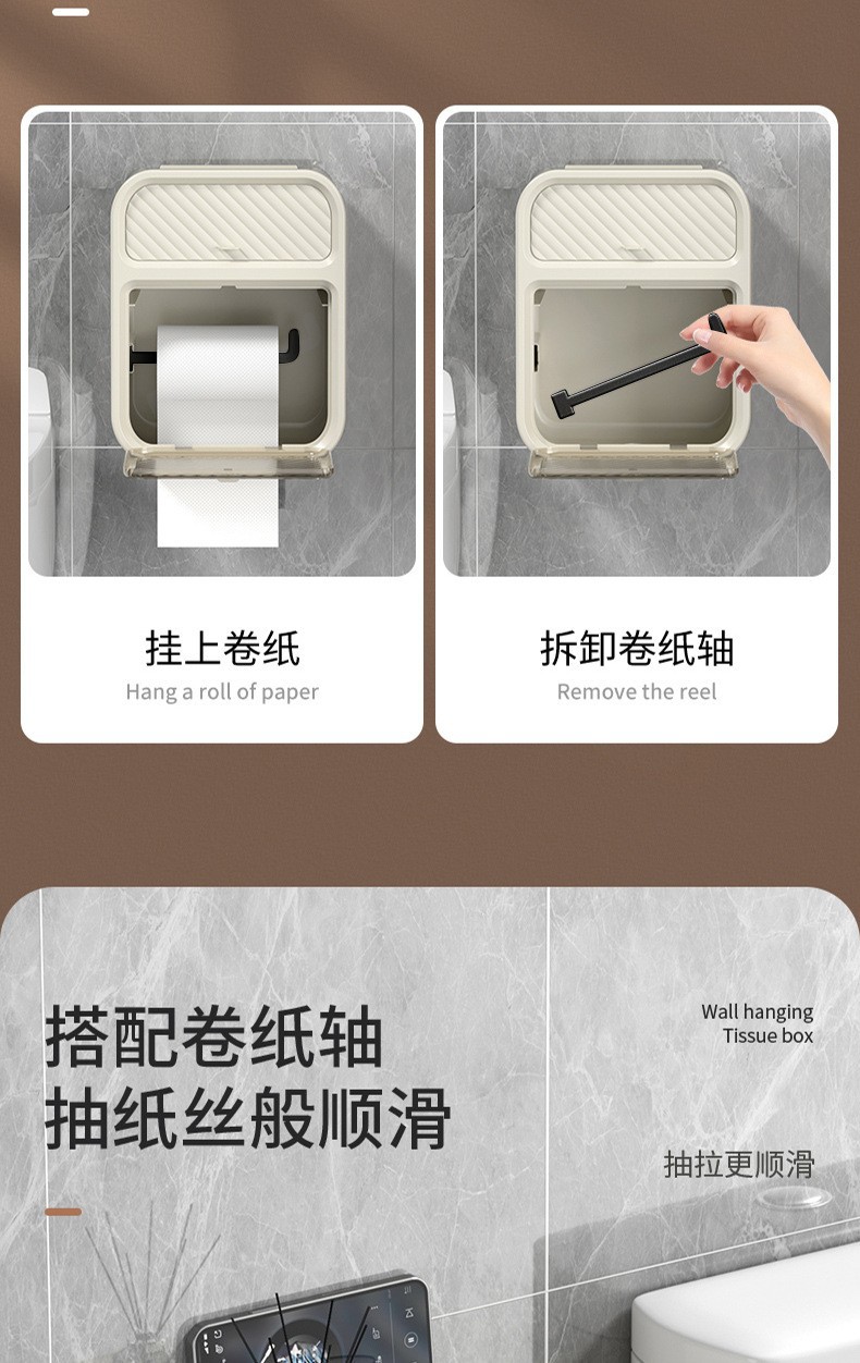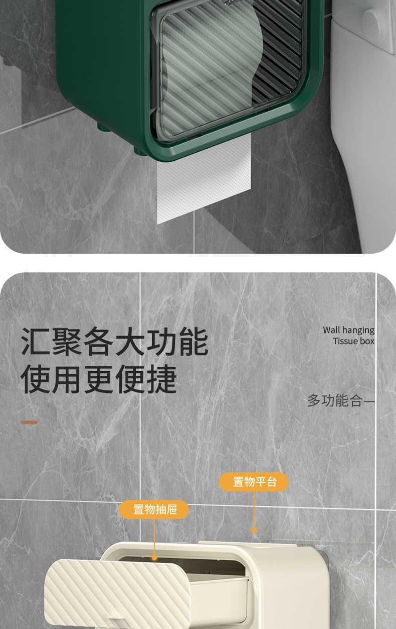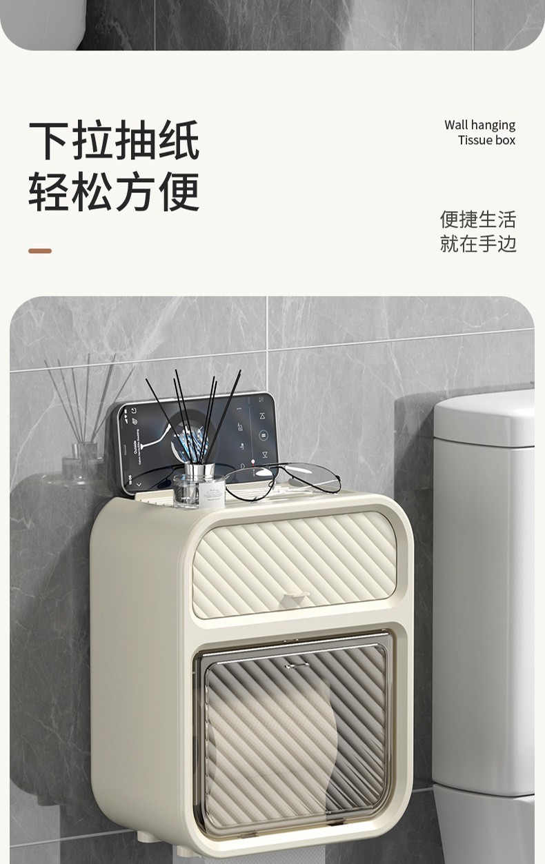 크림 스타일 화장실 티슈 박스 라이트 럭셔리 욕실 펀치 프리 더블 레이어 스토리지 랙 벽걸이 형 롤 페이퍼 박스스토어 가기