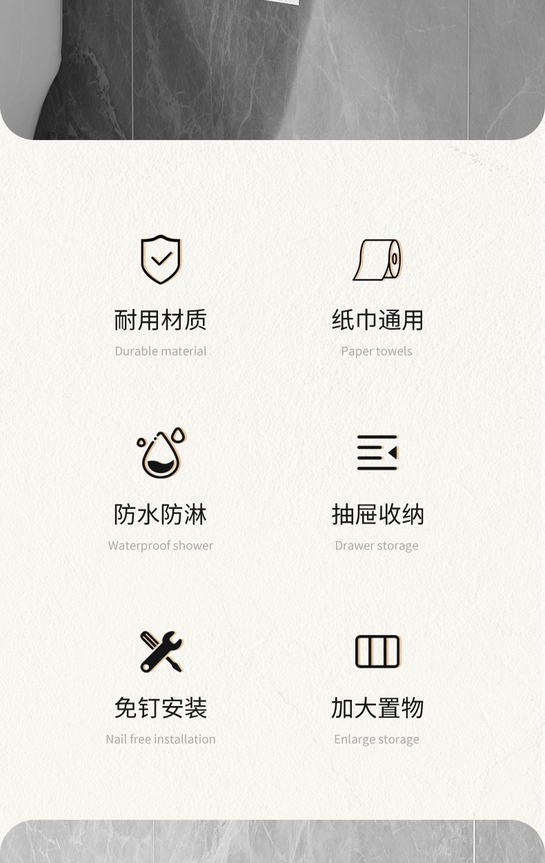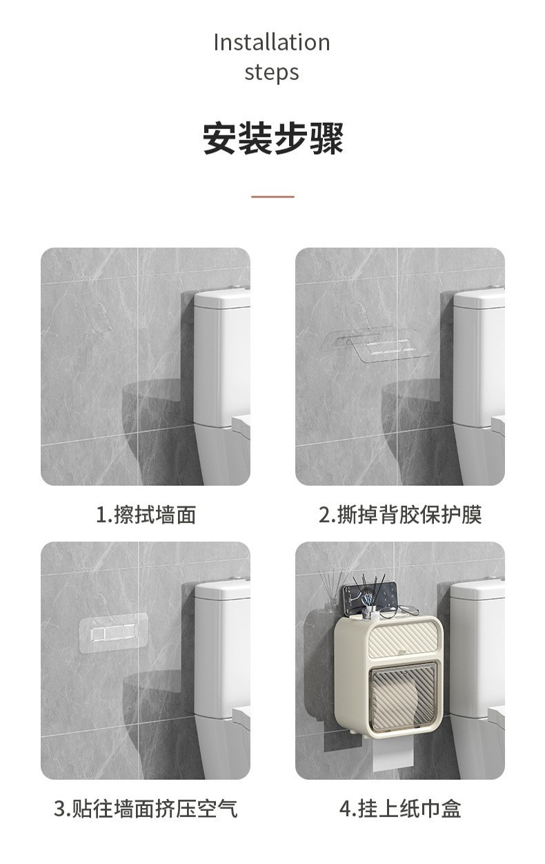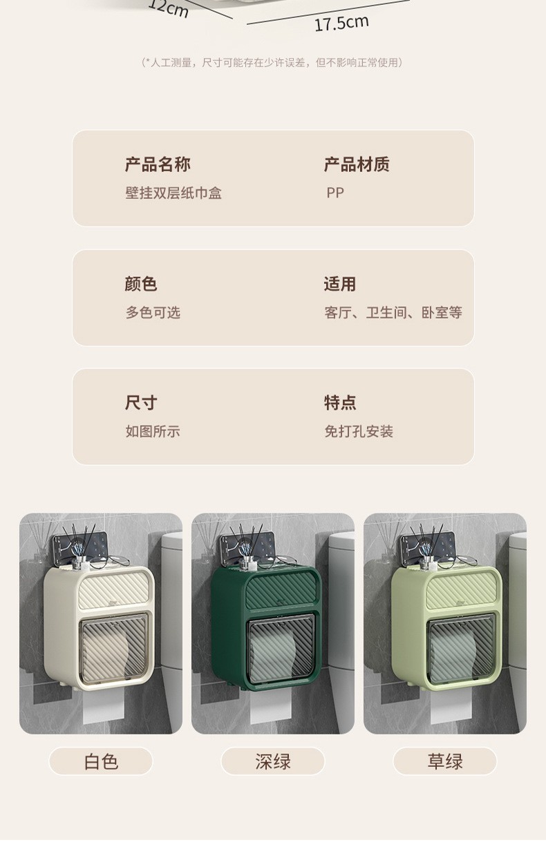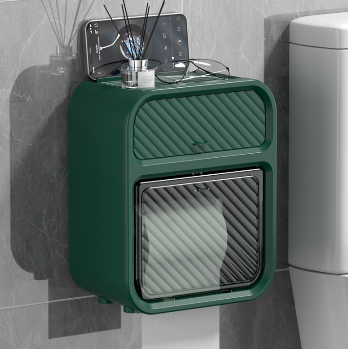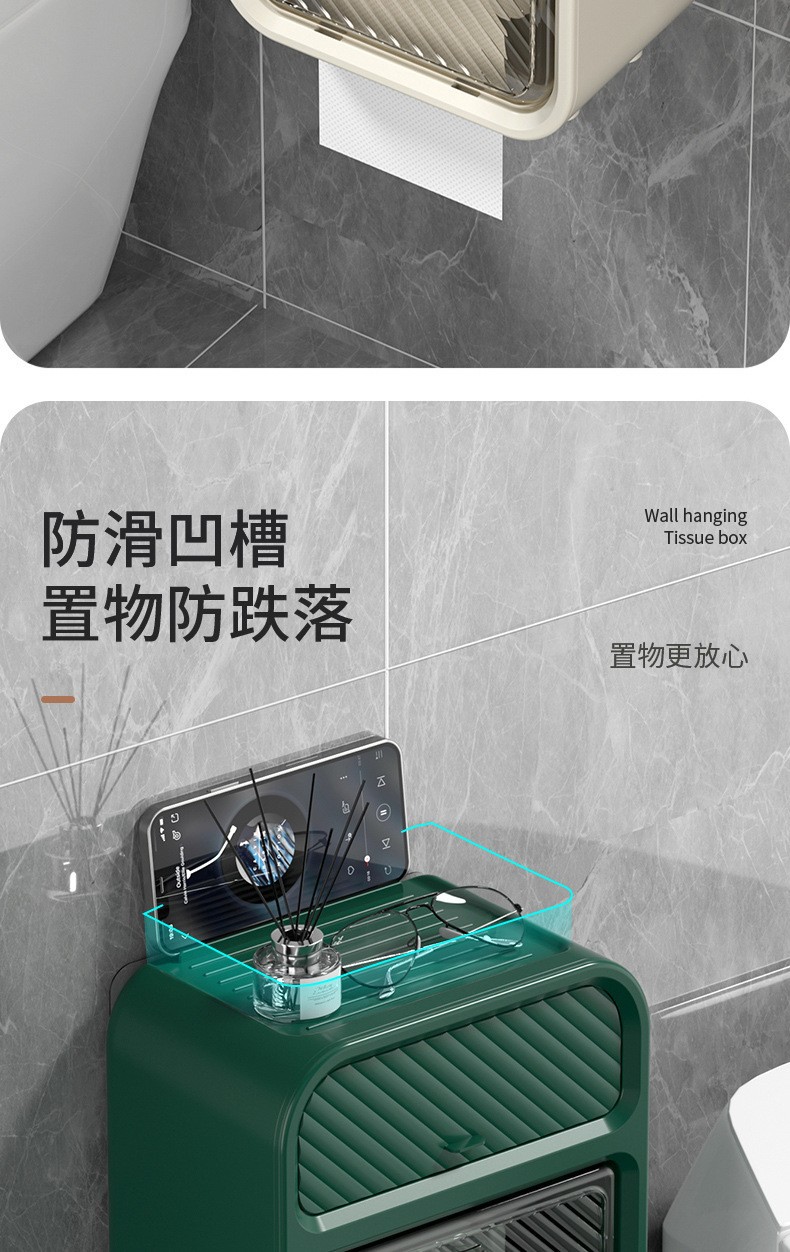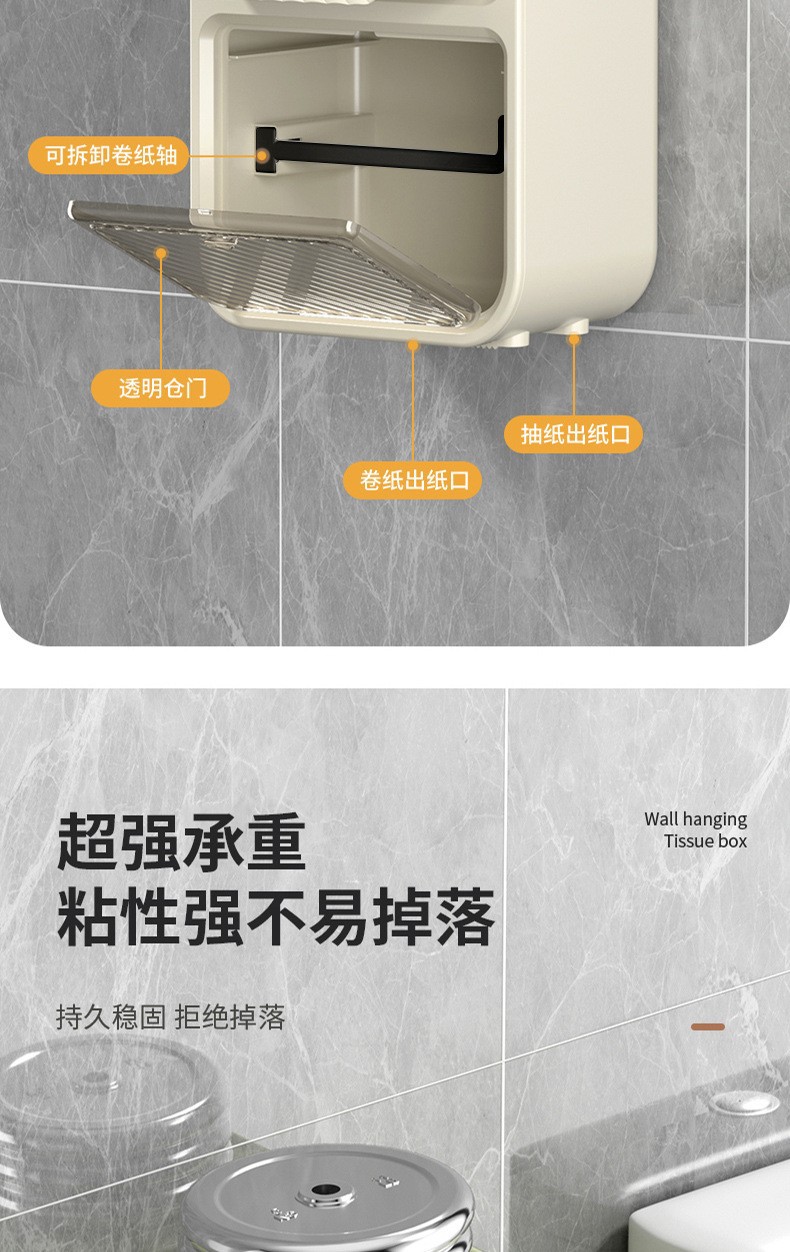 크림 스타일 화장실 티슈 박스 라이트 럭셔리 욕실 펀치 프리 더블 레이어 스토리지 랙 벽걸이 형 롤 페이퍼 박스스토어 가기