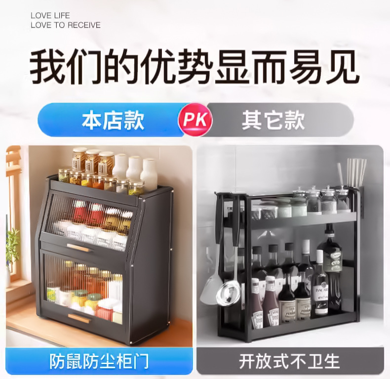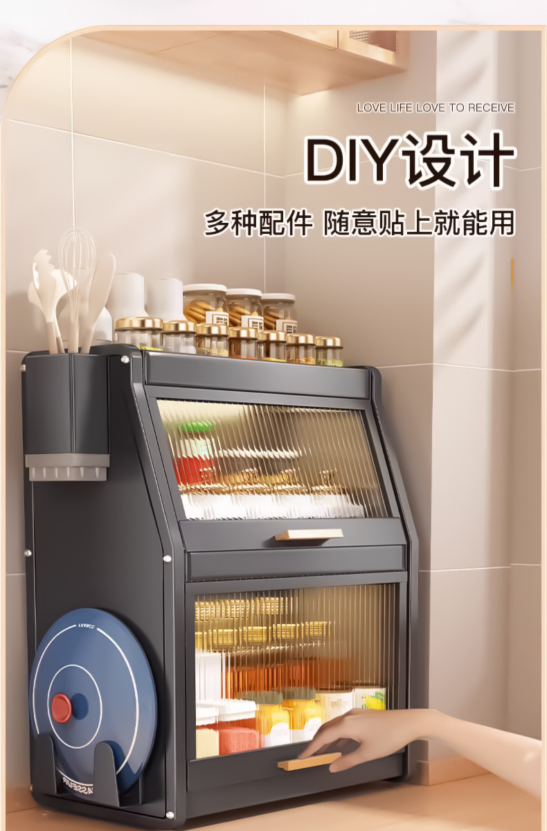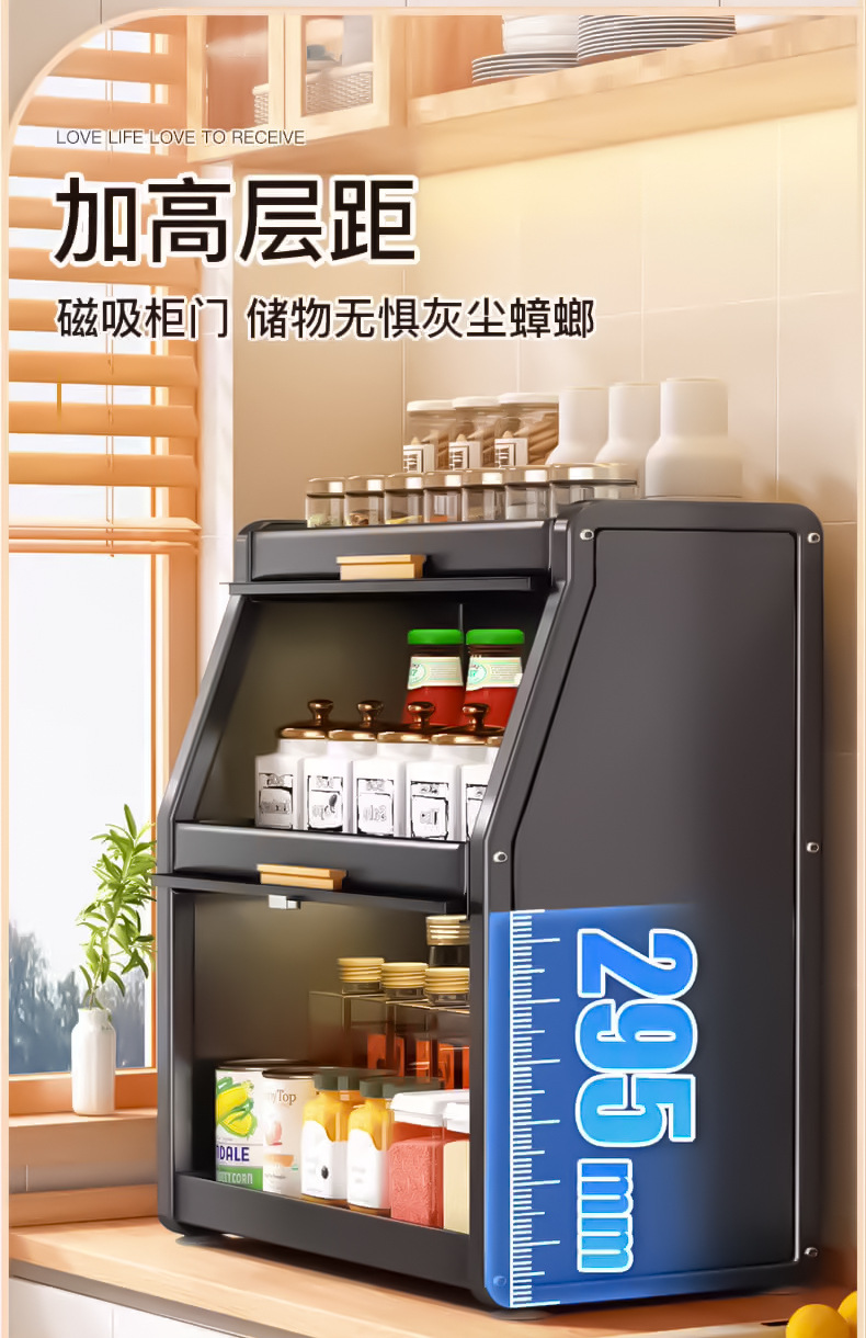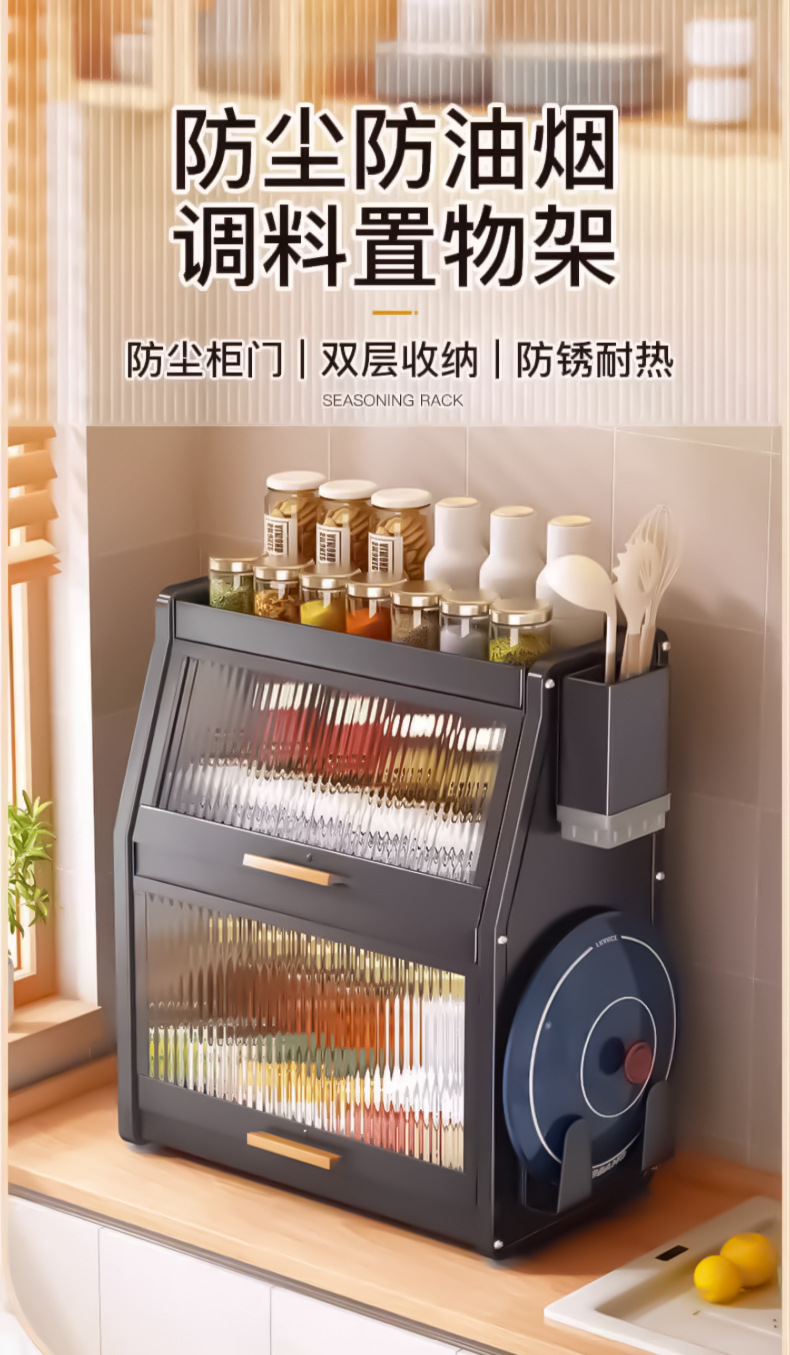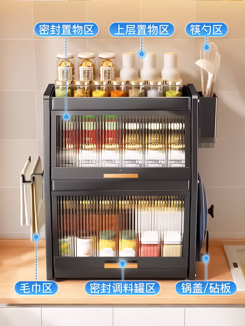 도어 조미료 상자 보관 캐비닛이있는 주방 다기능 오일 소금 소스 식초 보관 용품 방진 조미료 보관 랙