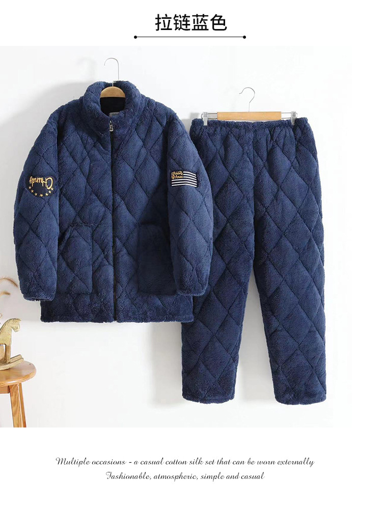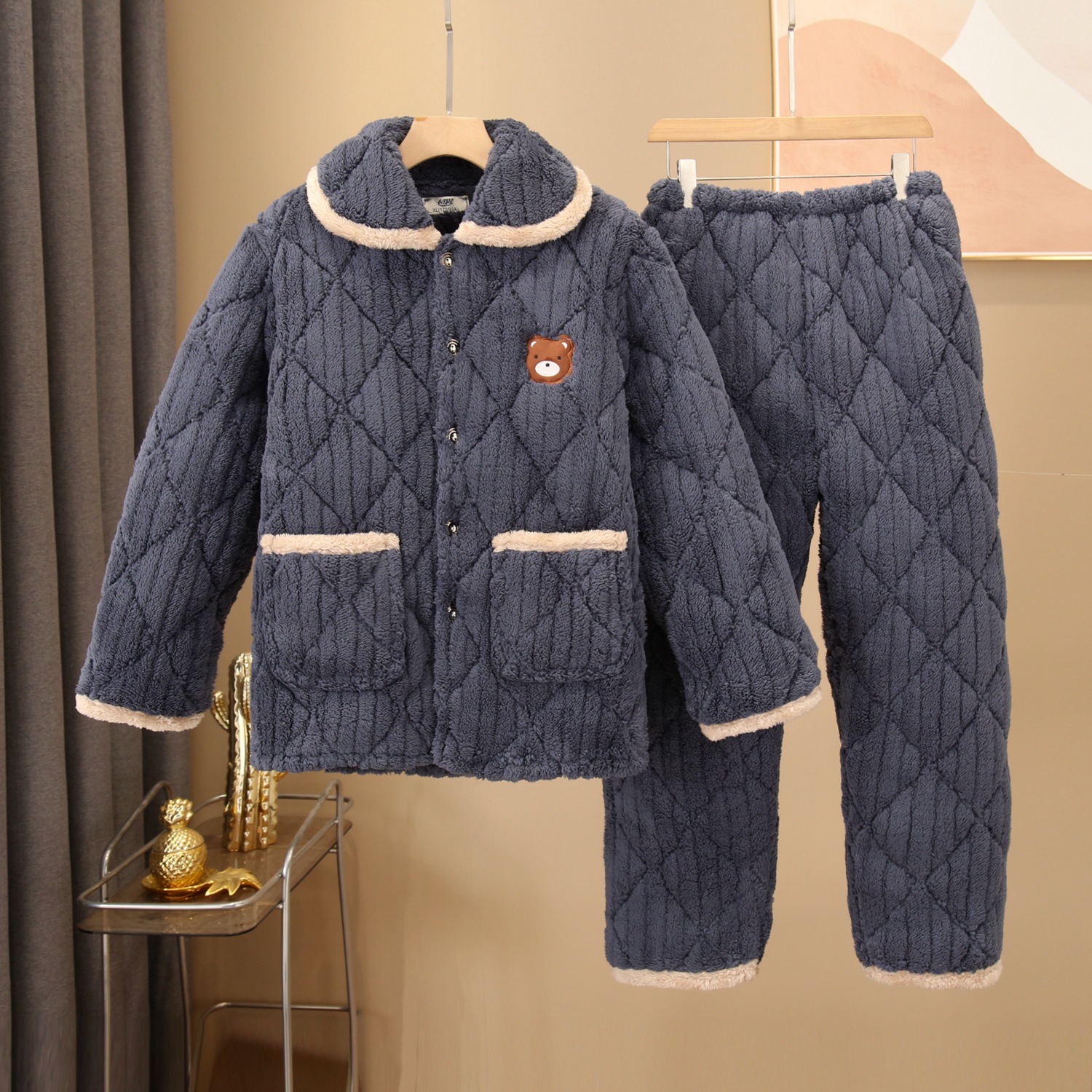 새로운 가을과 겨울 남자의 잠옷 3 층 기모 두꺼운 누비 이불 산호 양털 세트 가정 옷 슈퍼 두꺼운 따뜻한 겉옷
