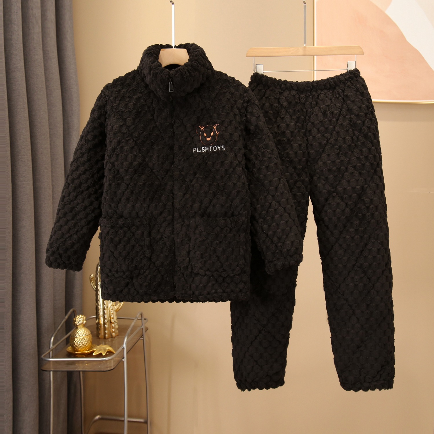 새로운 가을과 겨울 남자의 잠옷 3 층 기모 두꺼운 누비 이불 산호 양털 세트 가정 옷 슈퍼 두꺼운 따뜻한 겉옷스토어 가기