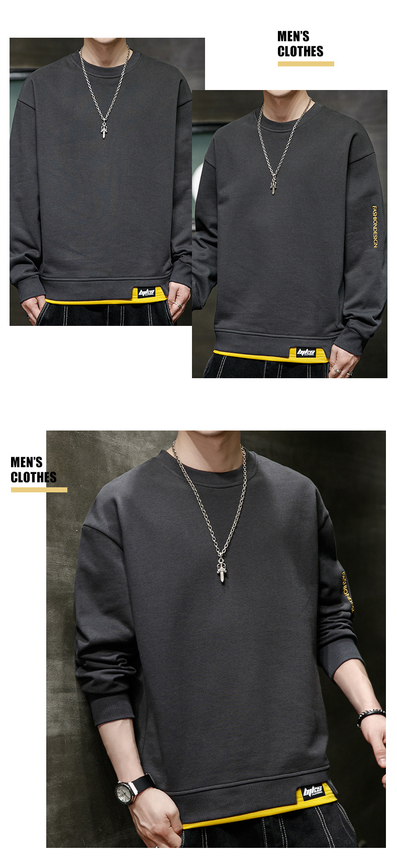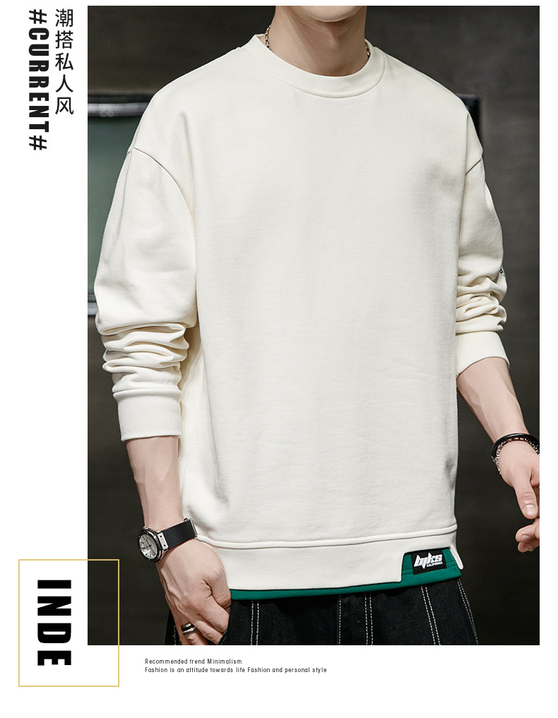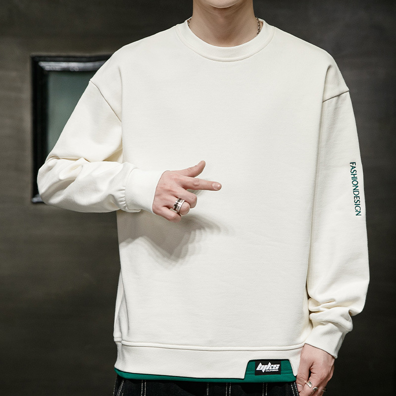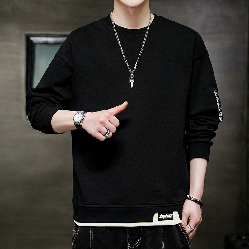 봄 운동복 남자의 느슨한 플러스 사이즈 남자의 유행 지방 플러스 사이즈 캐주얼 긴팔 티셔츠 봄과 가을 탑 옷스토어 가기