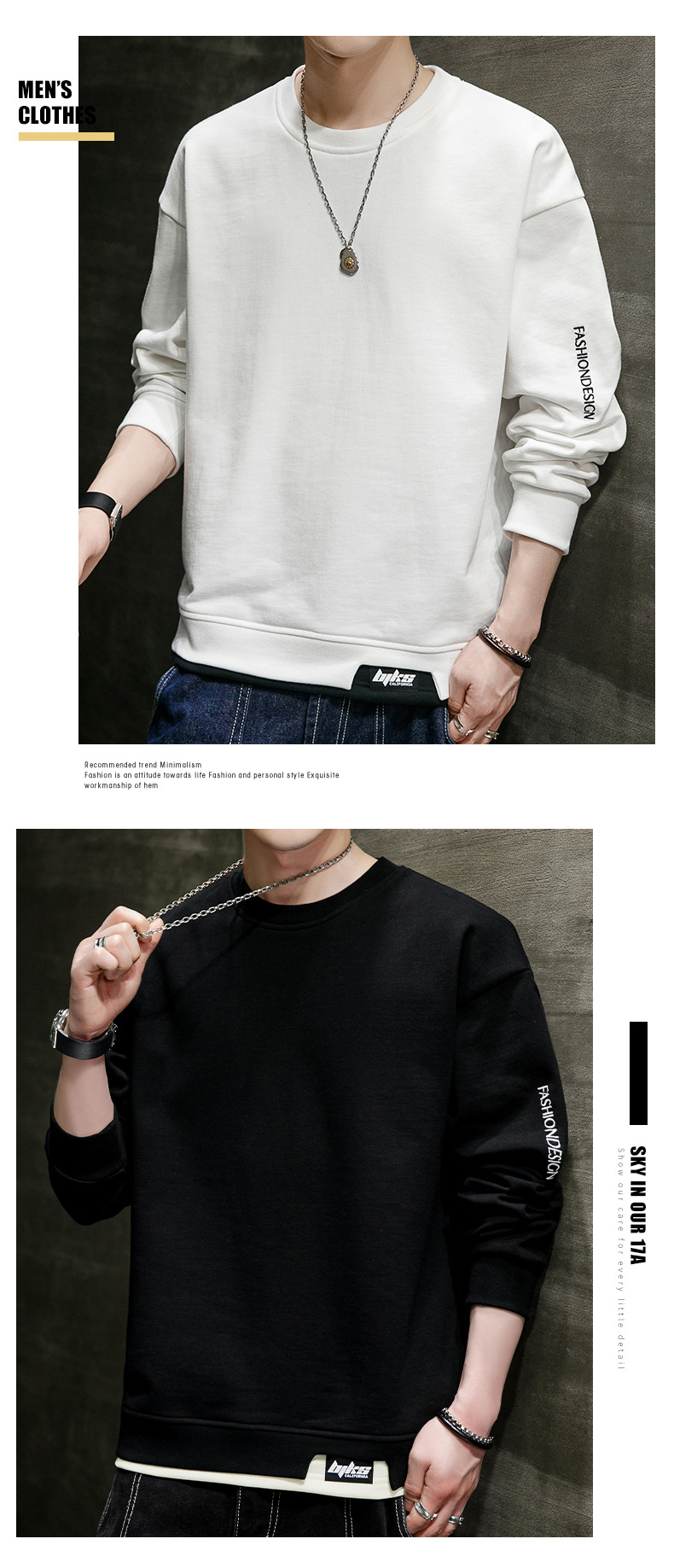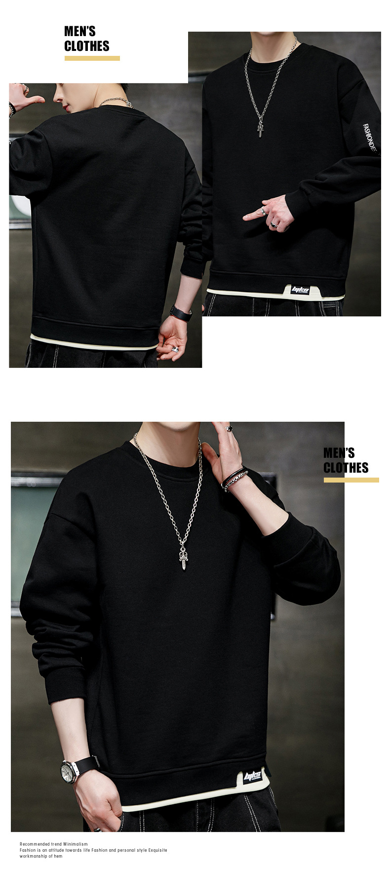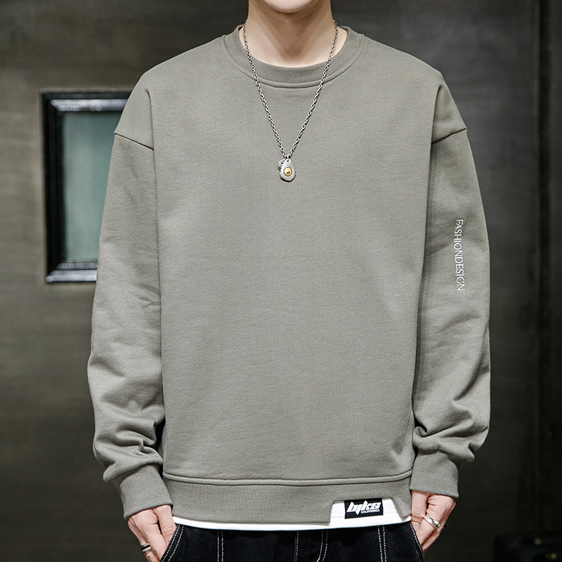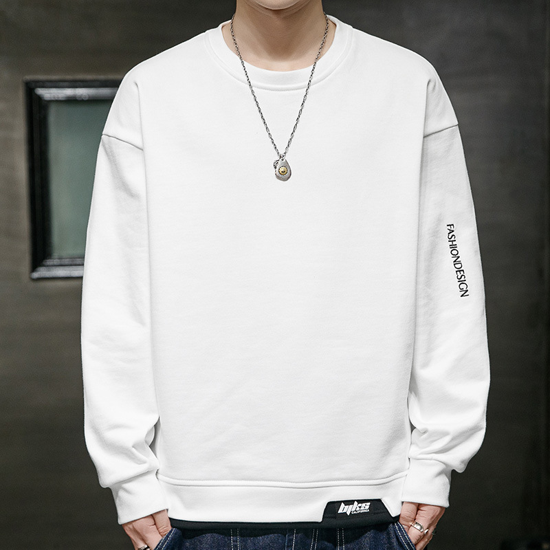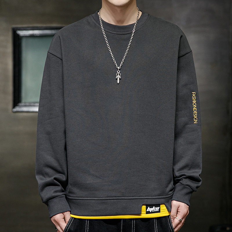 봄 운동복 남자의 느슨한 플러스 사이즈 남자의 유행 지방 플러스 사이즈 캐주얼 긴팔 티셔츠 봄과 가을 탑 옷
