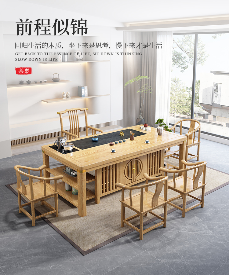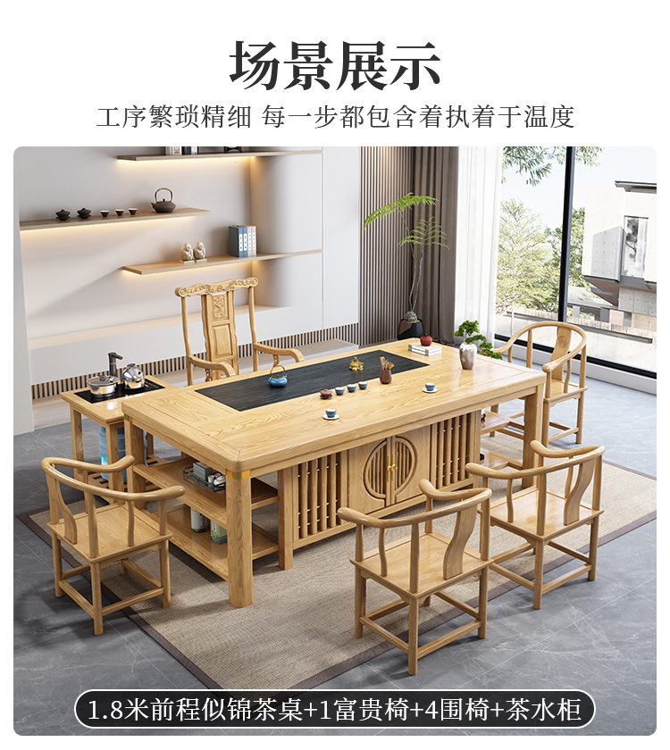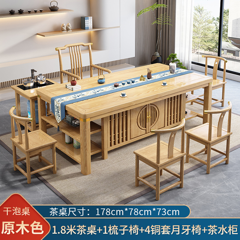 새로운 중국 스타일 티 테이블과 의자 세트 일대일 테이블 5 의자 단단한 나무 홈 거실 티 테이블 로그 컬러 사무실 일대일 커피 테이블스토어 가기