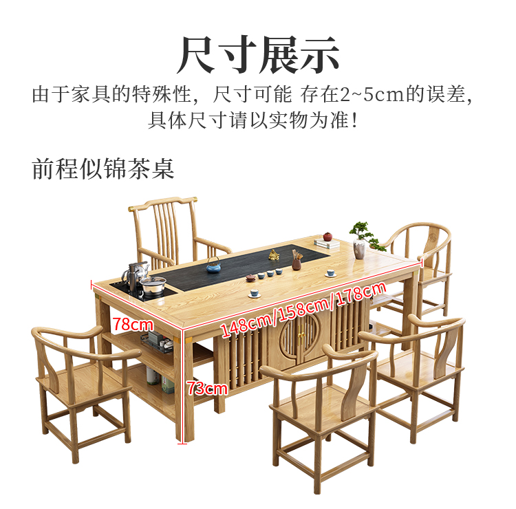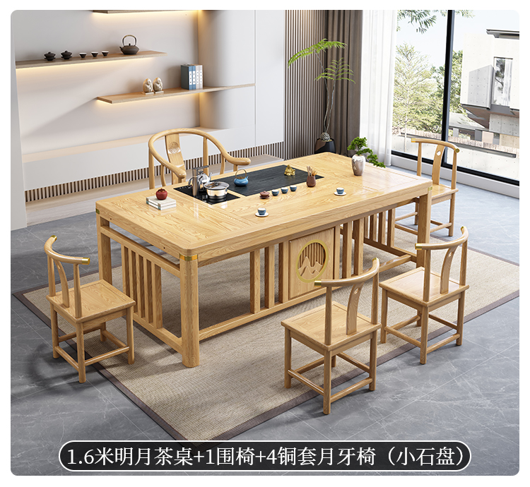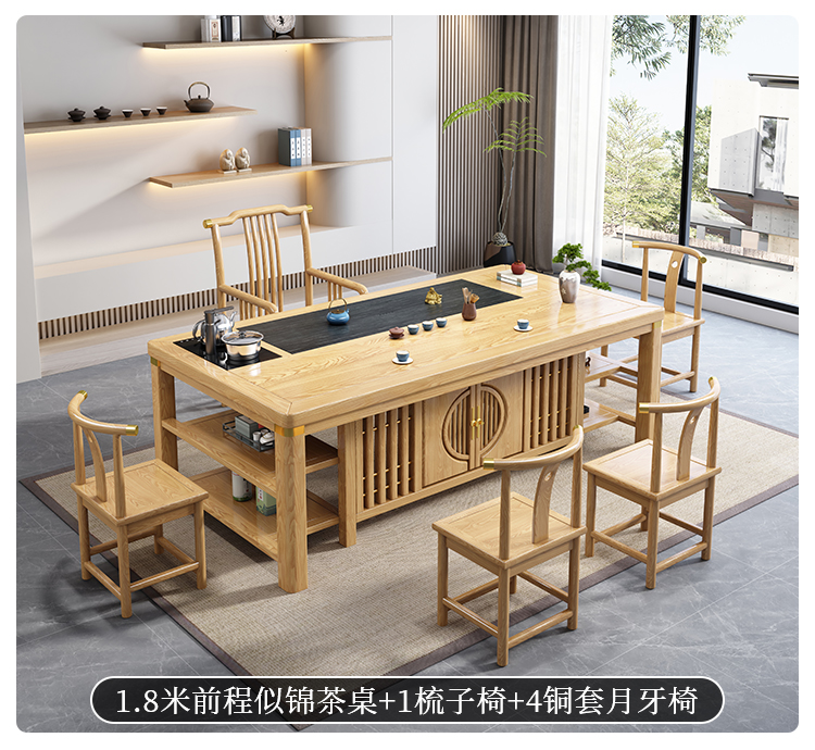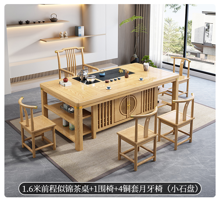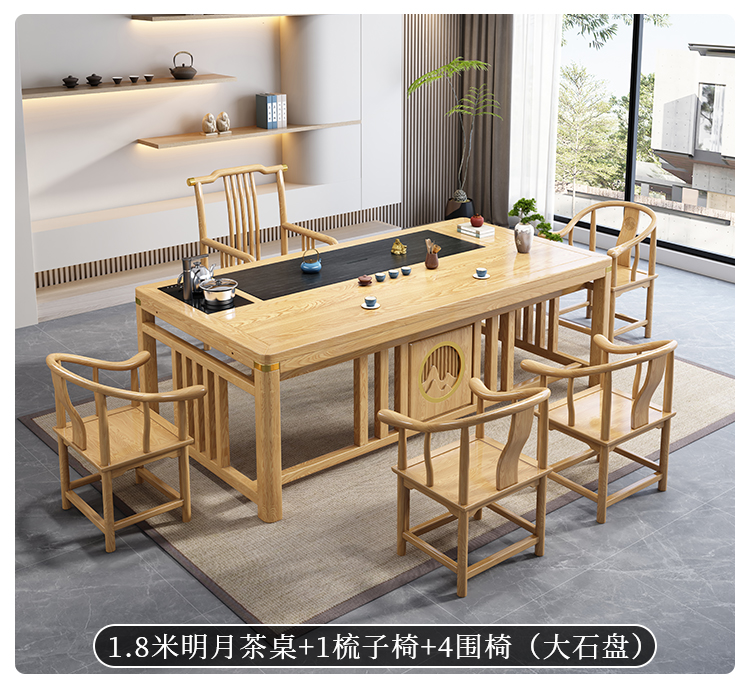 새로운 중국 스타일 티 테이블과 의자 세트 일대일 테이블 5 의자 단단한 나무 홈 거실 티 테이블 로그 컬러 사무실 일대일 커피 테이블