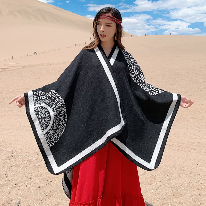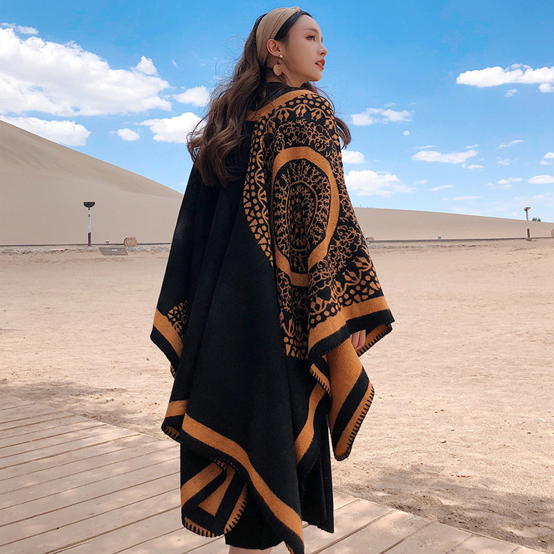 에스닉 스타일 복고풍 패션 트렌드 망토 편안한 통기성 캐주얼 따뜻한 스카프 대형 망토 사막 여행 숄