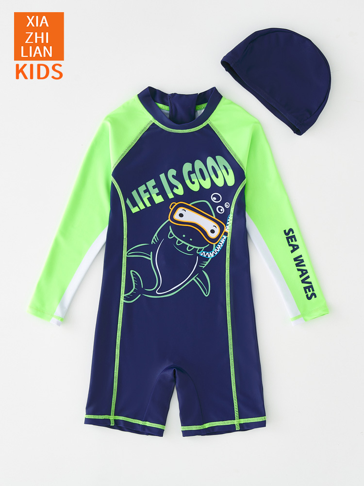 儿童泳衣夏季防晒长袖男童速干连体游泳衣中小童宝宝泳装韩国帅气