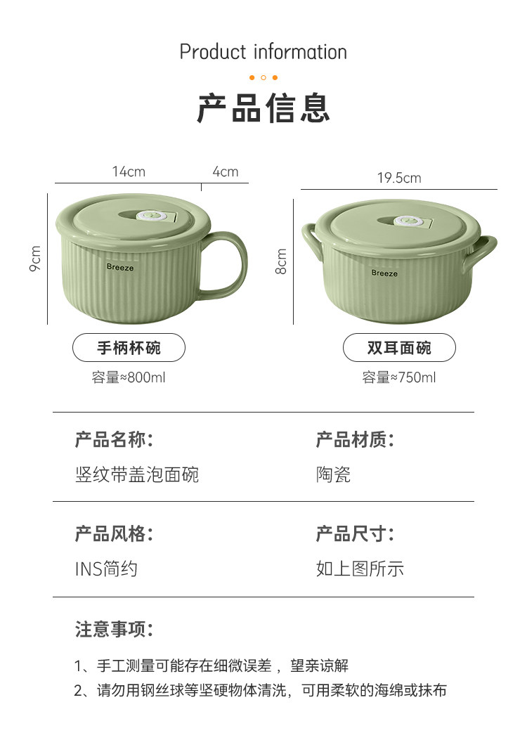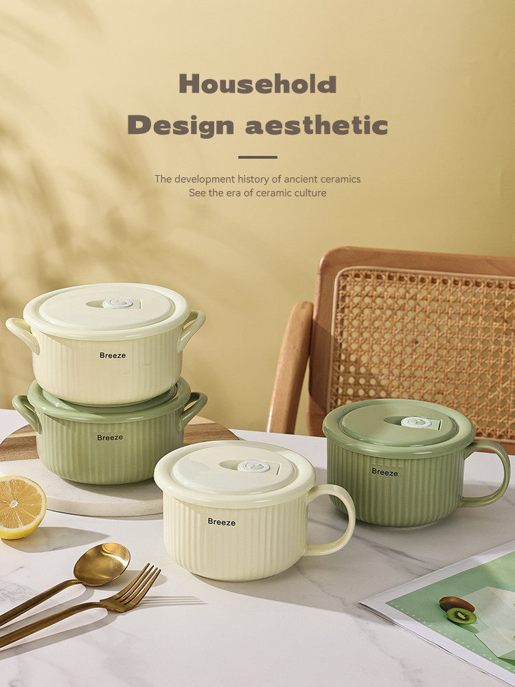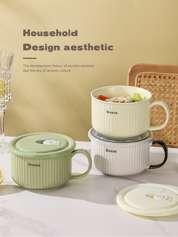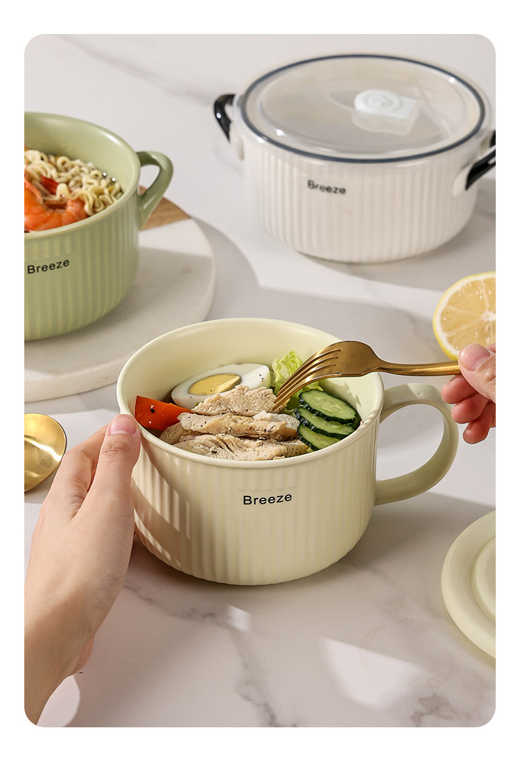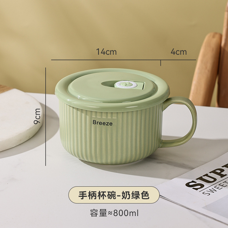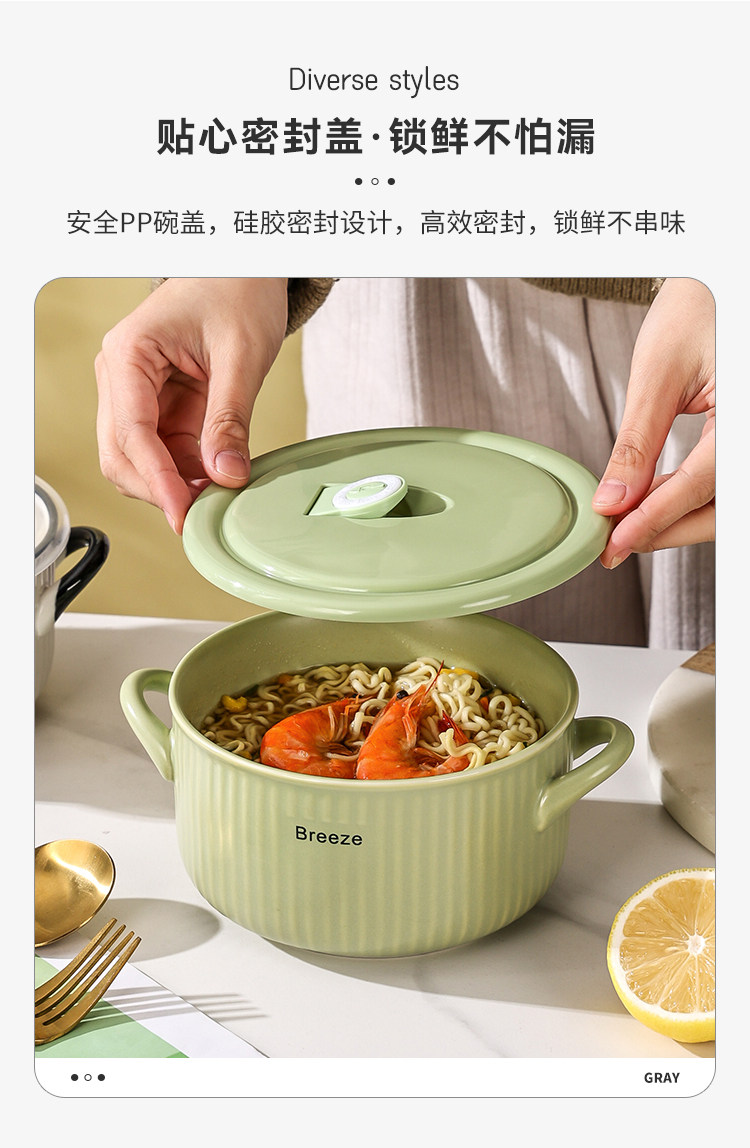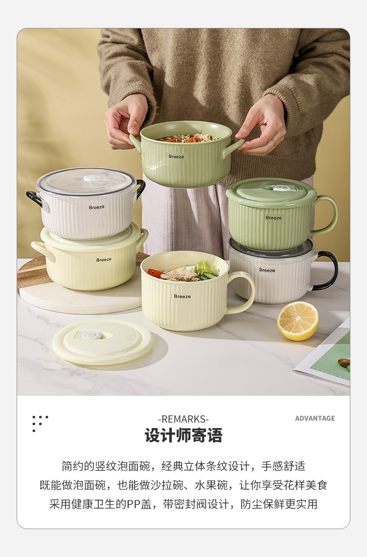 3ZBY 도매 뚜껑과 손잡이가있는 인스턴트 국수 그릇 세라믹 기숙사 학생 인스턴트 국수 컵 전자 레인지 가정용 국수 그릇