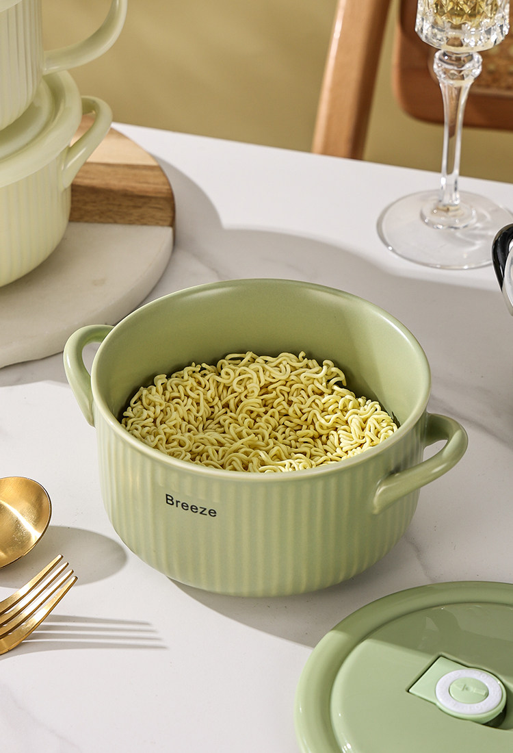 3ZBY 도매 뚜껑과 손잡이가있는 인스턴트 국수 그릇 세라믹 기숙사 학생 인스턴트 국수 컵 전자 레인지 가정용 국수 그릇스토어 가기