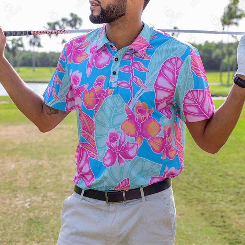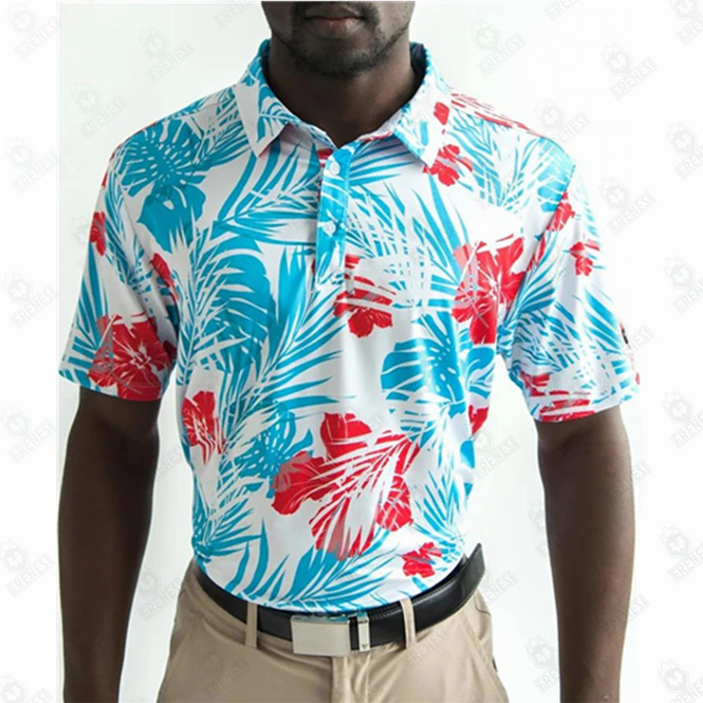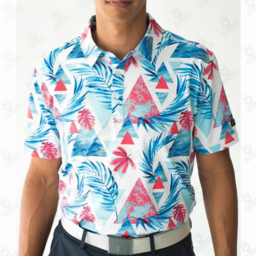 남성용 여름 골프 폴로 셔츠 프린트 스포츠 티셔츠 탁구 배드민턴 퀵 드라이 반팔 상의
