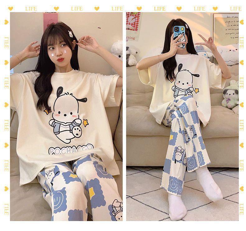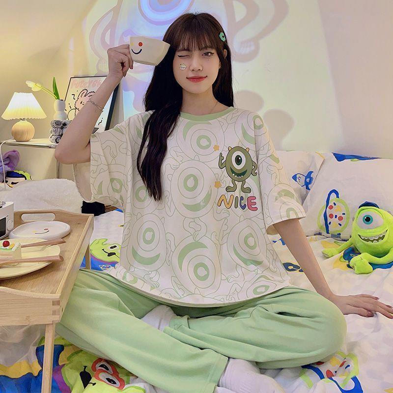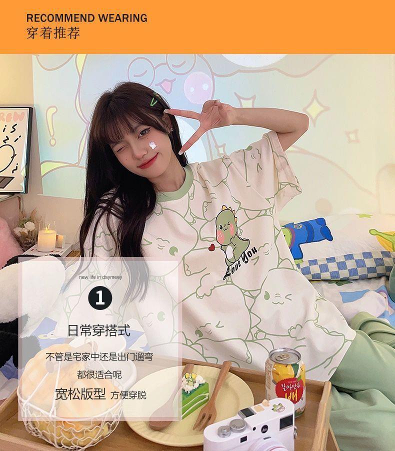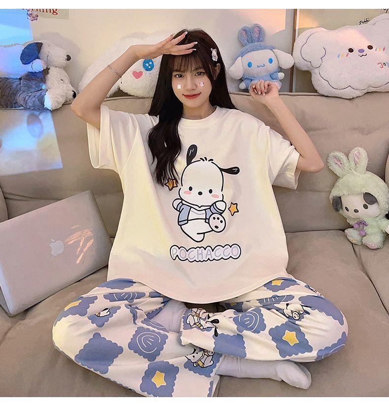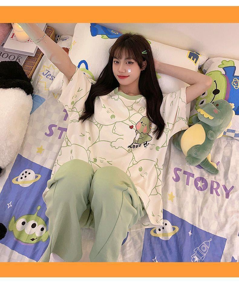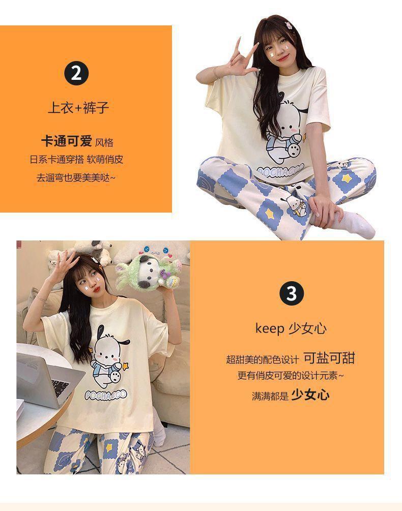 잠옷 여자의 여름 달콤한 귀여운 만화 반팔 바지 세트 여름 여자의 느슨한 가정 옷 봄과 가을스토어 가기