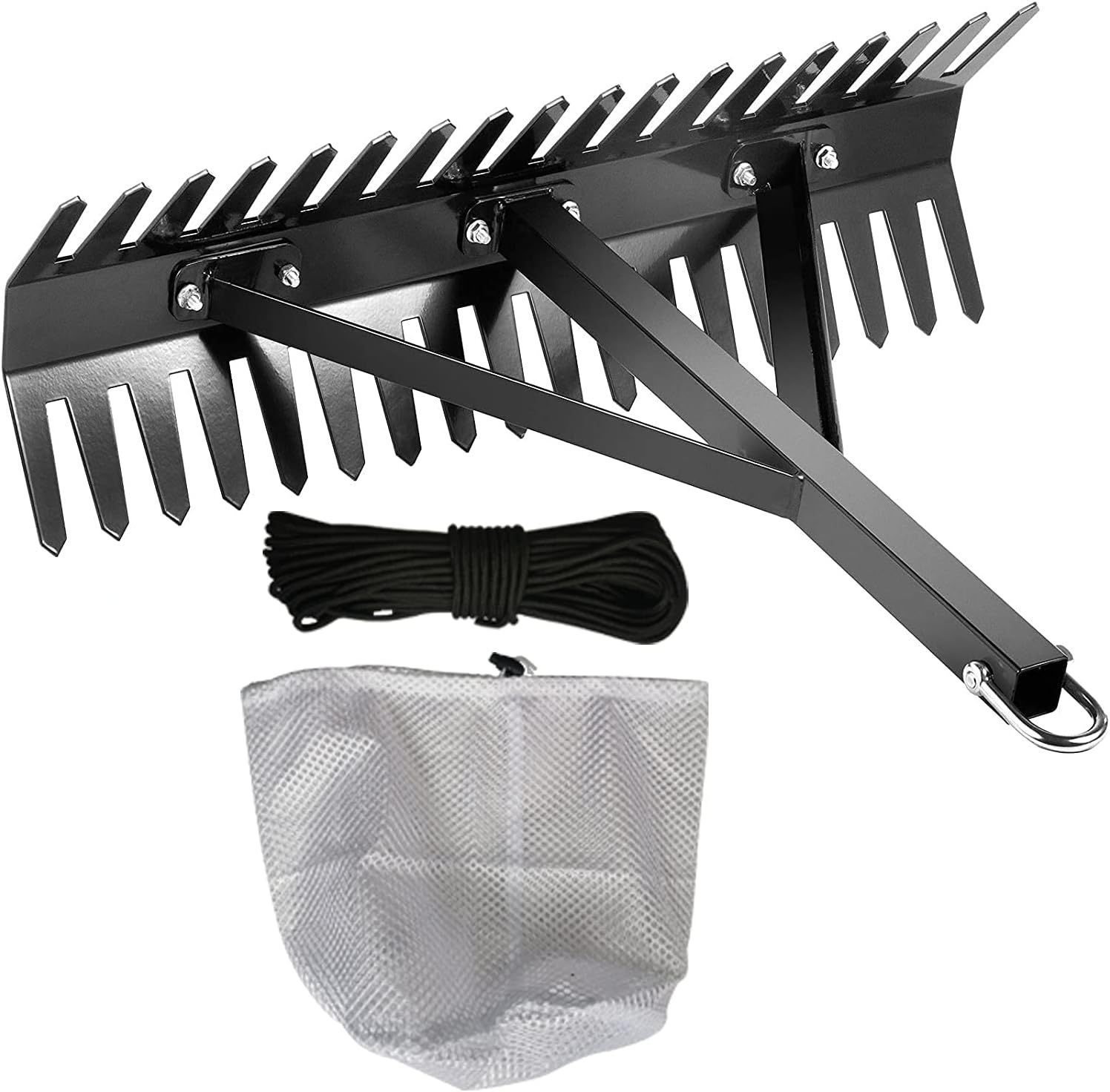 트랙터 갈퀴 17 소나무 갈퀴 잡초 제거 도구 강철 블레이드 16-32 인치 수생 기타 잔디 갈퀴