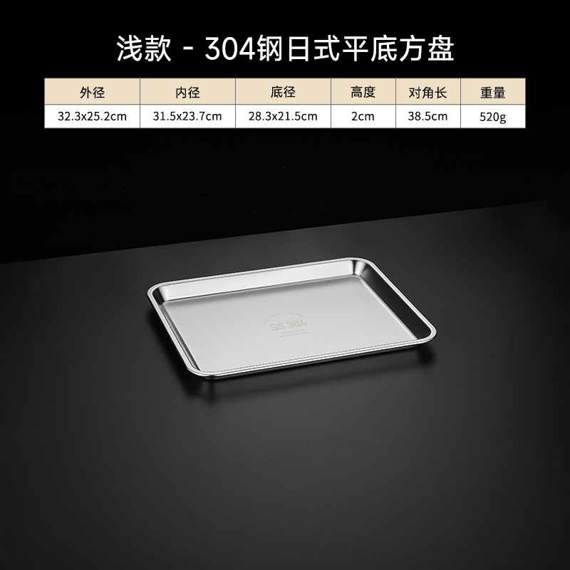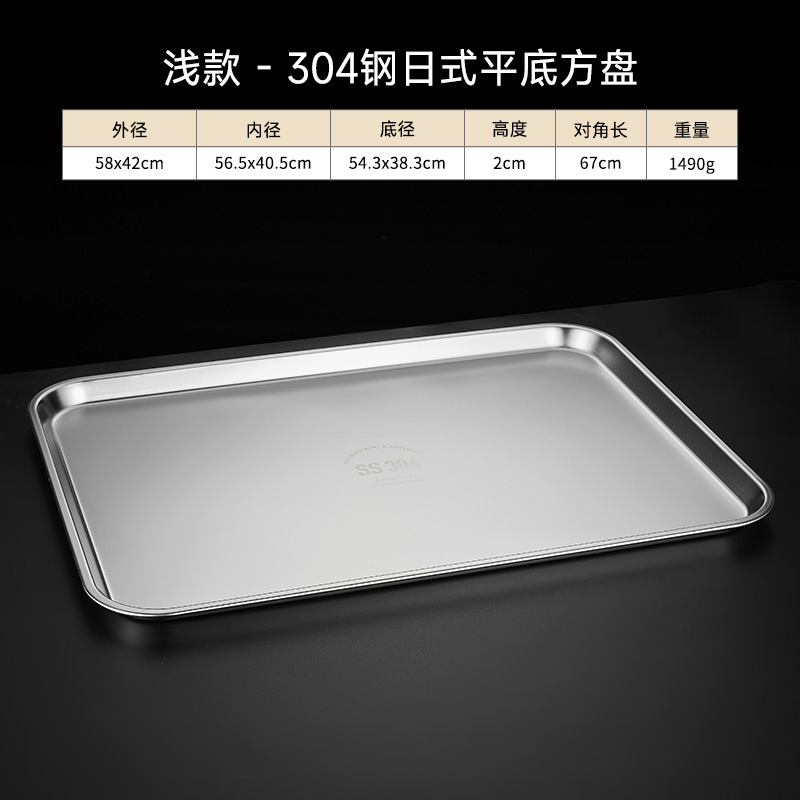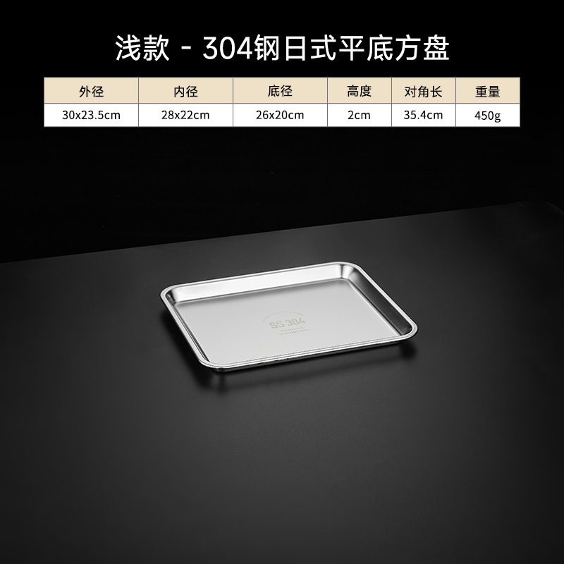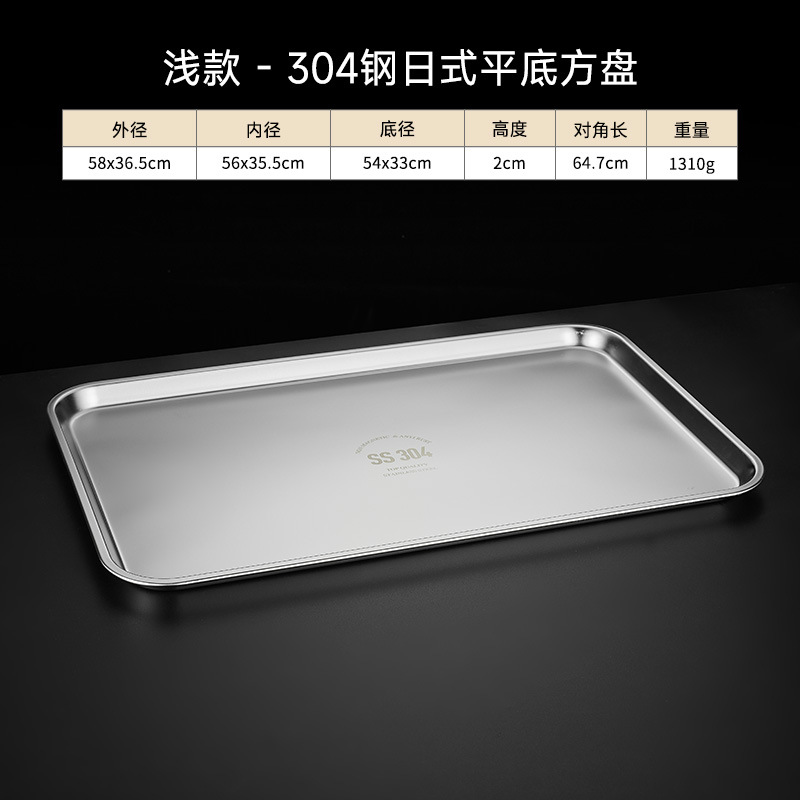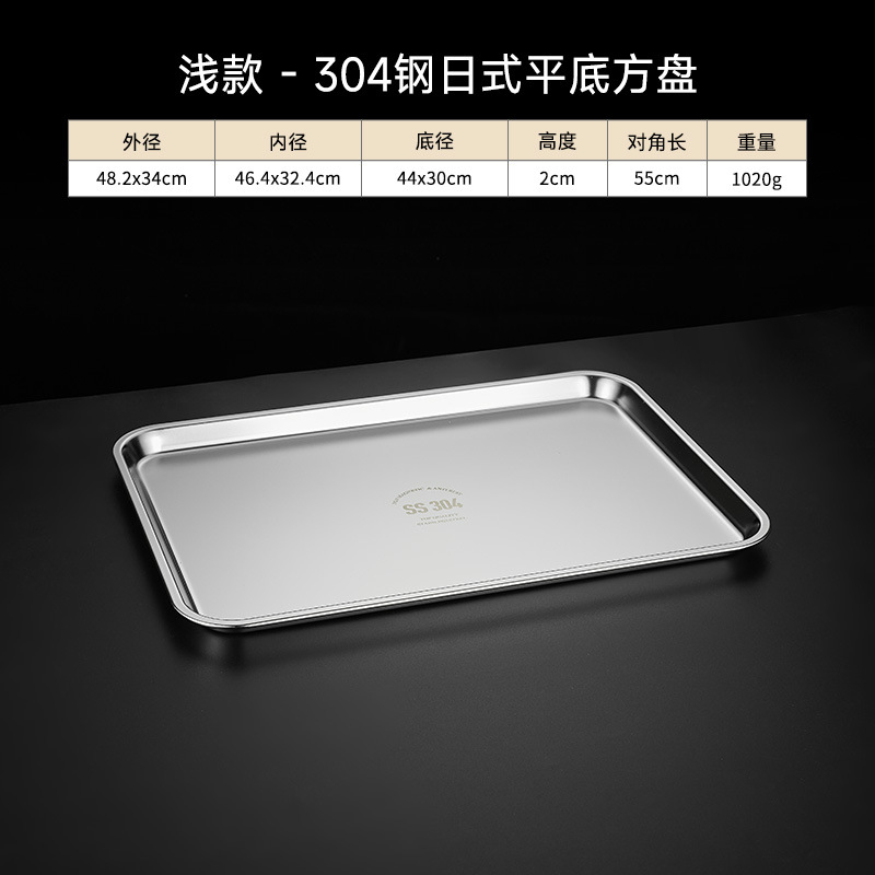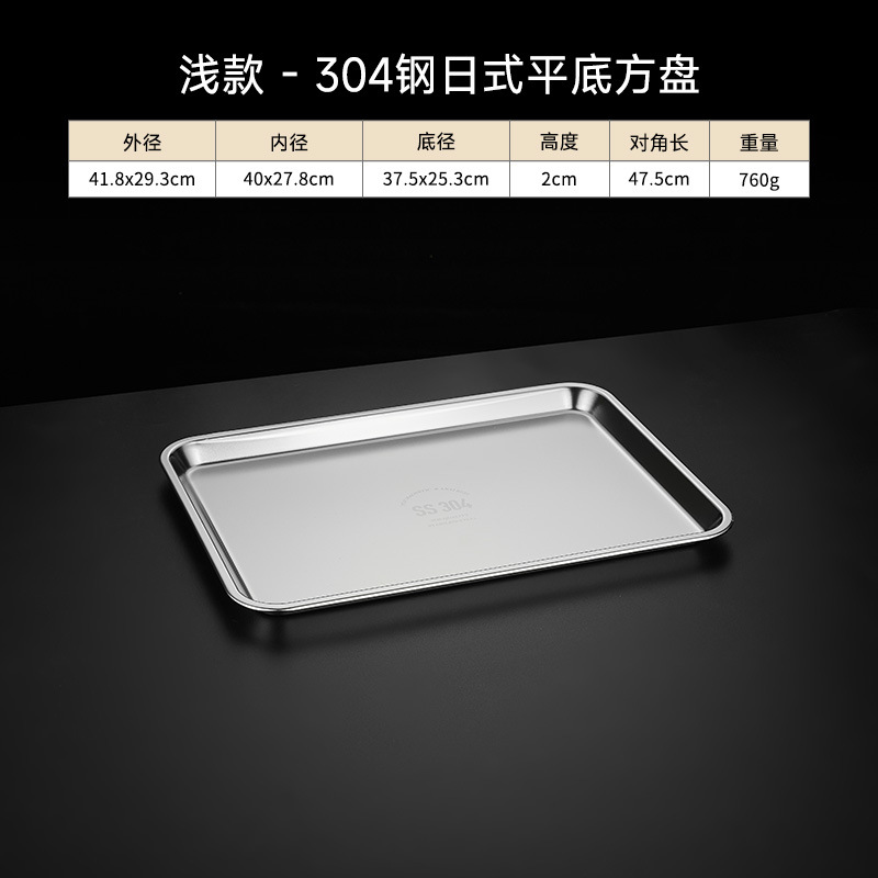 여분의 두꺼운 304 스테인레스 스틸 일본식 사각 플레이트 플랫 바닥 트레이 얕은 직사각형 깊은 타월 플레이트 오븐 쌀 찜 디너 플레이트