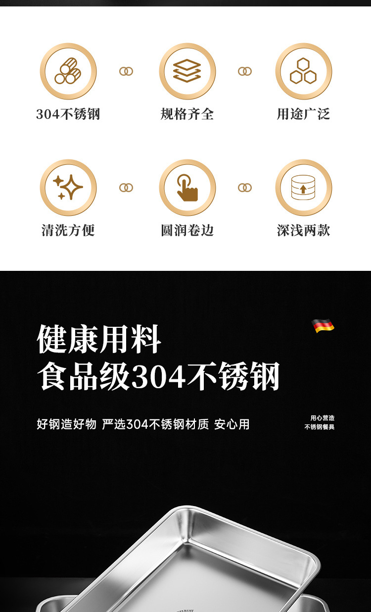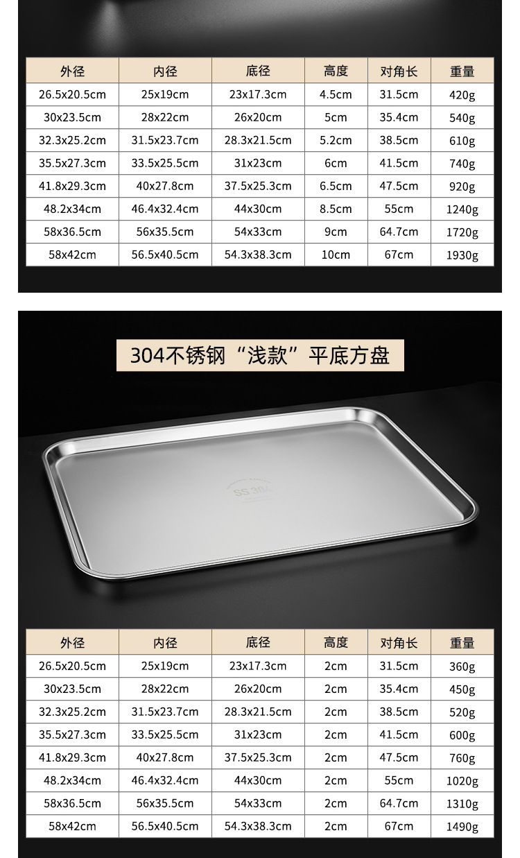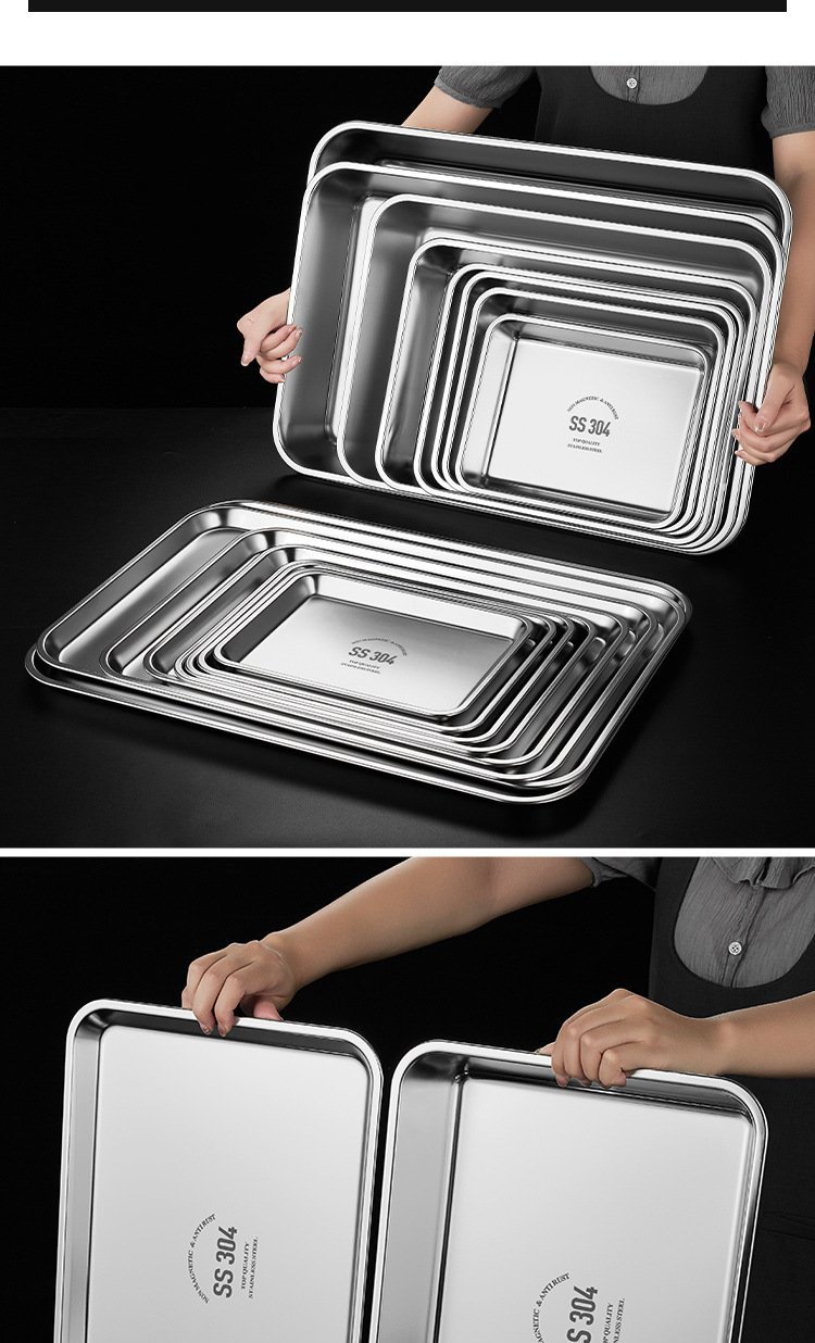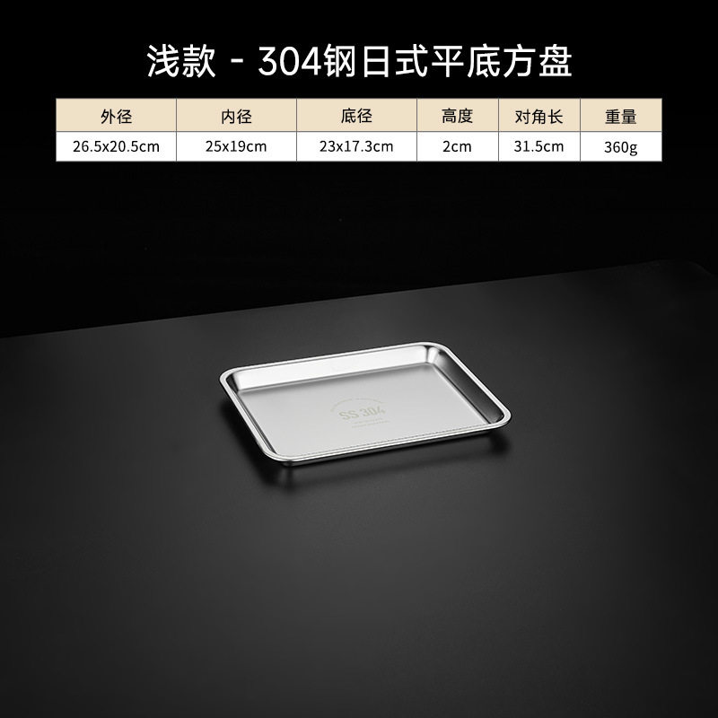 여분의 두꺼운 304 스테인레스 스틸 일본식 사각 플레이트 플랫 바닥 트레이 얕은 직사각형 깊은 타월 플레이트 오븐 쌀 찜 디너 플레이트