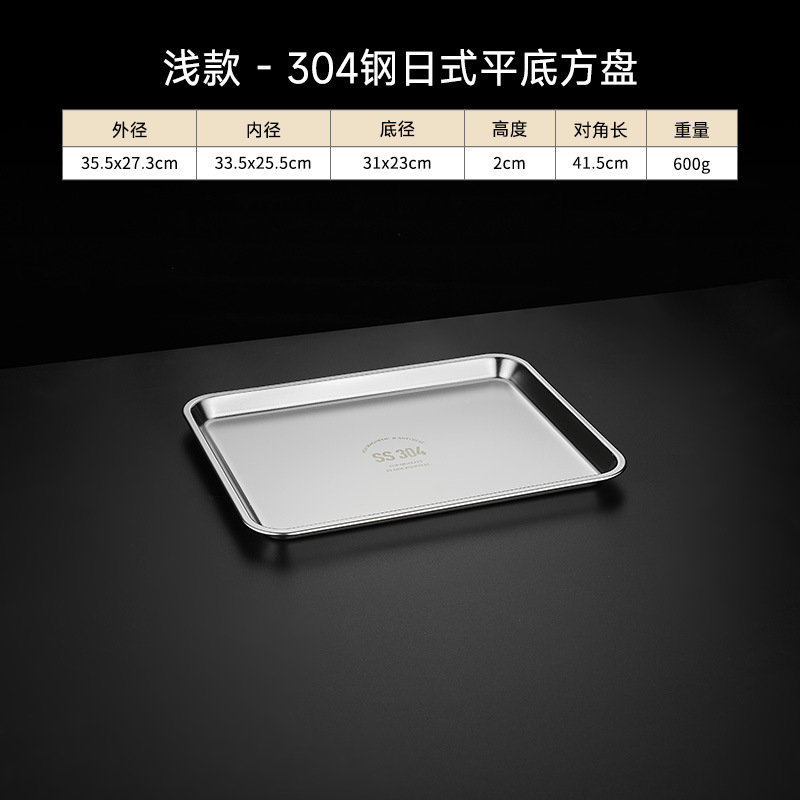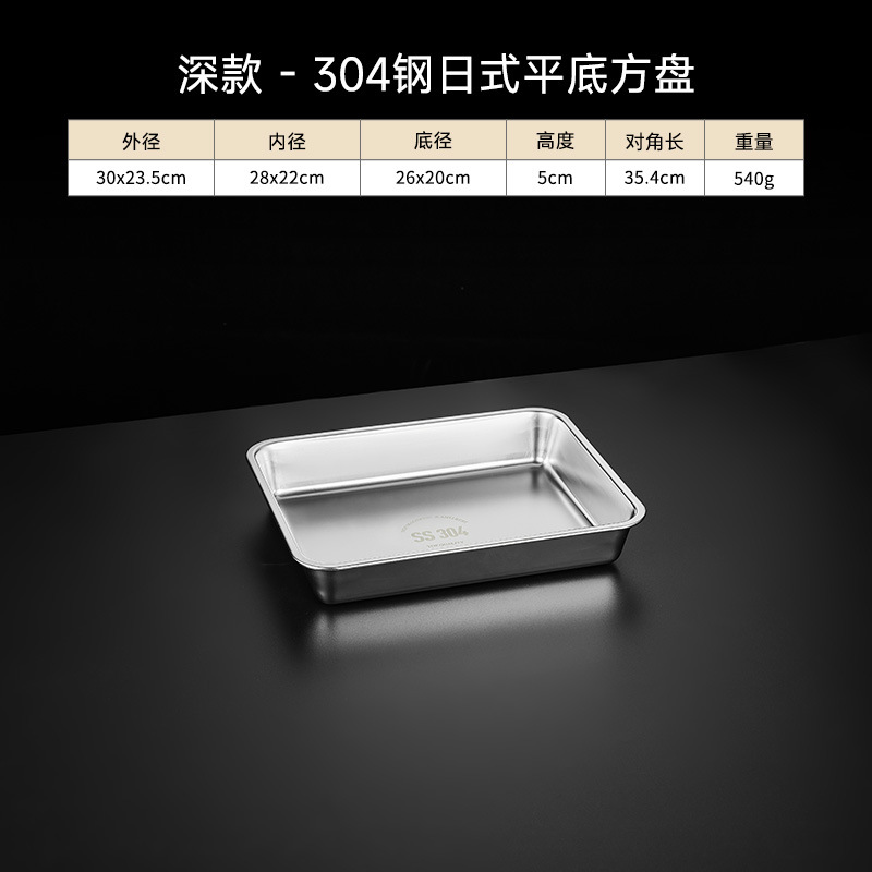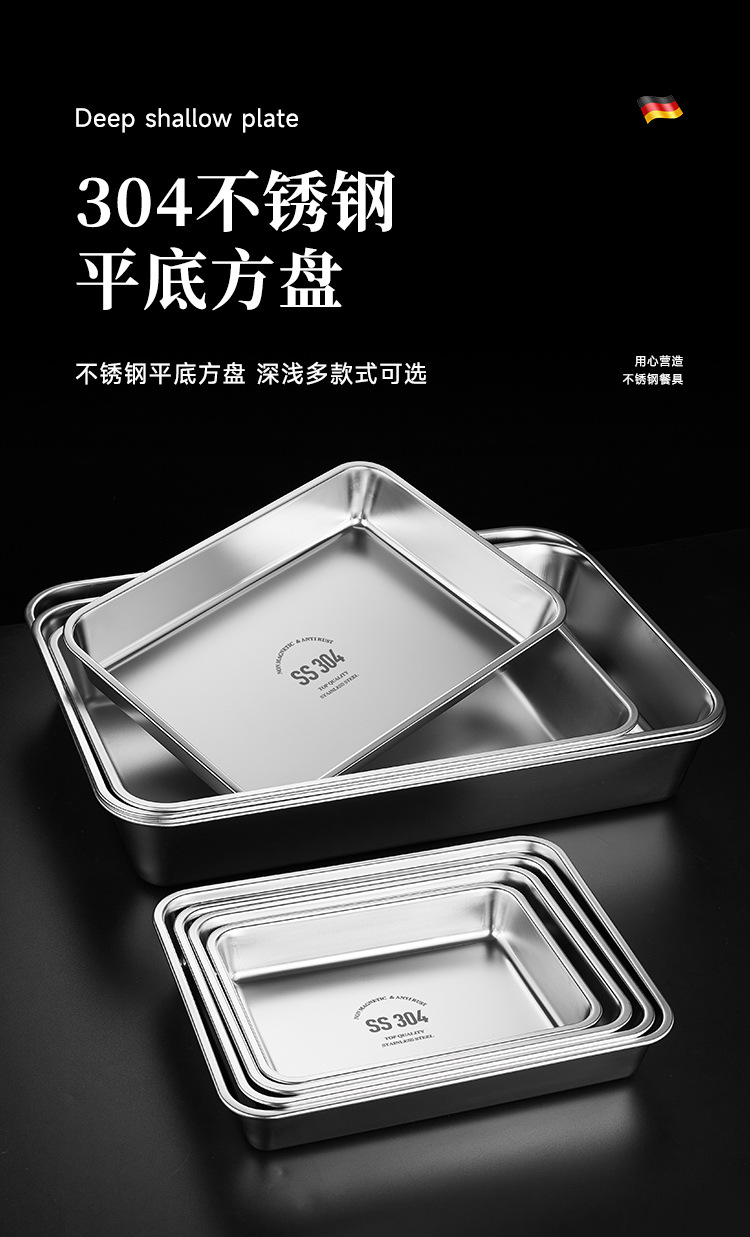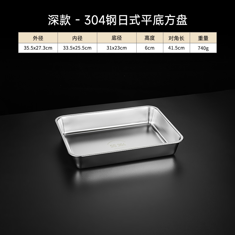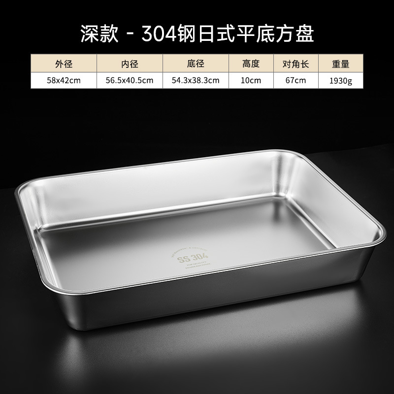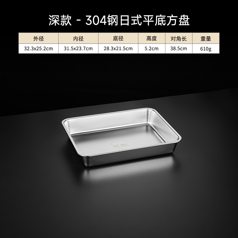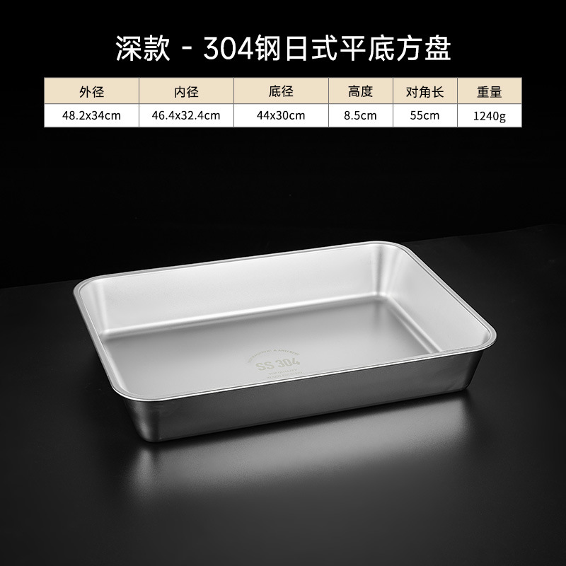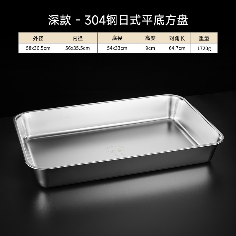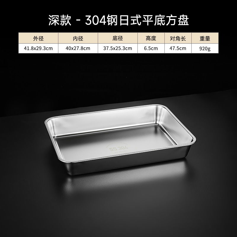 여분의 두꺼운 304 스테인레스 스틸 일본식 사각 플레이트 플랫 바닥 트레이 얕은 직사각형 깊은 타월 플레이트 오븐 쌀 찜 디너 플레이트스토어 가기