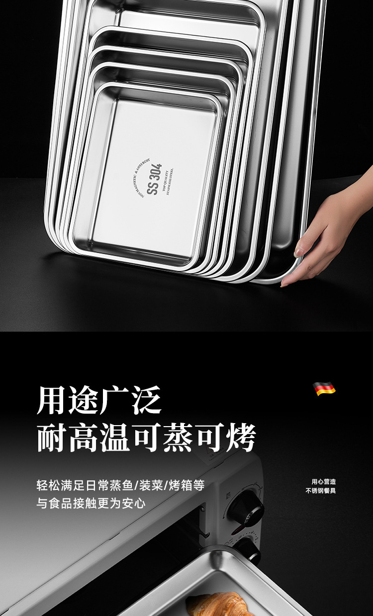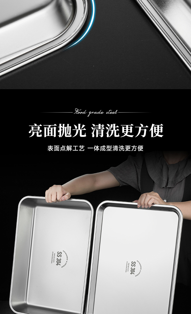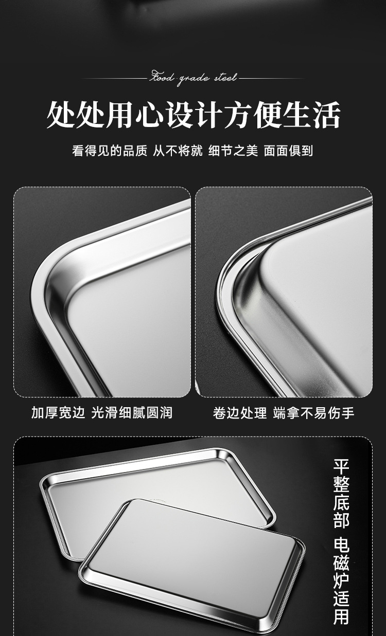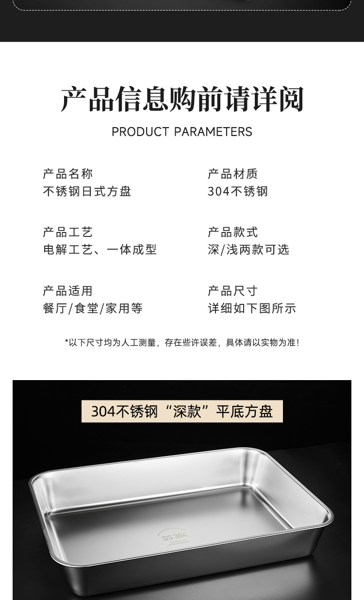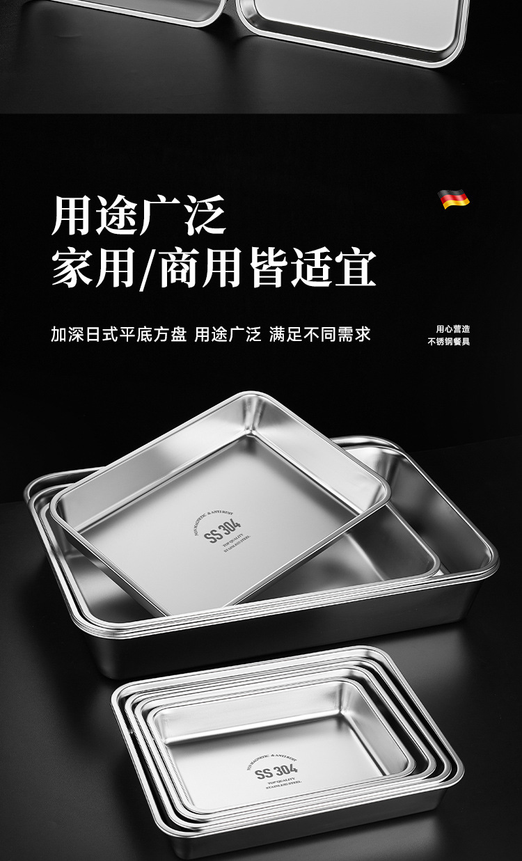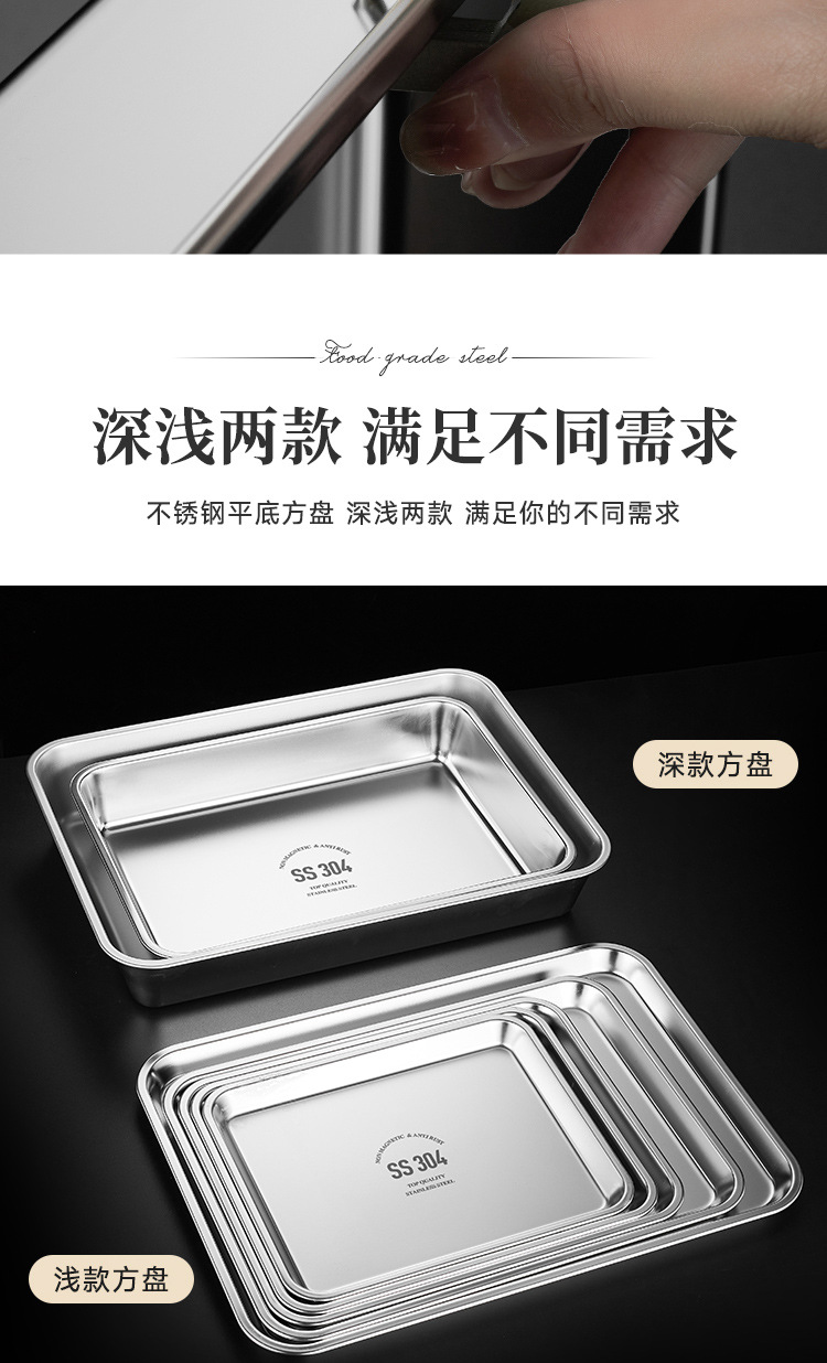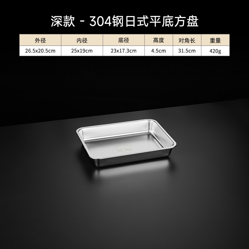여분의 두꺼운 304 스테인레스 스틸 일본식 사각 플레이트 플랫 바닥 트레이 얕은 직사각형 깊은 타월 플레이트 오븐 쌀 찜 디너 플레이트스토어 가기